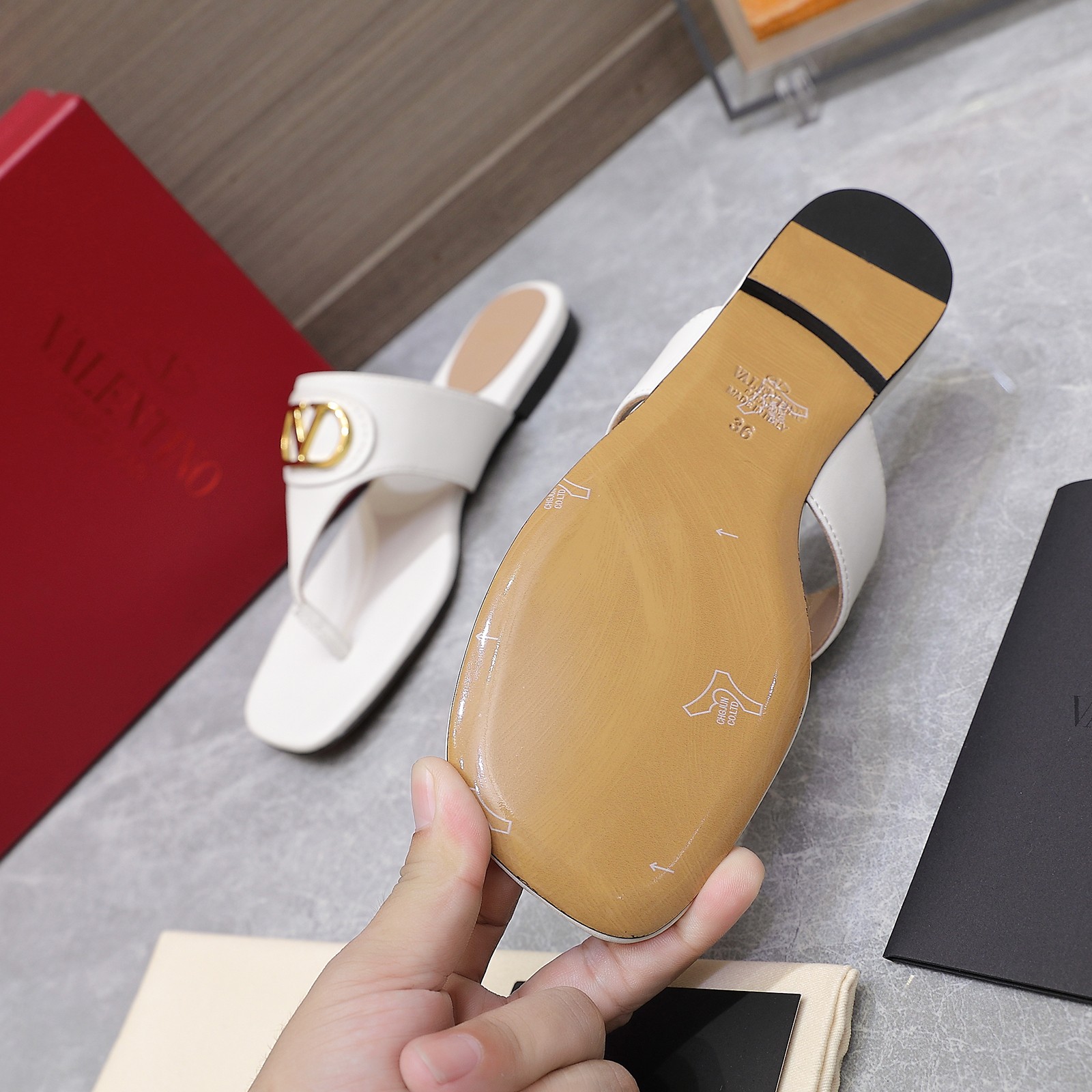 这款鞋子是AAAAA 1:1 质量 (非常棒). 使用了和原版一模一样的材料. 商标部分也保持了和华伦天奴/Valentino一样. 图片拍摄是实物鞋子拍摄, 您所收到的实物保证和我们图片一模一样.