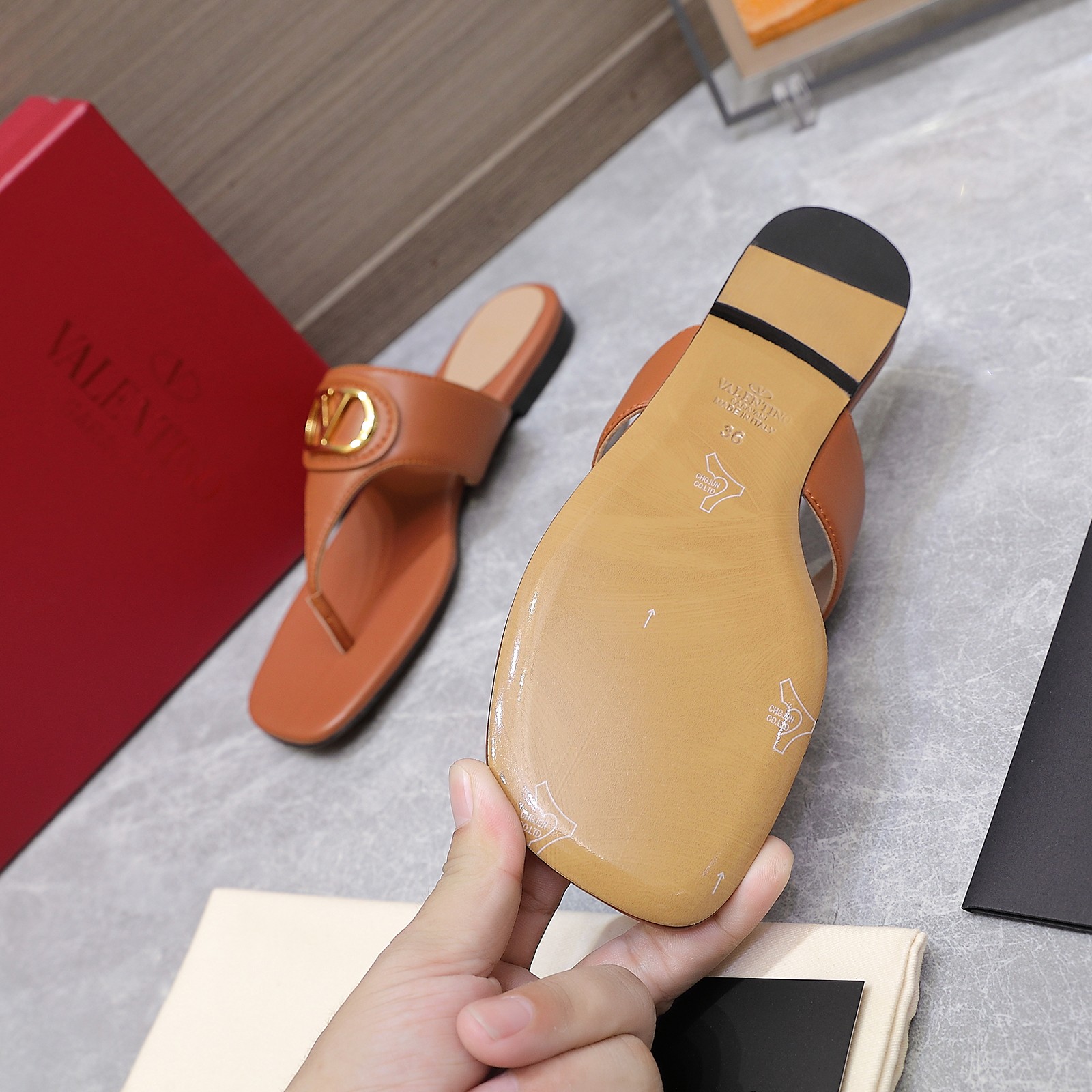 这款鞋子是AAAAA 1:1 质量 (非常棒). 使用了和原版一模一样的材料. 商标部分也保持了和华伦天奴/Valentino一样. 图片拍摄是实物鞋子拍摄, 您所收到的实物保证和我们图片一模一样.