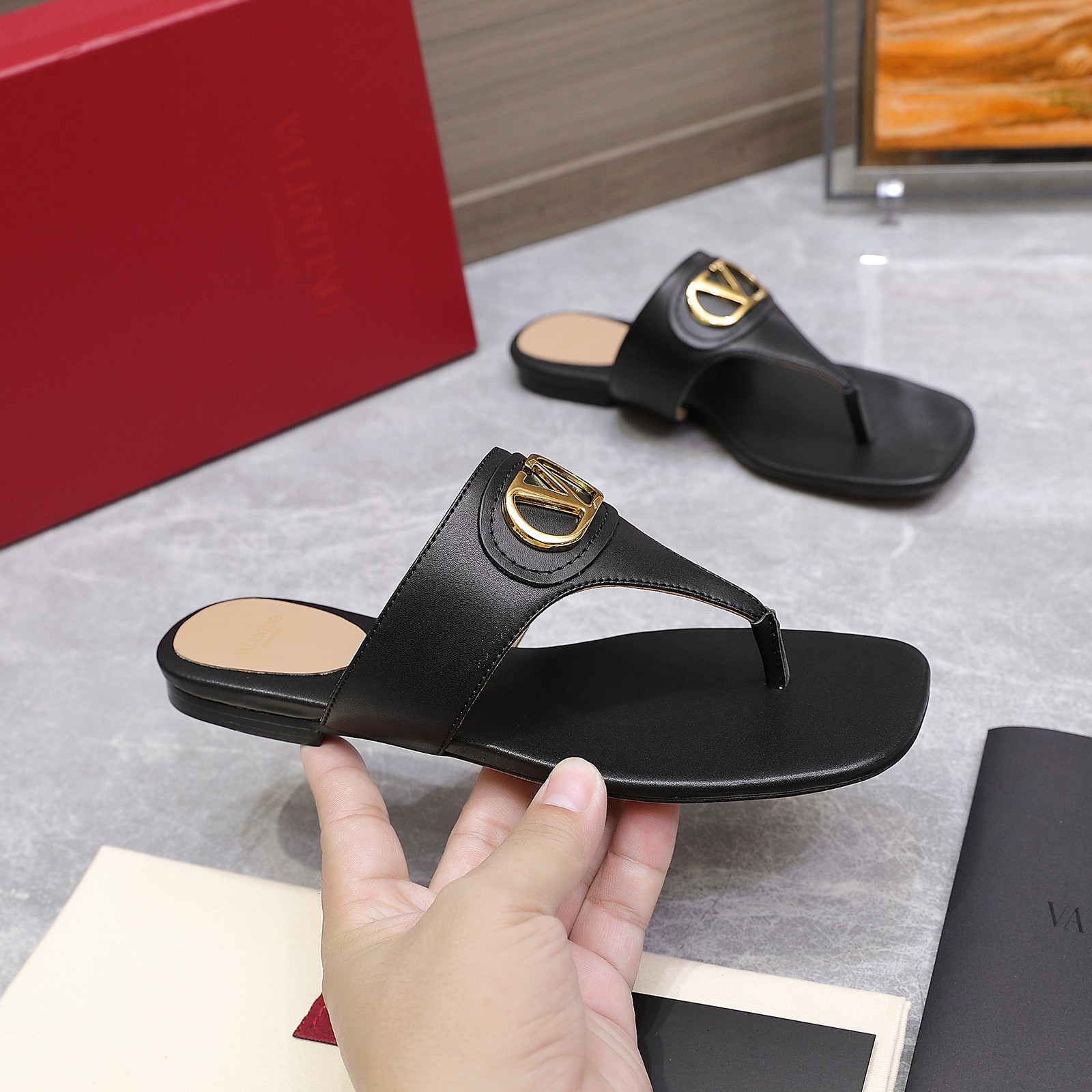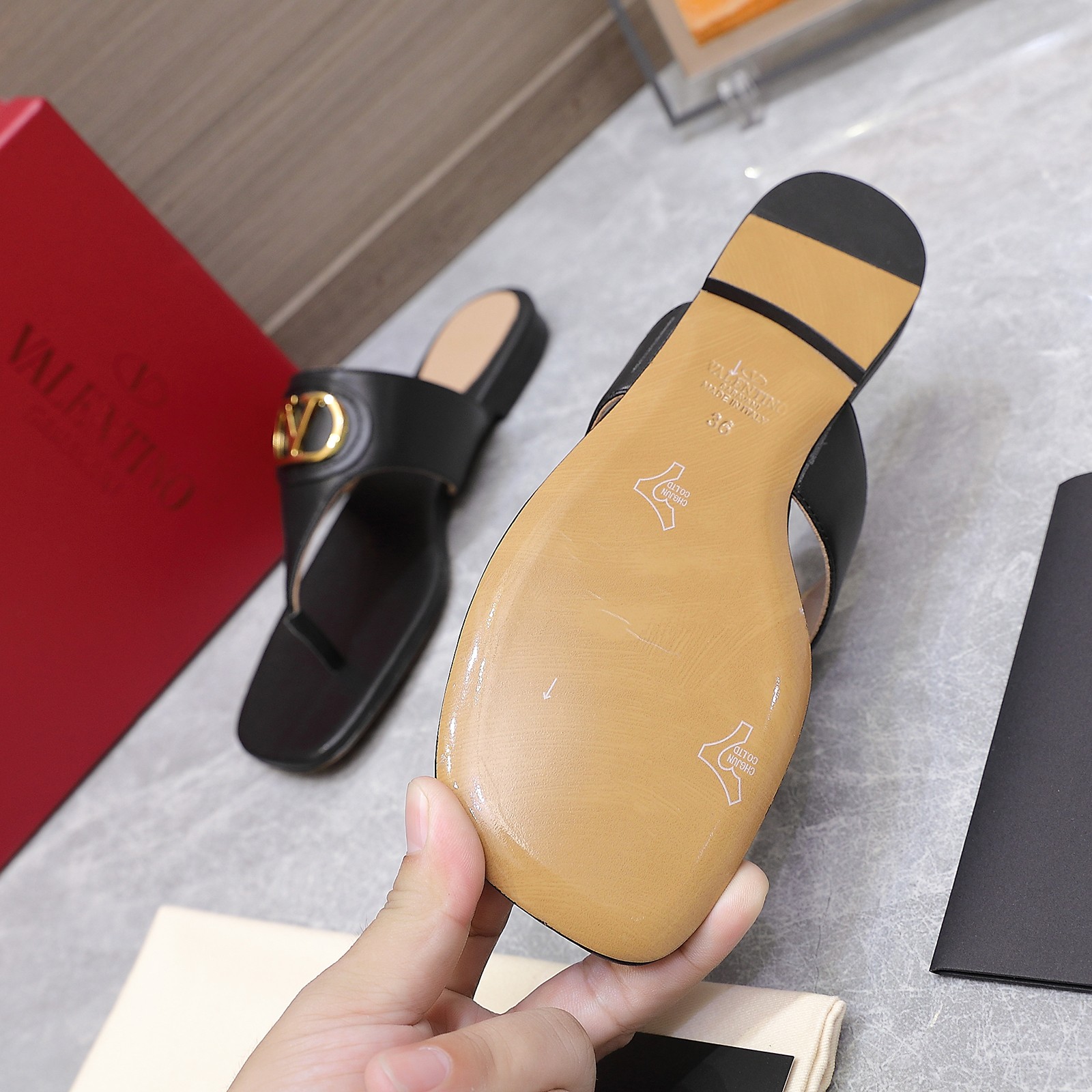 这款鞋子是AAAAA 1:1 质量 (非常棒). 使用了和原版一模一样的材料. 商标部分也保持了和华伦天奴/Valentino一样. 图片拍摄是实物鞋子拍摄, 您所收到的实物保证和我们图片一模一样.