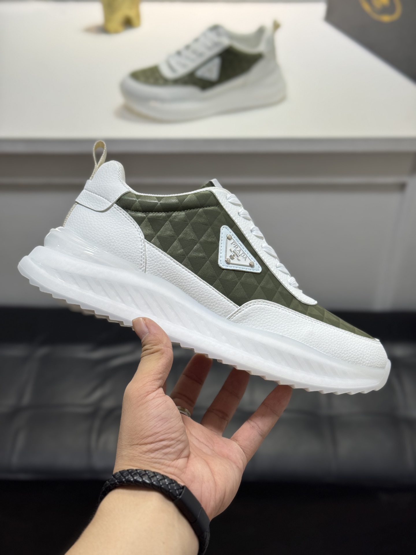 这款鞋子是AAAAA 1:1 质量 (非常棒). 使用了和原版一模一样的材料. 商标部分也保持了和普拉达/Prada一样. 图片拍摄是实物鞋子拍摄, 您所收到的实物保证和我们图片一模一样.