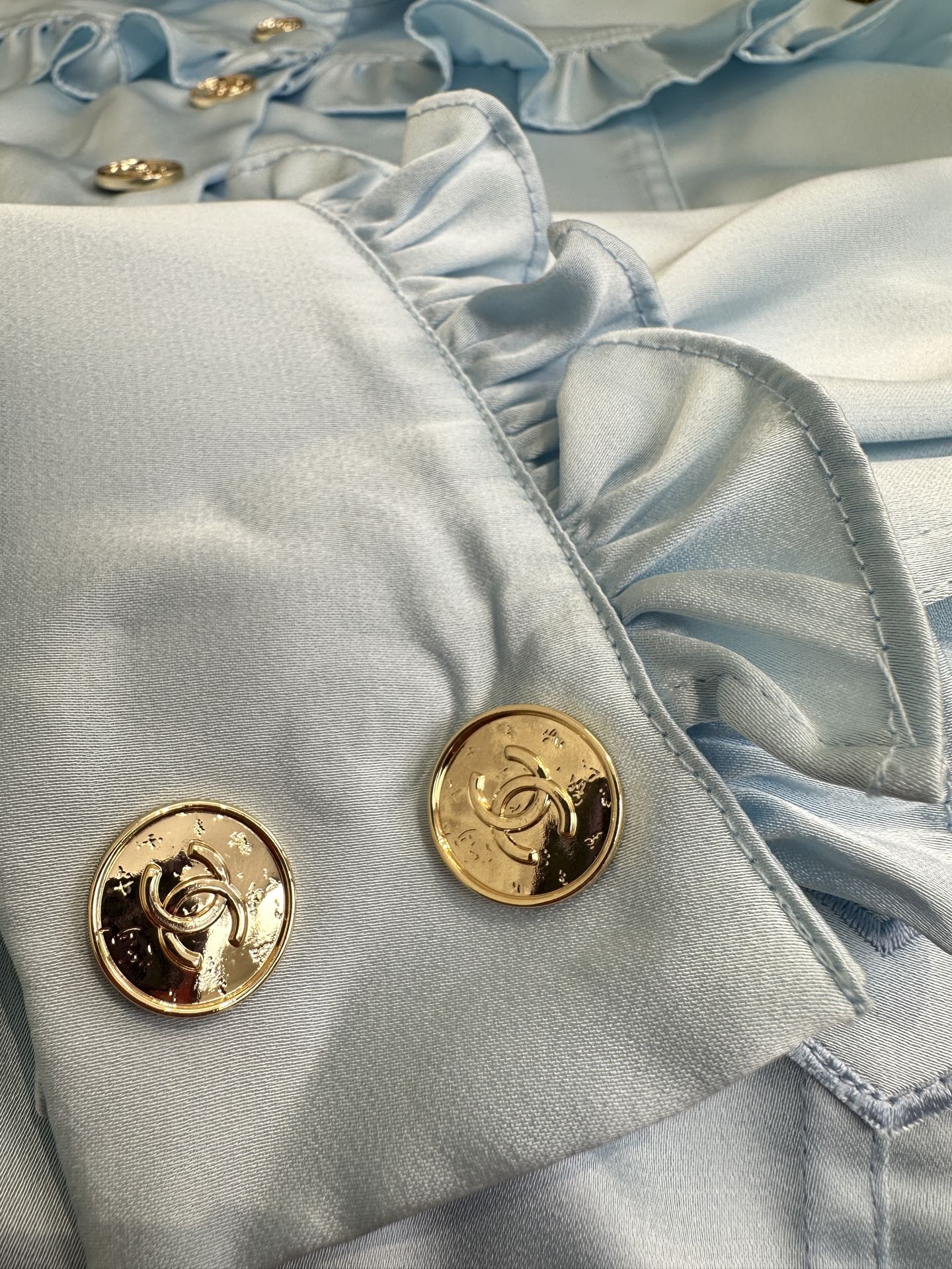 这款衣服是AAAAA 1:1 质量 (非常棒). 使用了和原版一模一样的材料. 商标部分也保持了和香奈儿/Chanel一样. 图片拍摄是实物衣服拍摄, 您所收到的实物保证和我们图片一模一样.