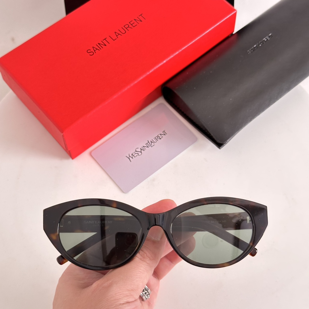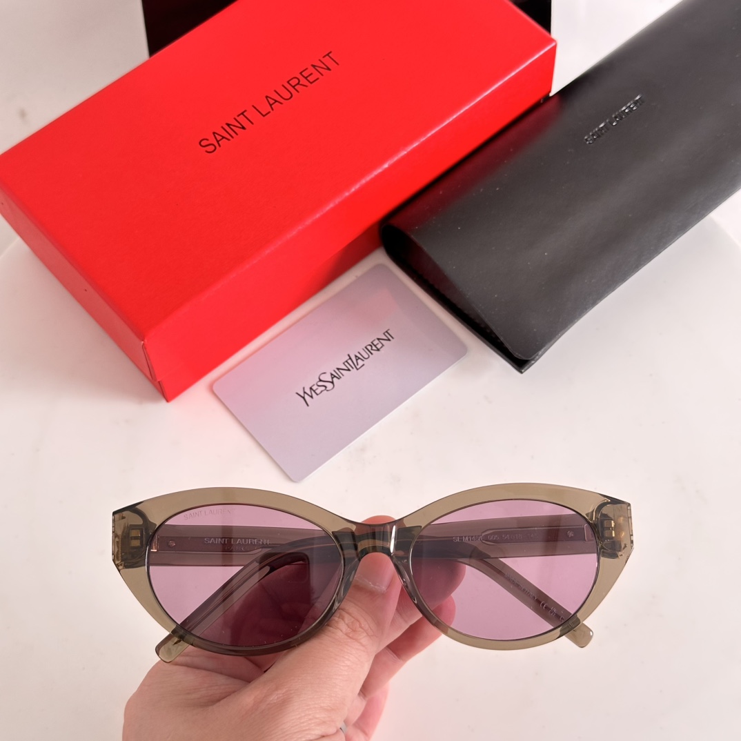 这款太阳眼镜是AAAAA 1:1 质量 (非常棒). 使用了和原版一模一样的材料. 商标部分也保持了和圣罗兰/Saint Laurent一样. 图片拍摄是实物太阳眼镜拍摄, 您所收到的实物保证和我们图片一模一样.