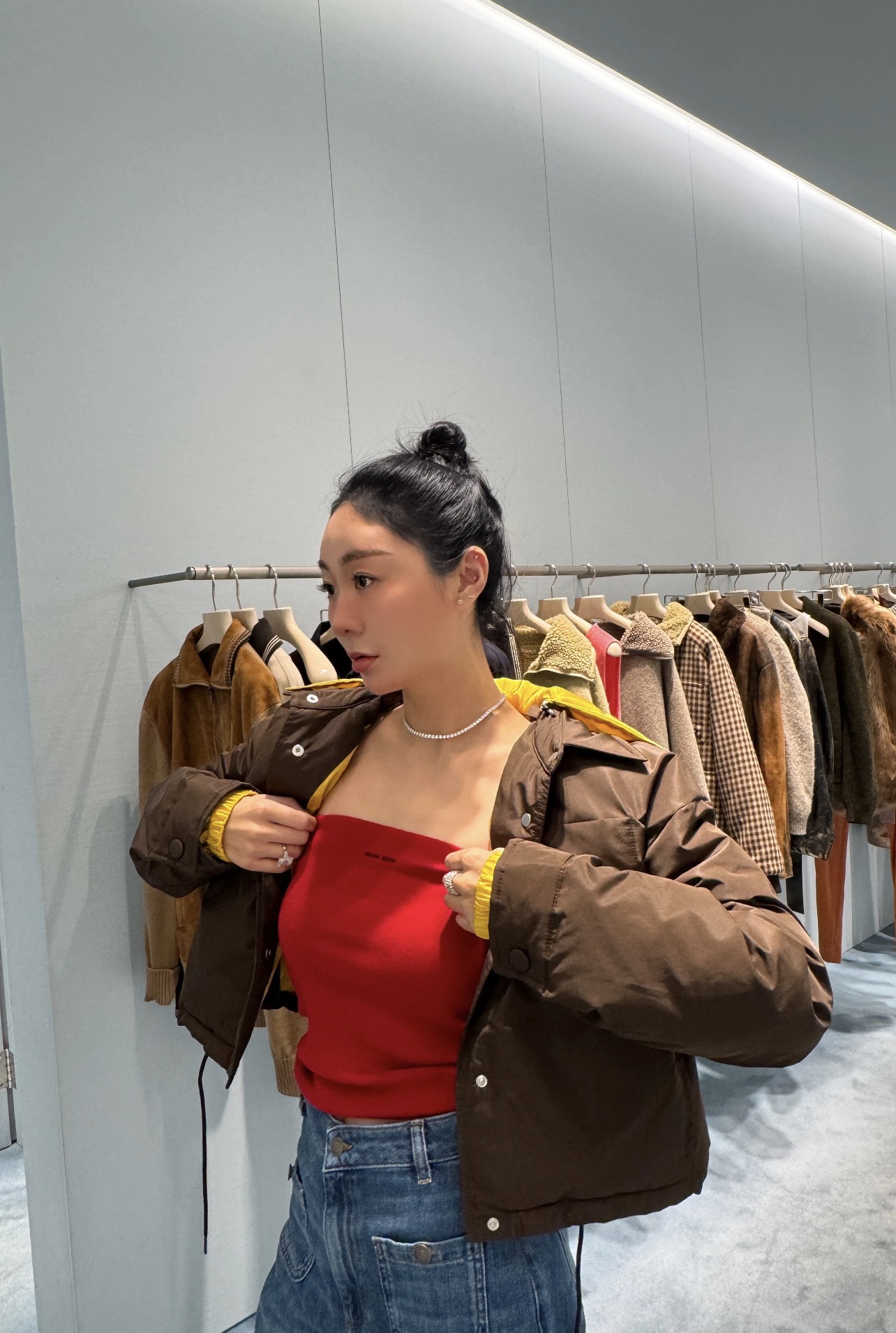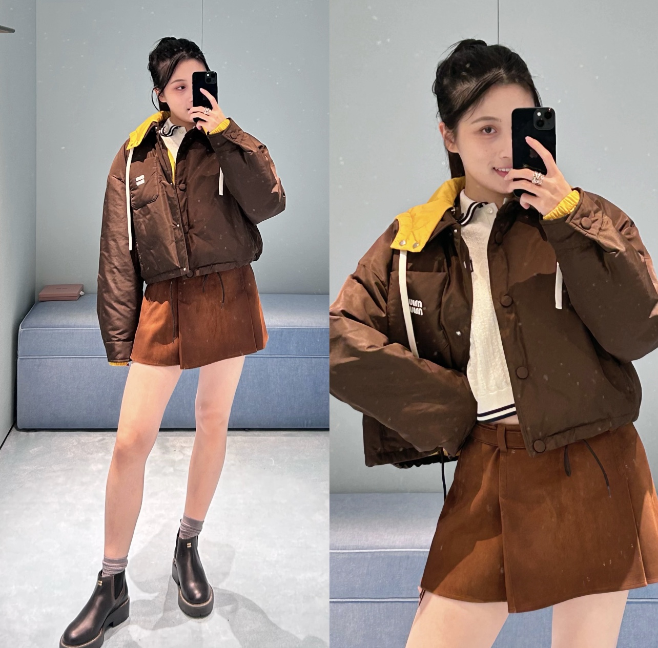 这款衣服是AAAAA 1:1 质量 (非常棒). 使用了和原版一模一样的材料. 商标部分也保持了和缪缪/Miu Miu一样. 图片拍摄是实物衣服拍摄, 您所收到的实物保证和我们图片一模一样.