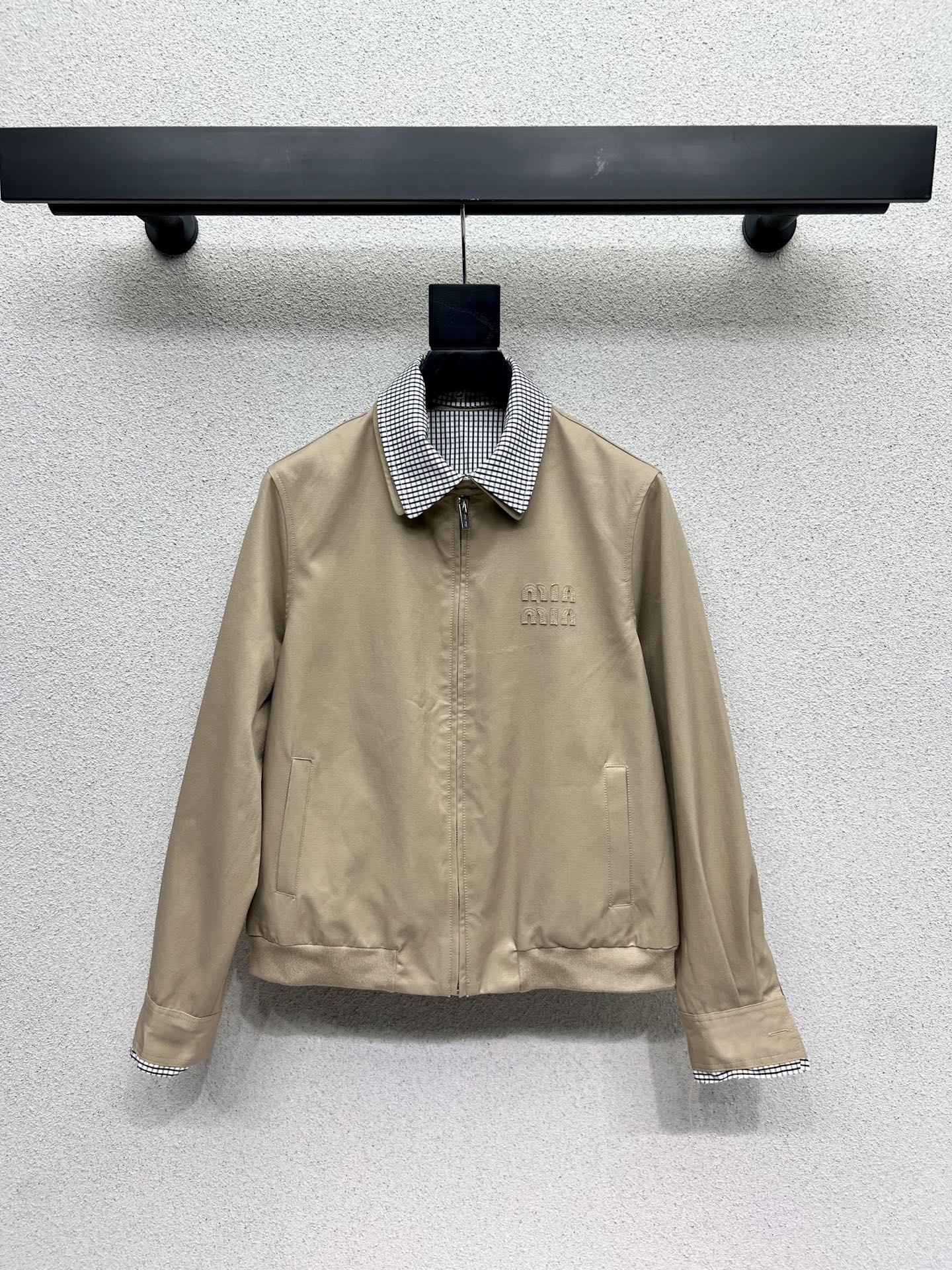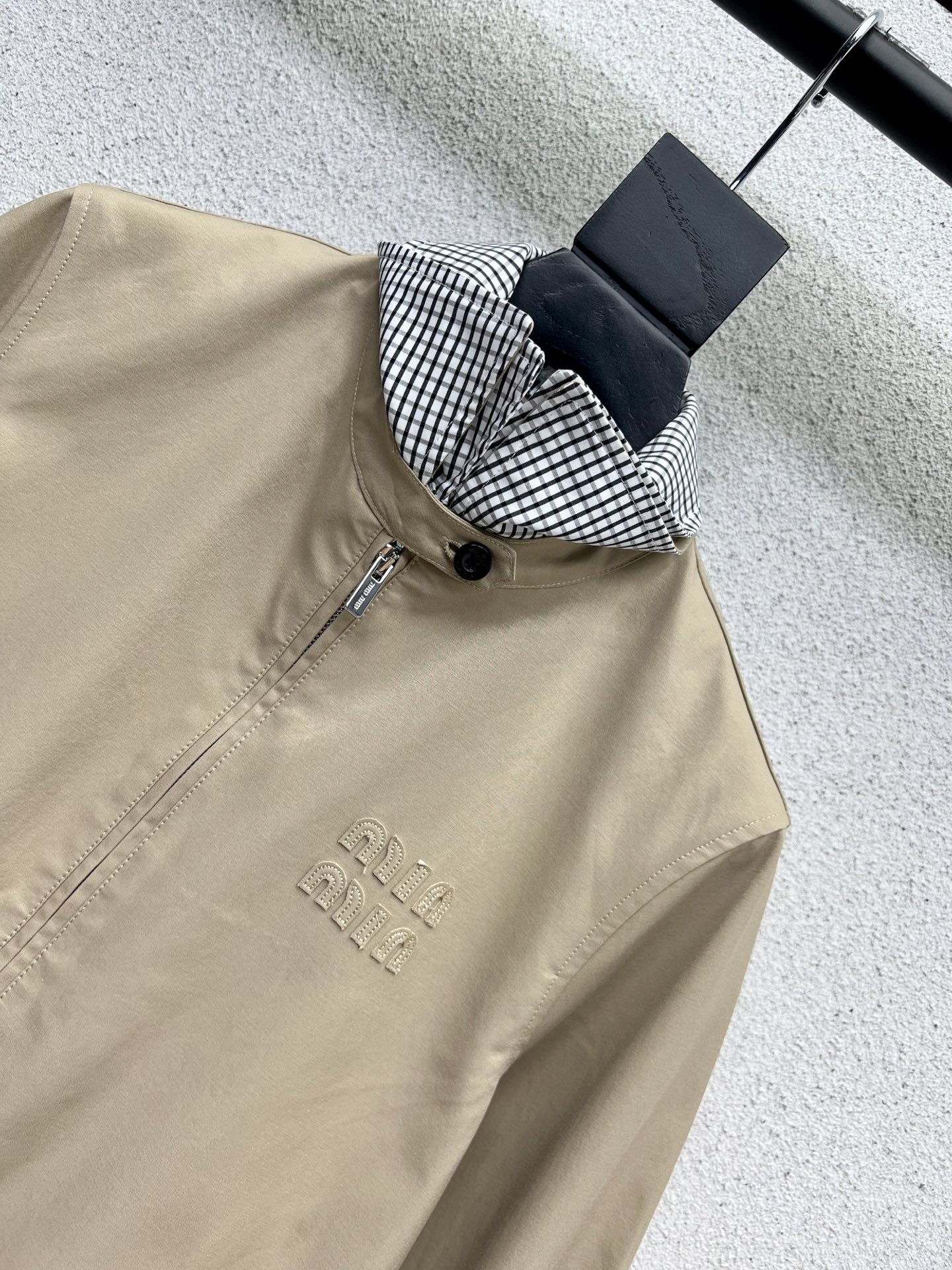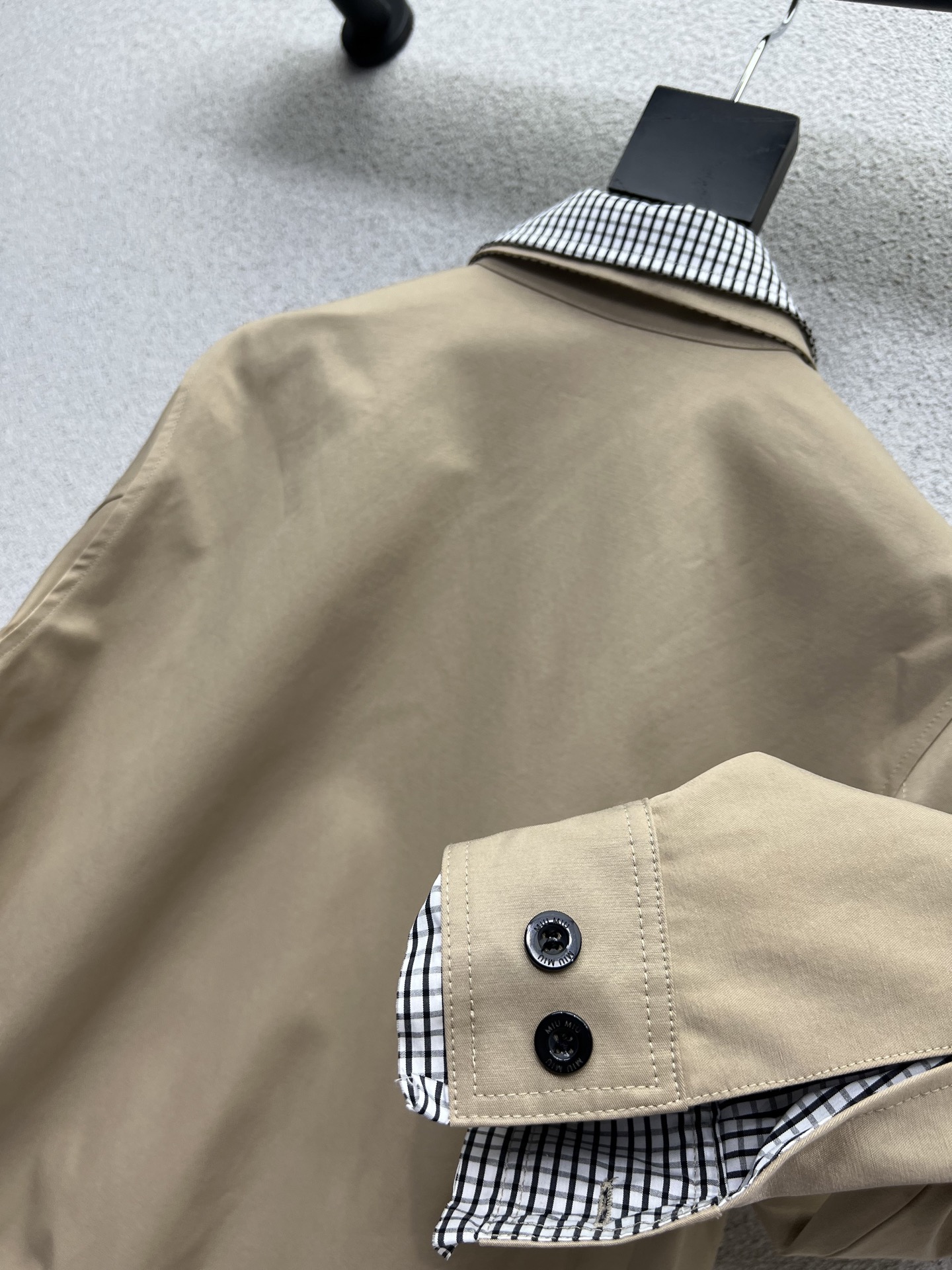 这款衣服是AAAAA 1:1 质量 (非常棒). 使用了和原版一模一样的材料. 商标部分也保持了和缪缪/Miu Miu一样. 图片拍摄是实物衣服拍摄, 您所收到的实物保证和我们图片一模一样.
