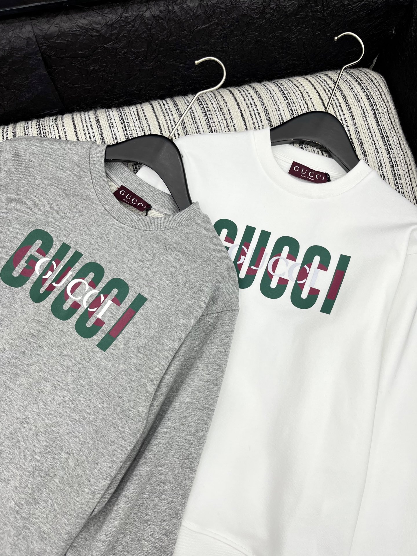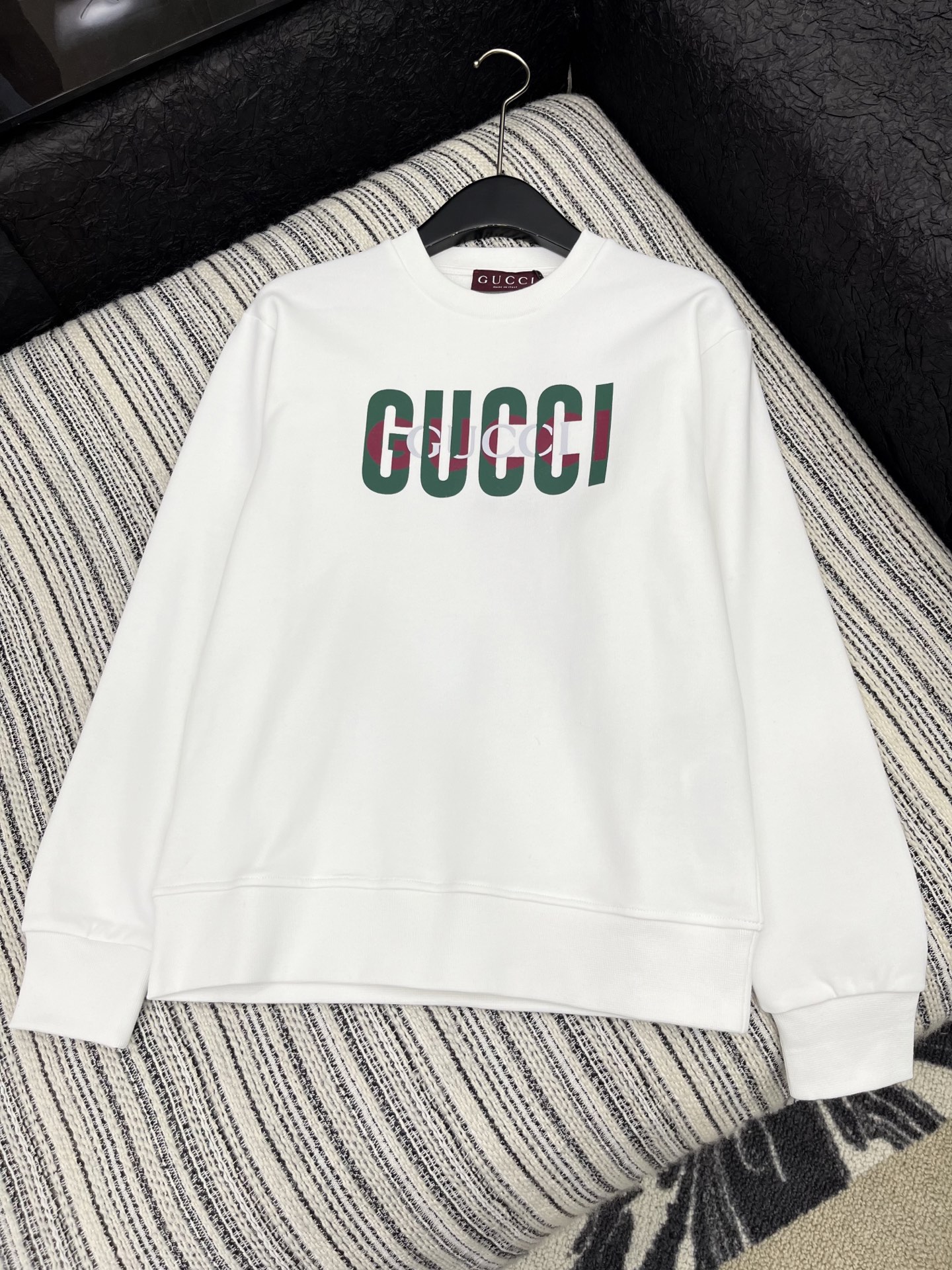 这款衣服是AAAAA 1:1 质量 (非常棒). 使用了和原版一模一样的材料. 商标部分也保持了和古奇/Gucci一样. 图片拍摄是实物衣服拍摄, 您所收到的实物保证和我们图片一模一样.