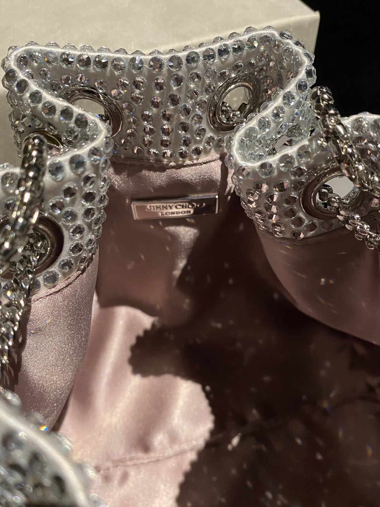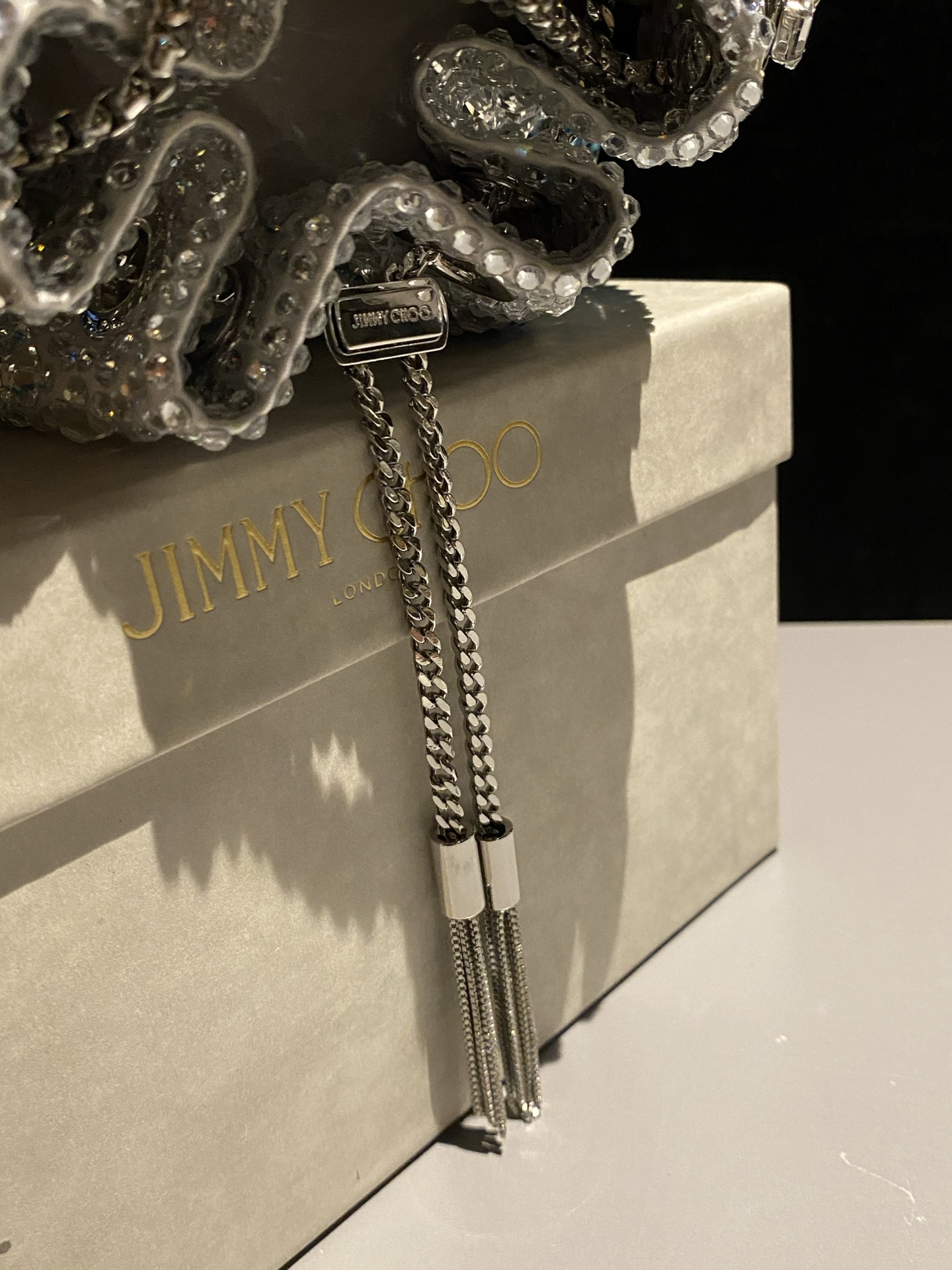 这款包包是AAAAA 1:1 质量 (非常棒). 使用了和原版一模一样的材料. 商标部分也保持了和吉米乔/JIMMY CHOO一样. 图片拍摄是实物包包拍摄, 您所收到的实物保证和我们图片一模一样.