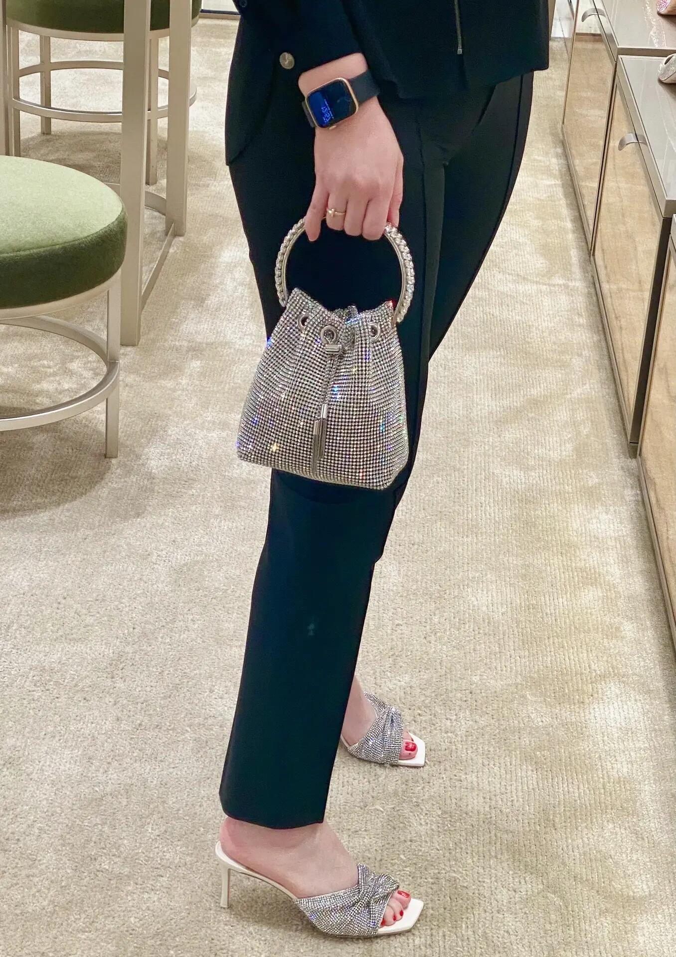 这款包包是AAAAA 1:1 质量 (非常棒). 使用了和原版一模一样的材料. 商标部分也保持了和吉米乔/JIMMY CHOO一样. 图片拍摄是实物包包拍摄, 您所收到的实物保证和我们图片一模一样.