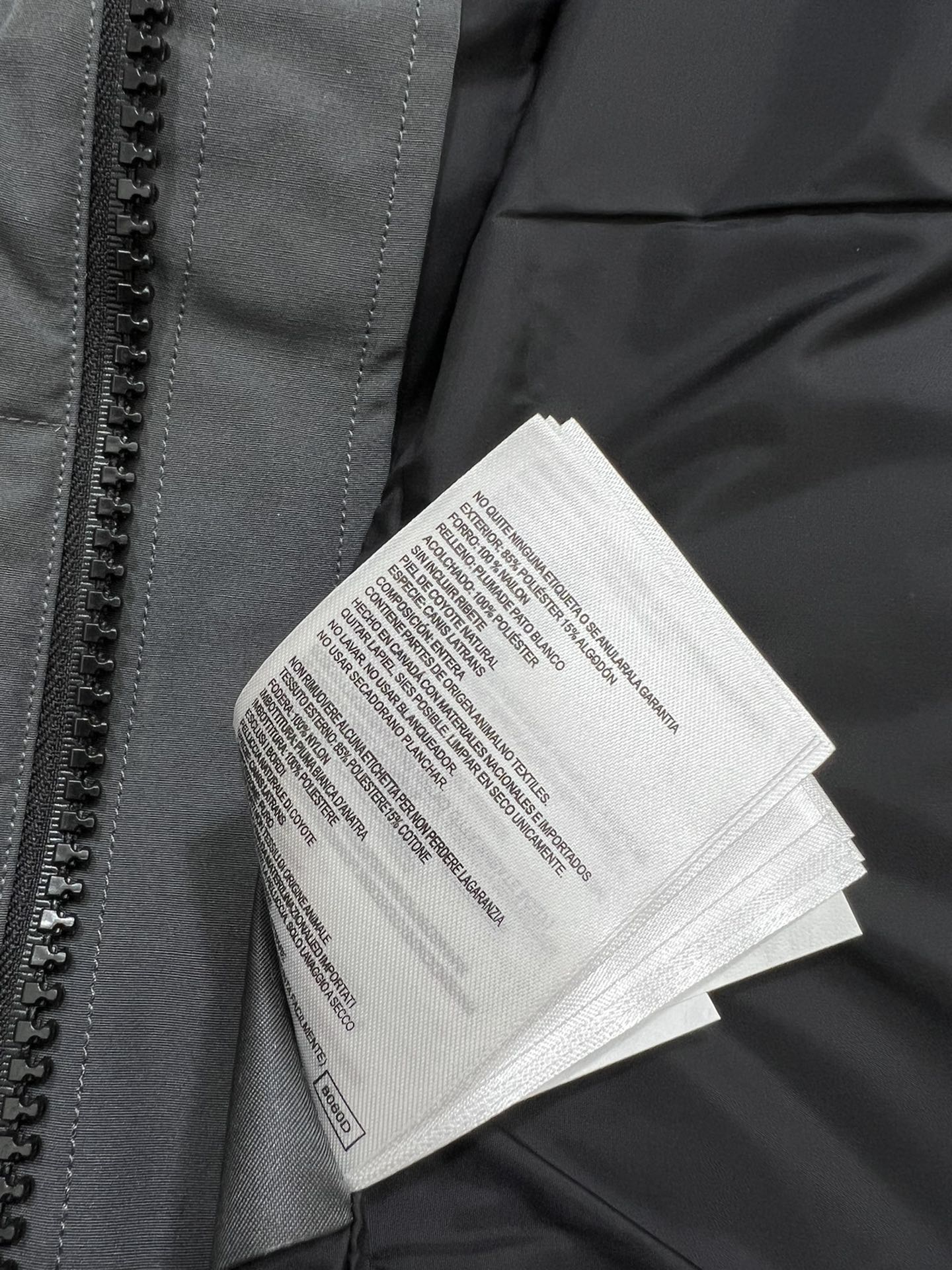 这款衣服是AAAAA 1:1 质量 (非常棒). 使用了和原版一模一样的材料. 商标部分也保持了和Canada Goose一样. 图片拍摄是实物衣服拍摄, 您所收到的实物保证和我们图片一模一样.