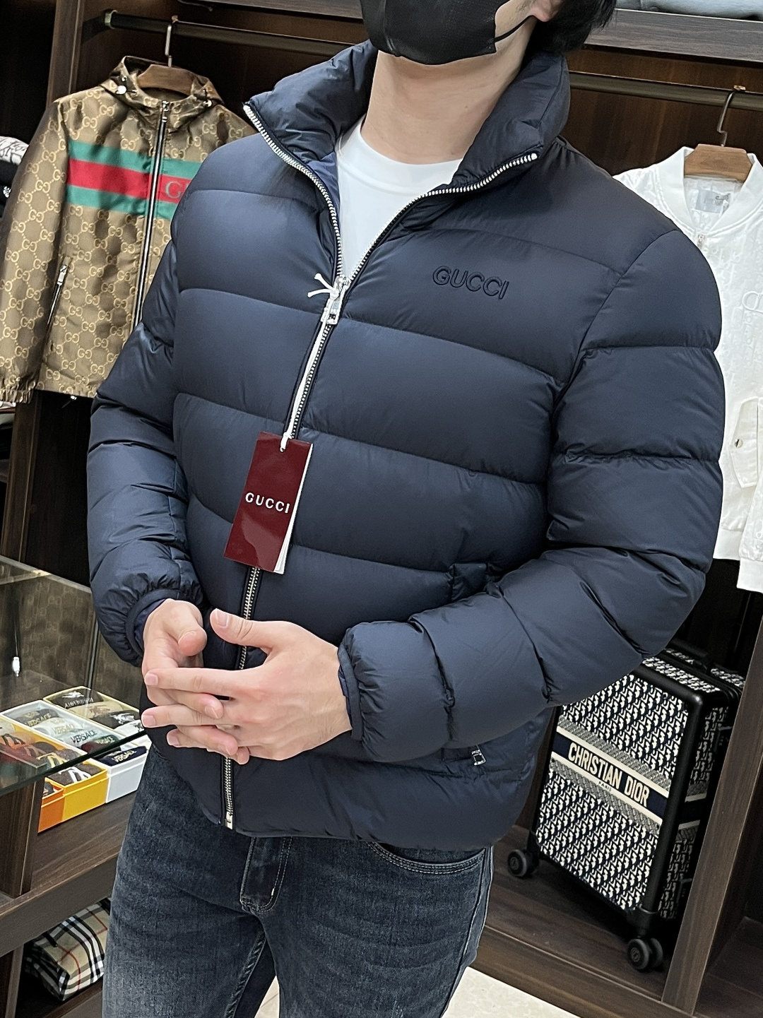 这款衣服是AAAAA 1:1 质量 (非常棒). 使用了和原版一模一样的材料. 商标部分也保持了和古奇/Gucci一样. 图片拍摄是实物衣服拍摄, 您所收到的实物保证和我们图片一模一样.
