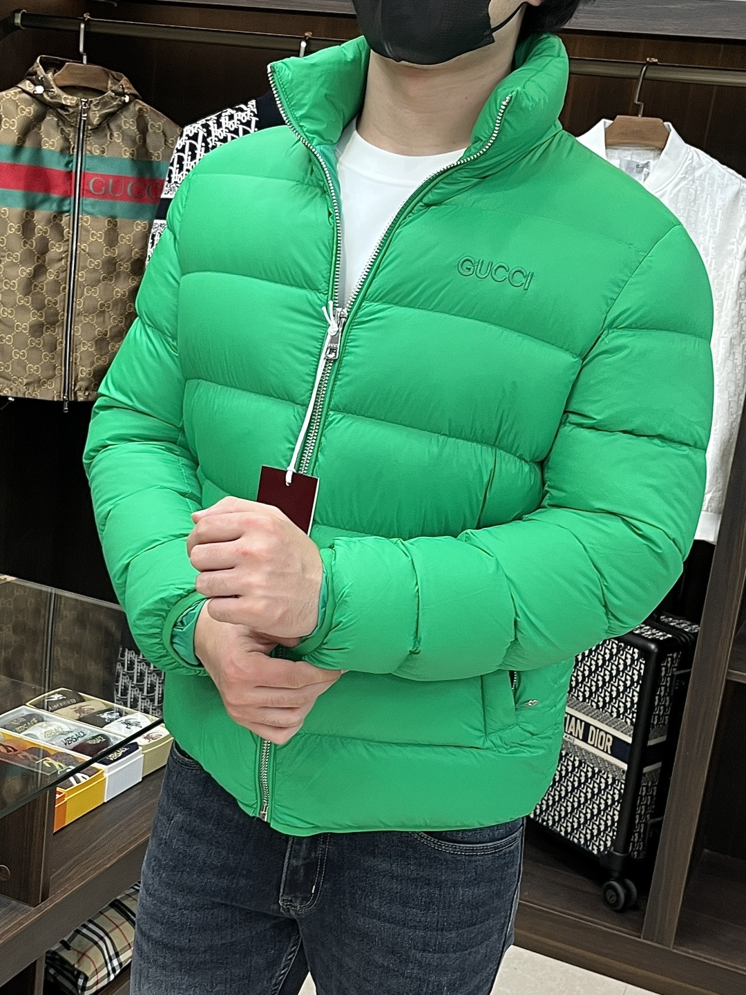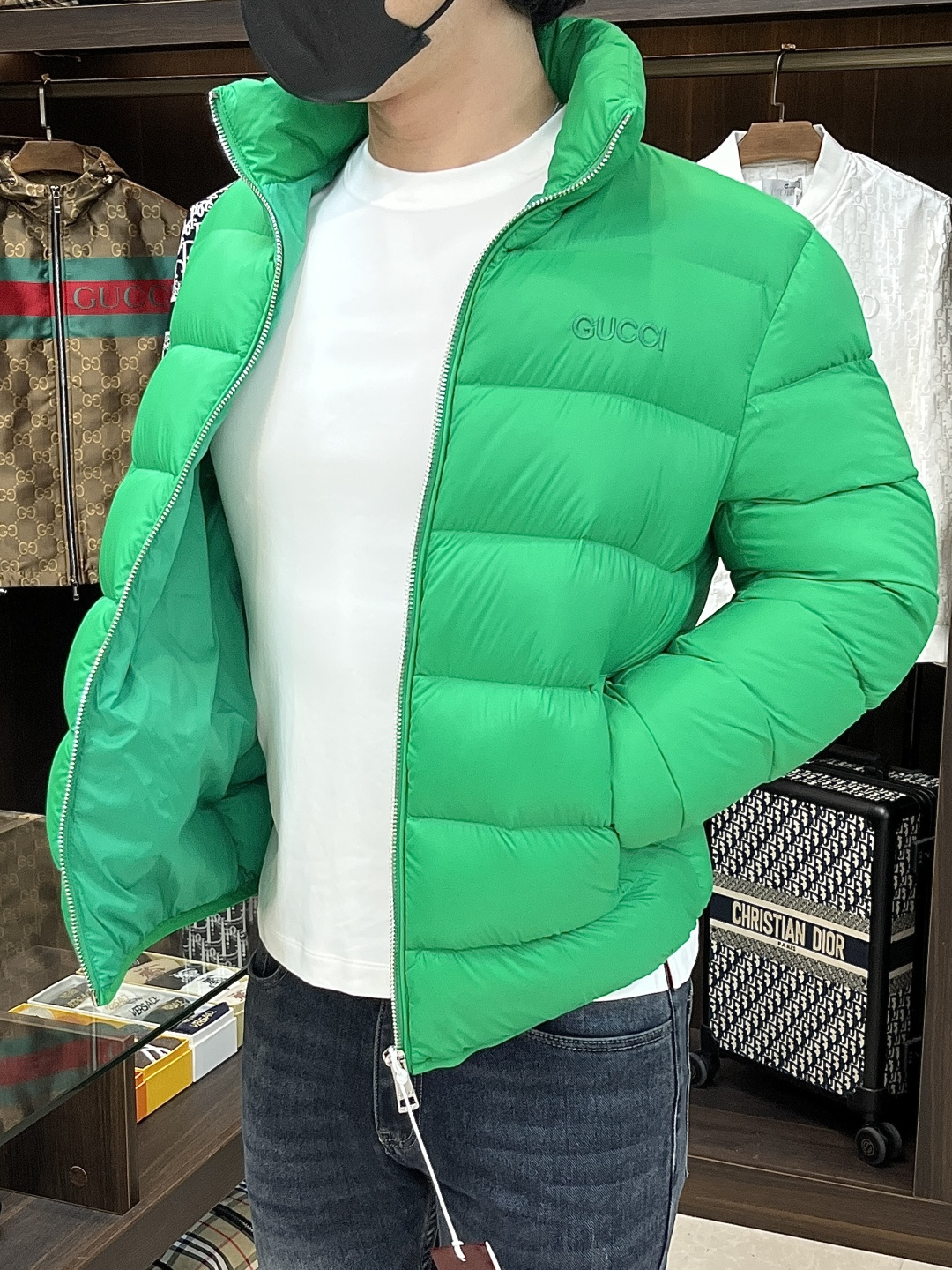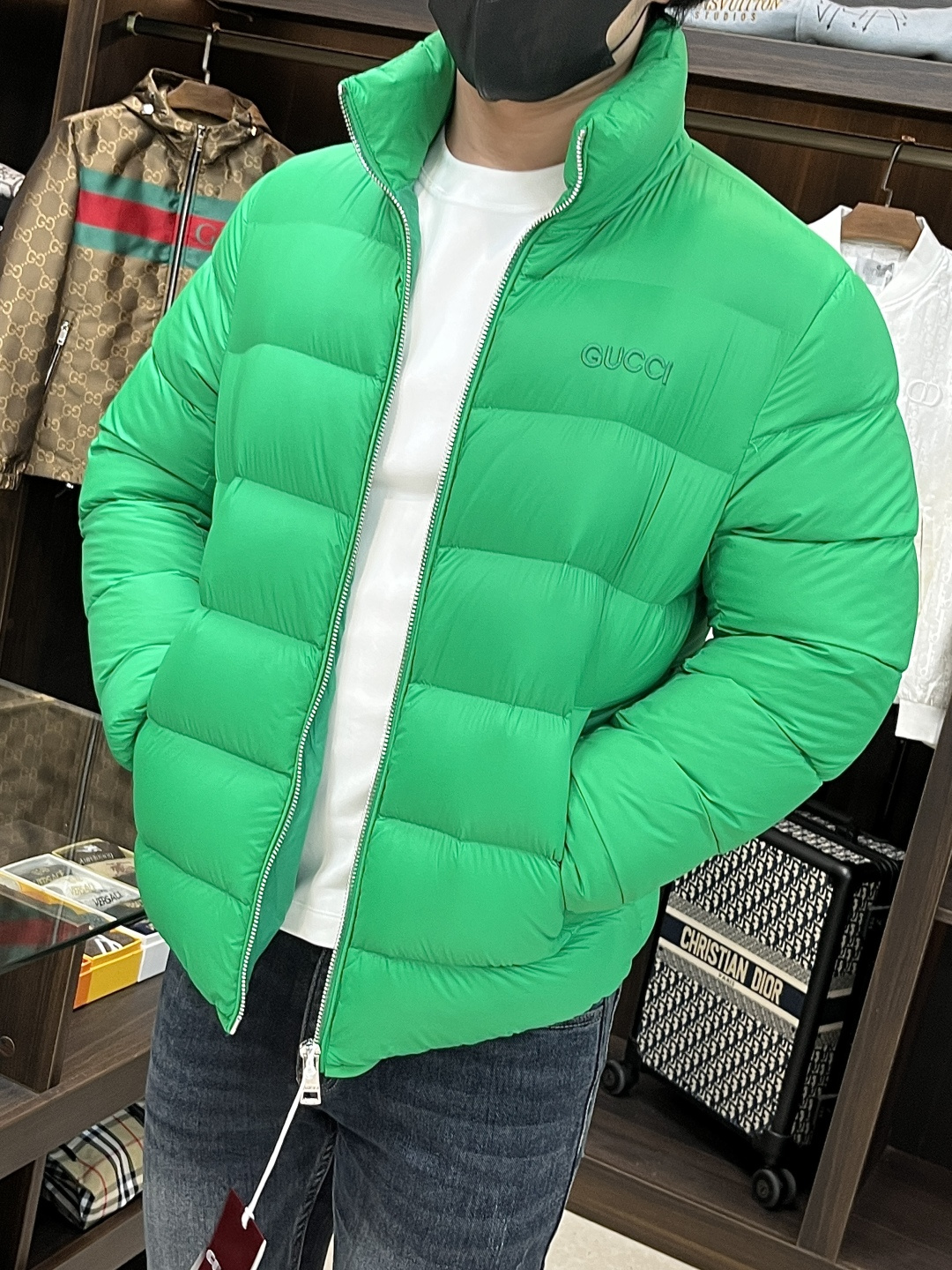 这款衣服是AAAAA 1:1 质量 (非常棒). 使用了和原版一模一样的材料. 商标部分也保持了和古奇/Gucci一样. 图片拍摄是实物衣服拍摄, 您所收到的实物保证和我们图片一模一样.