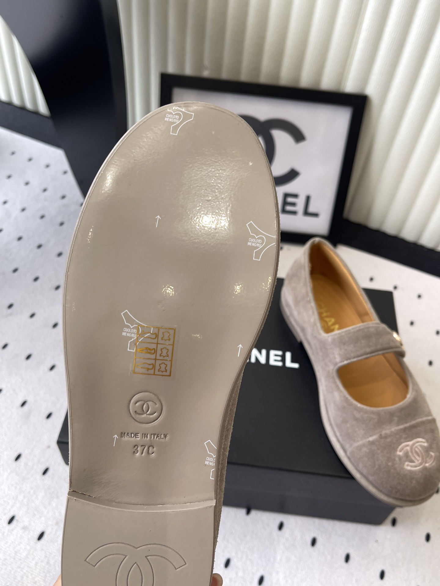 这款鞋子是AAAAA 1:1 质量 (非常棒). 使用了和原版一模一样的材料. 商标部分也保持了和香奈儿/Chanel一样. 图片拍摄是实物鞋子拍摄, 您所收到的实物保证和我们图片一模一样.