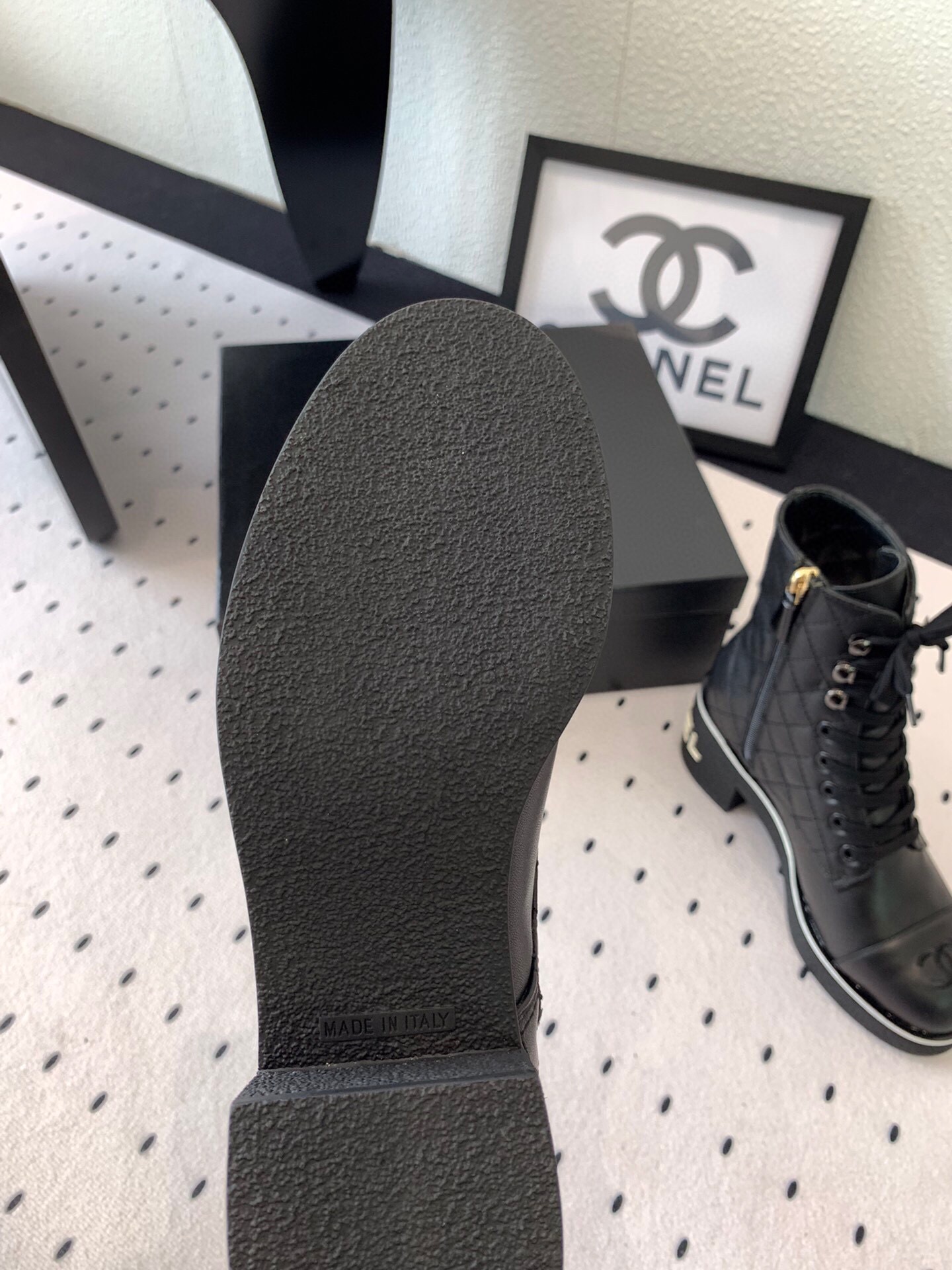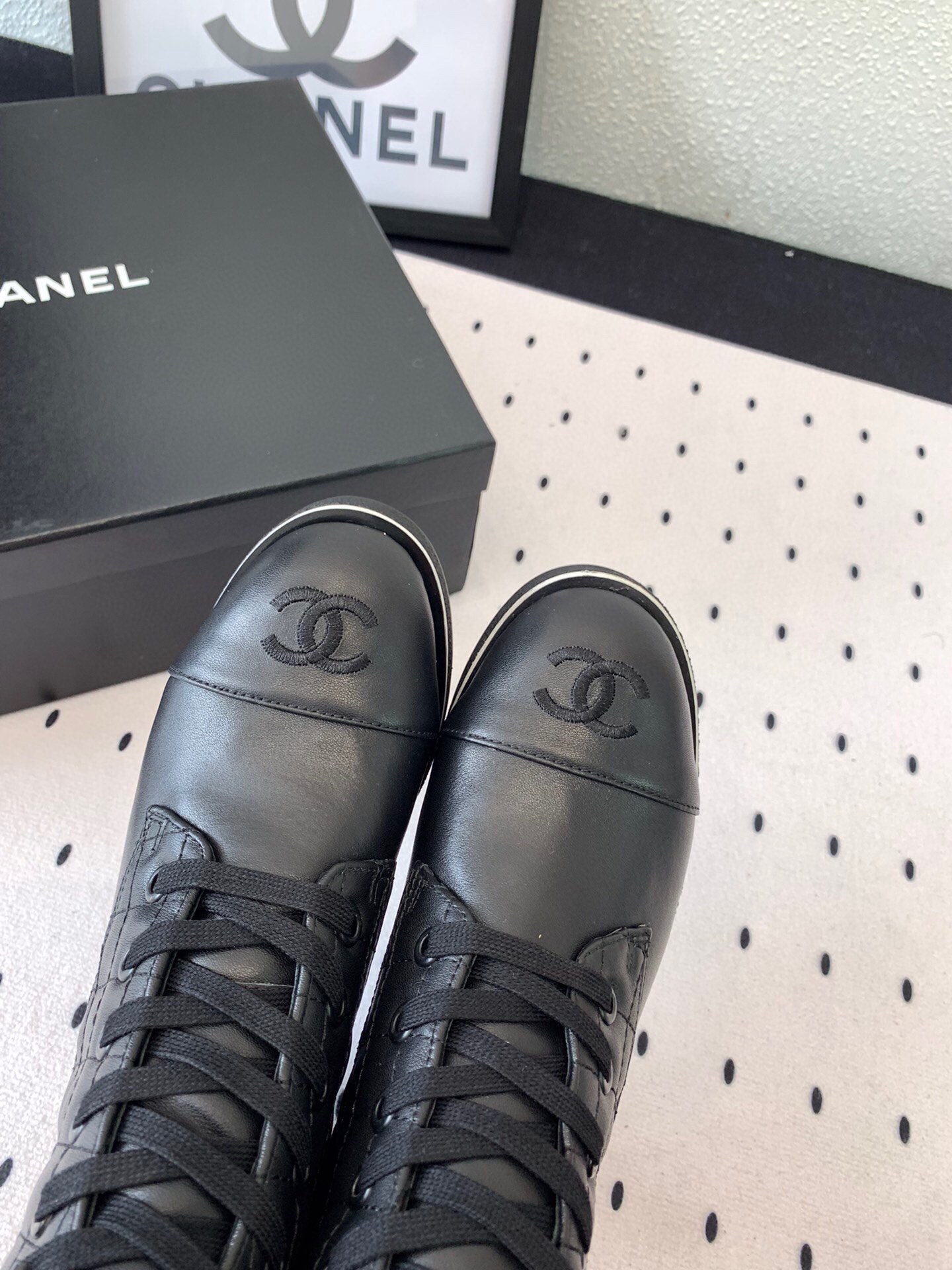 这款鞋子是AAAAA 1:1 质量 (非常棒). 使用了和原版一模一样的材料. 商标部分也保持了和香奈儿/Chanel一样. 图片拍摄是实物鞋子拍摄, 您所收到的实物保证和我们图片一模一样.