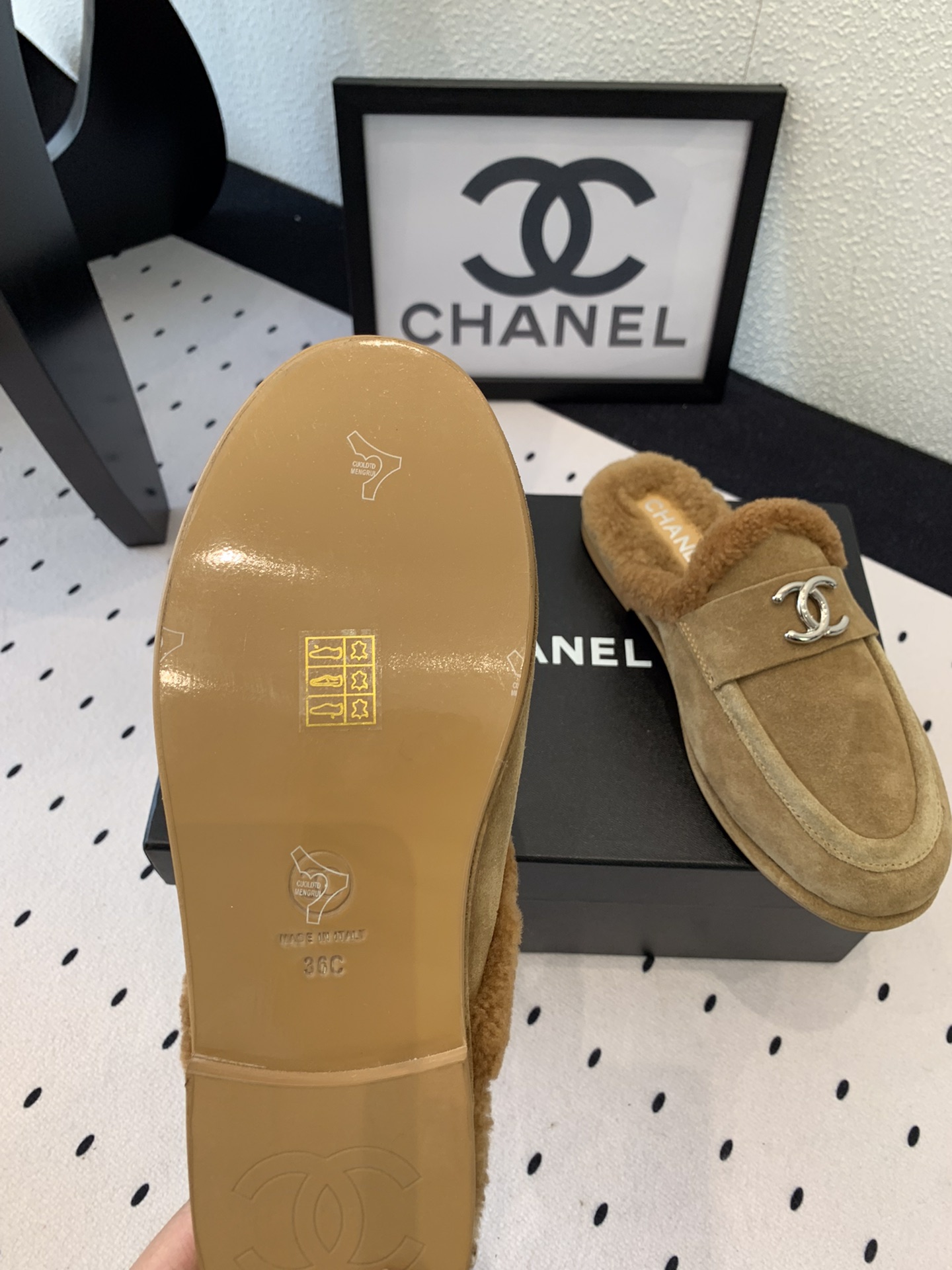 这款鞋子是AAAAA 1:1 质量 (非常棒). 使用了和原版一模一样的材料. 商标部分也保持了和香奈儿/Chanel一样. 图片拍摄是实物鞋子拍摄, 您所收到的实物保证和我们图片一模一样.
