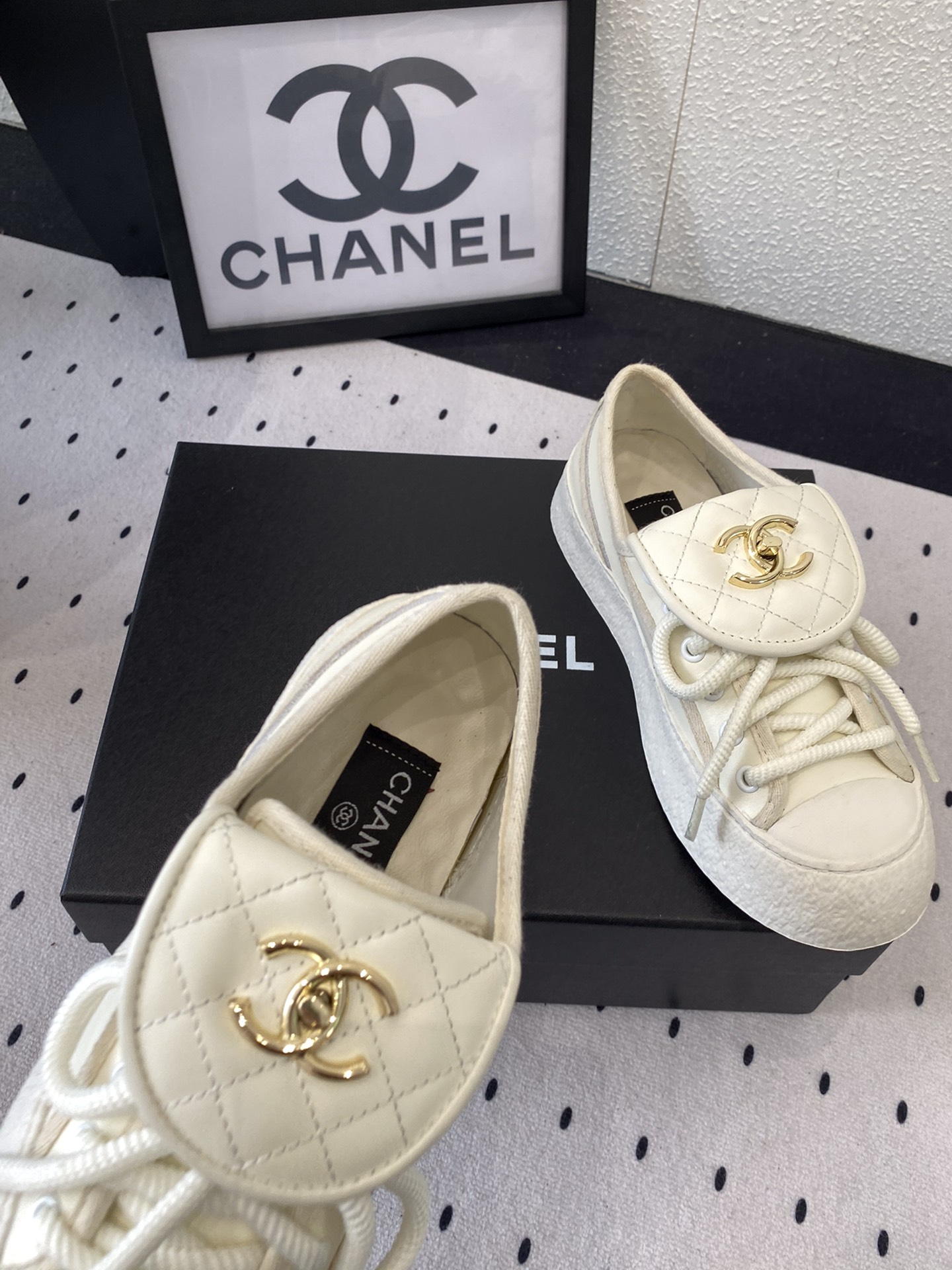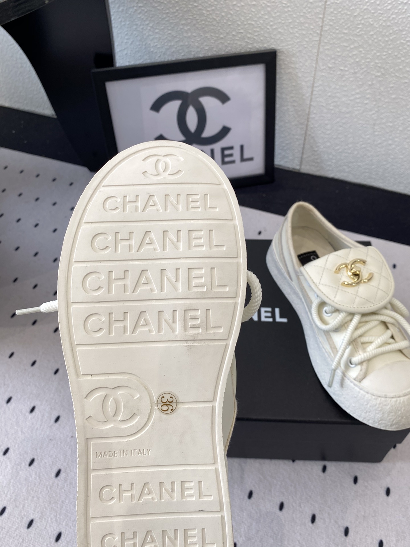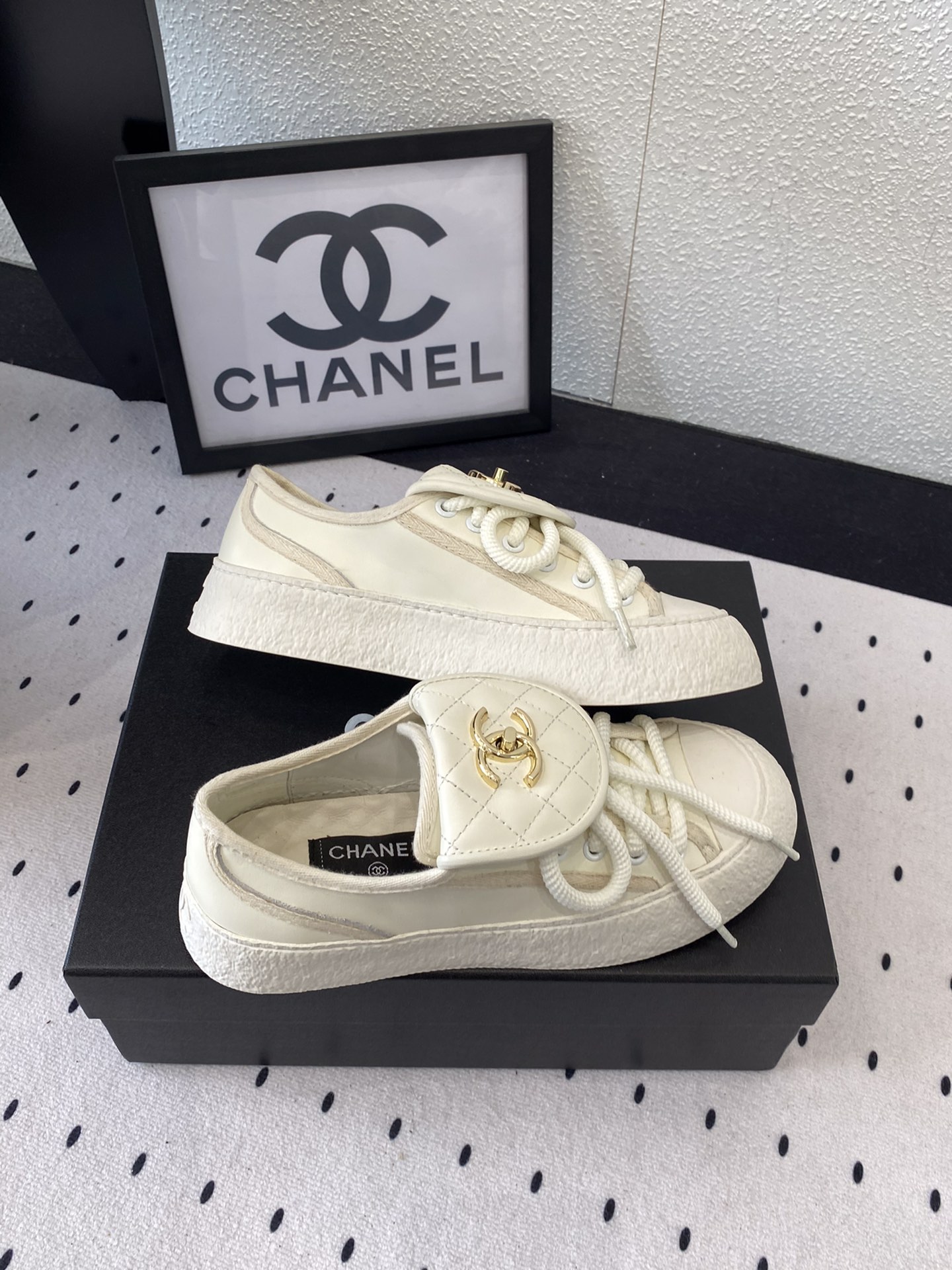 这款鞋子是AAAAA 1:1 质量 (非常棒). 使用了和原版一模一样的材料. 商标部分也保持了和香奈儿/Chanel一样. 图片拍摄是实物鞋子拍摄, 您所收到的实物保证和我们图片一模一样.