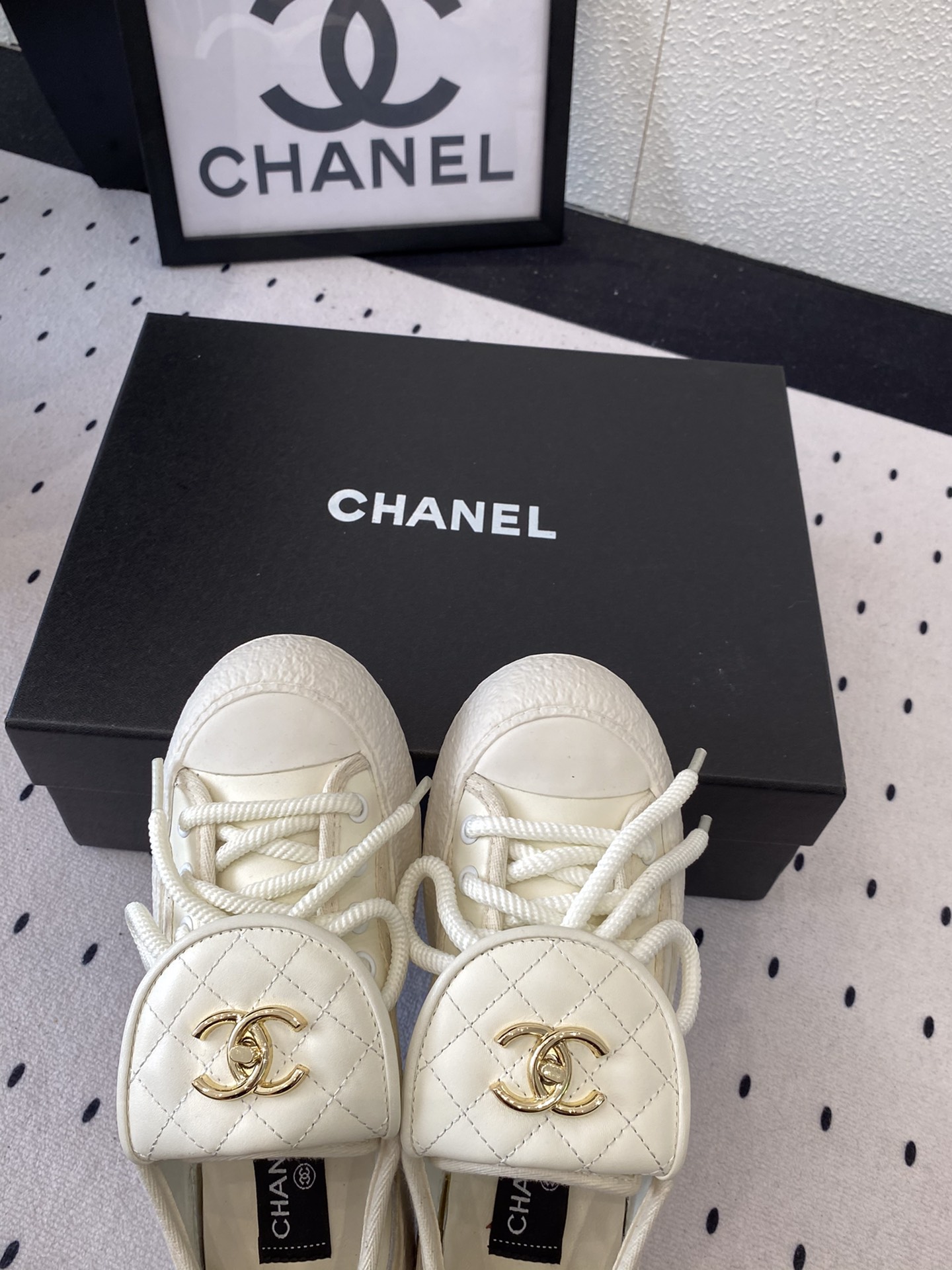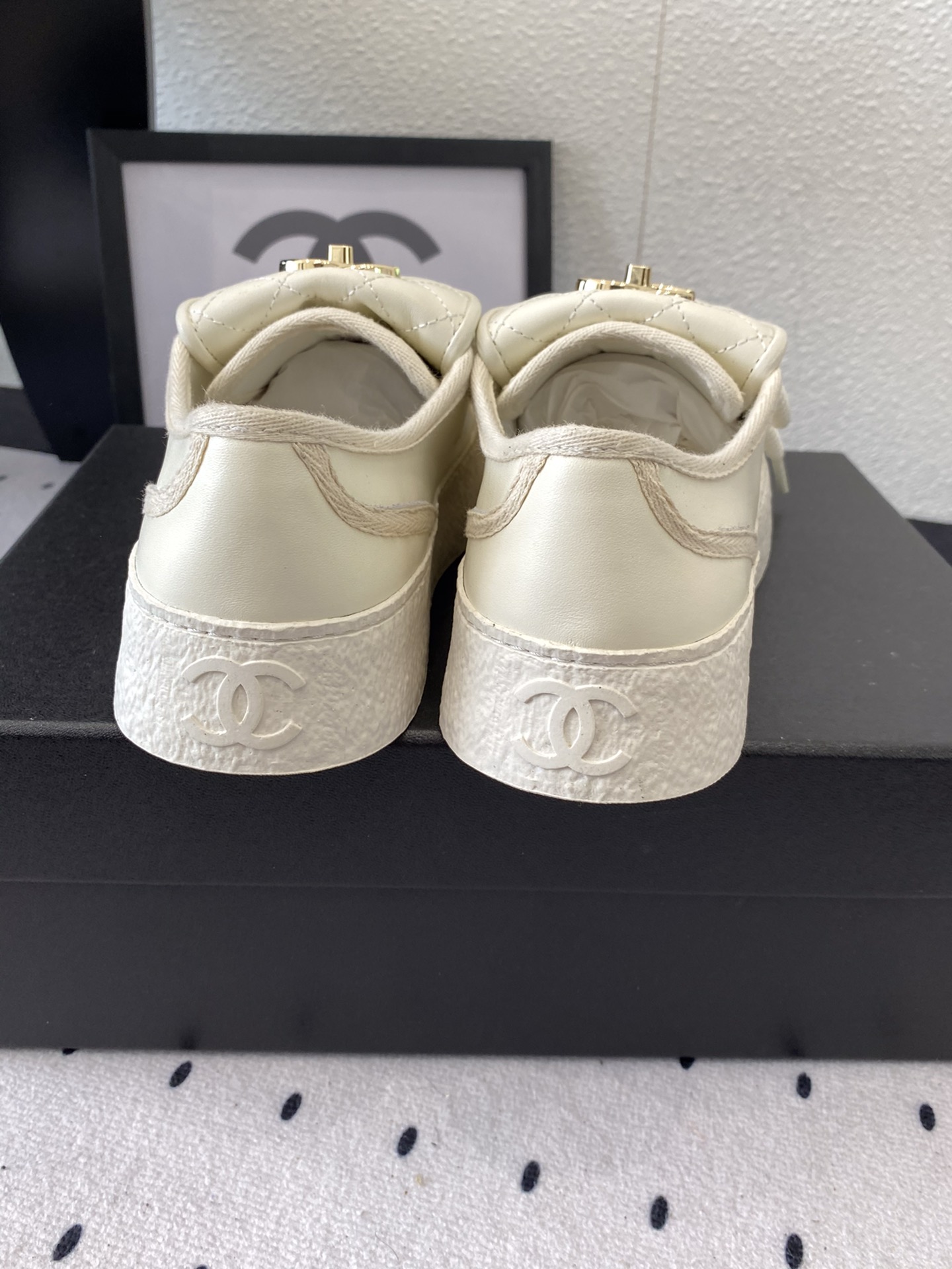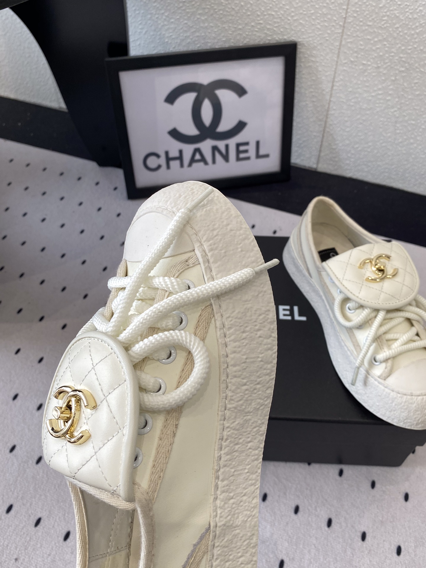 这款鞋子是AAAAA 1:1 质量 (非常棒). 使用了和原版一模一样的材料. 商标部分也保持了和香奈儿/Chanel一样. 图片拍摄是实物鞋子拍摄, 您所收到的实物保证和我们图片一模一样.