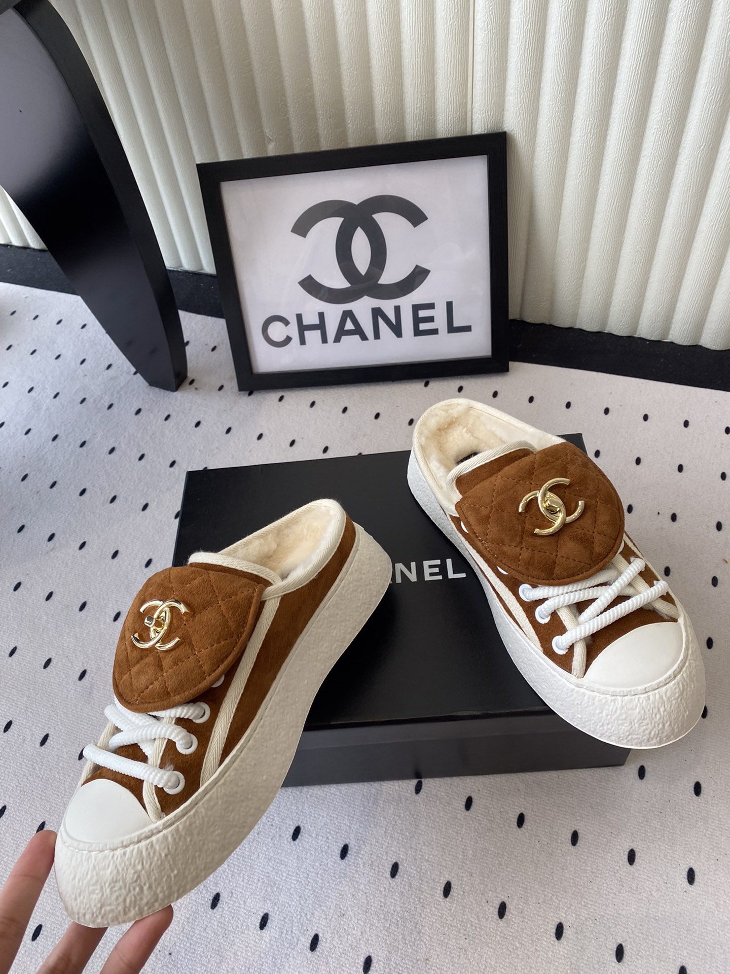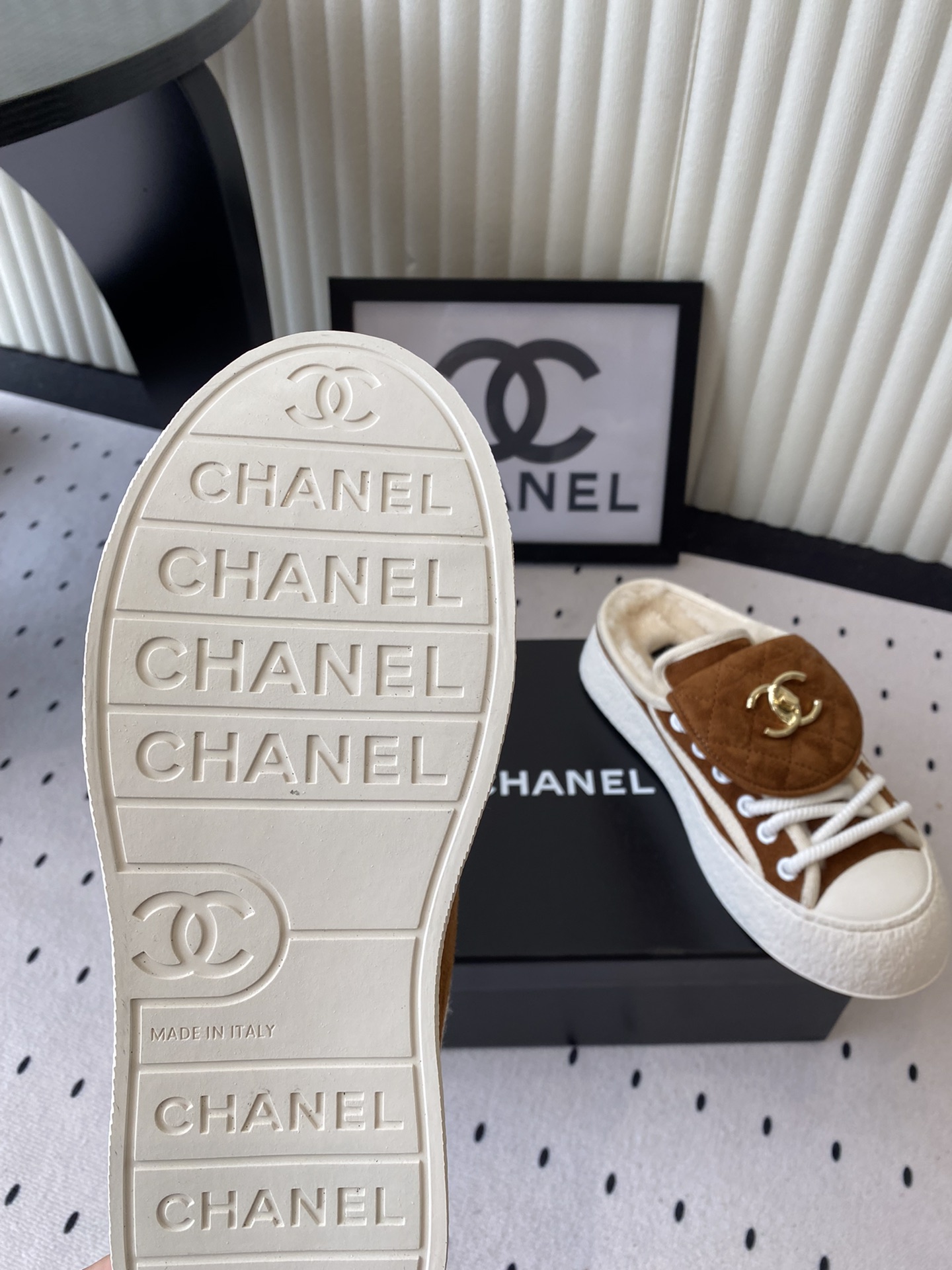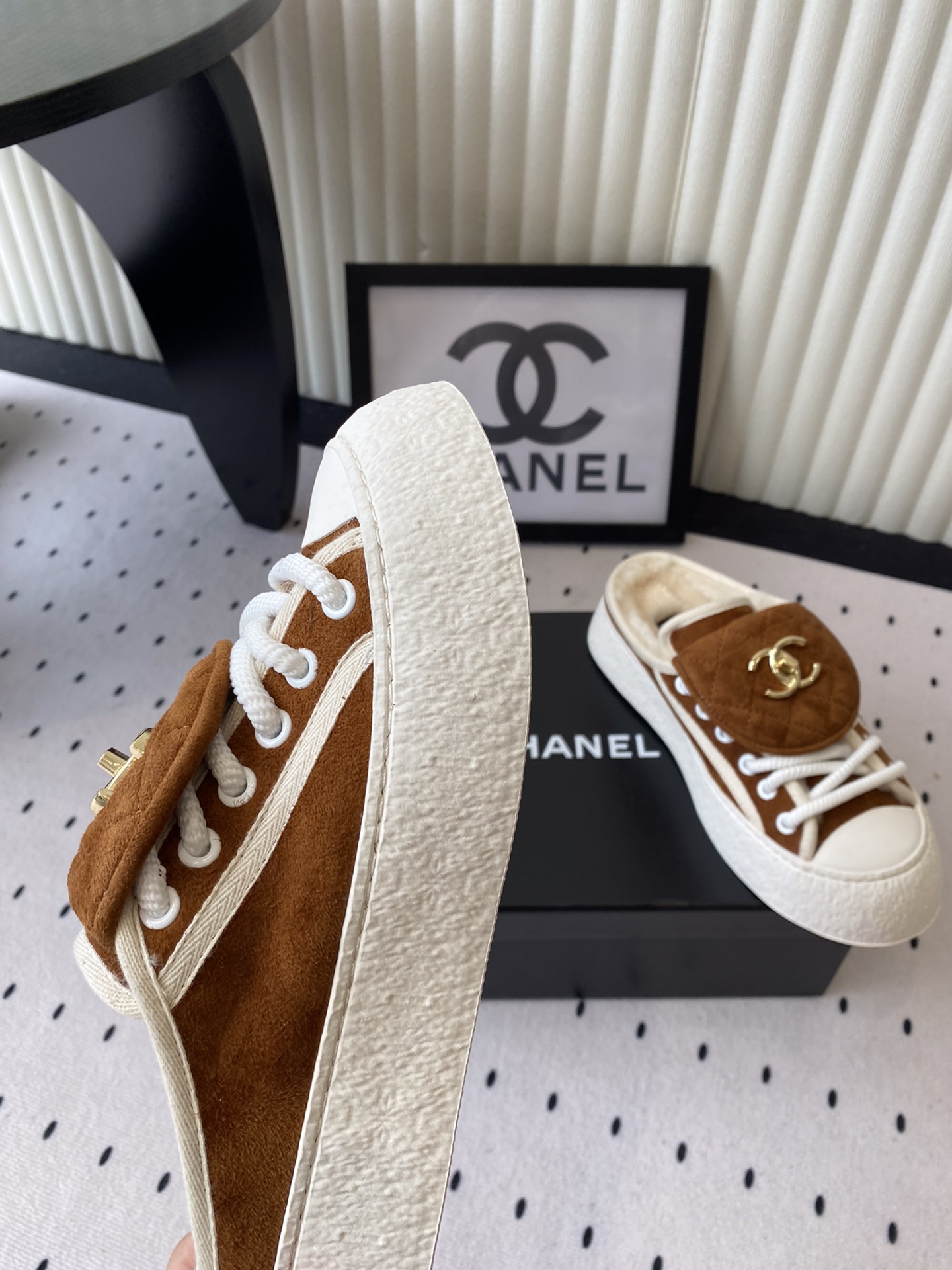 这款鞋子是AAAAA 1:1 质量 (非常棒). 使用了和原版一模一样的材料. 商标部分也保持了和香奈儿/Chanel一样. 图片拍摄是实物鞋子拍摄, 您所收到的实物保证和我们图片一模一样.