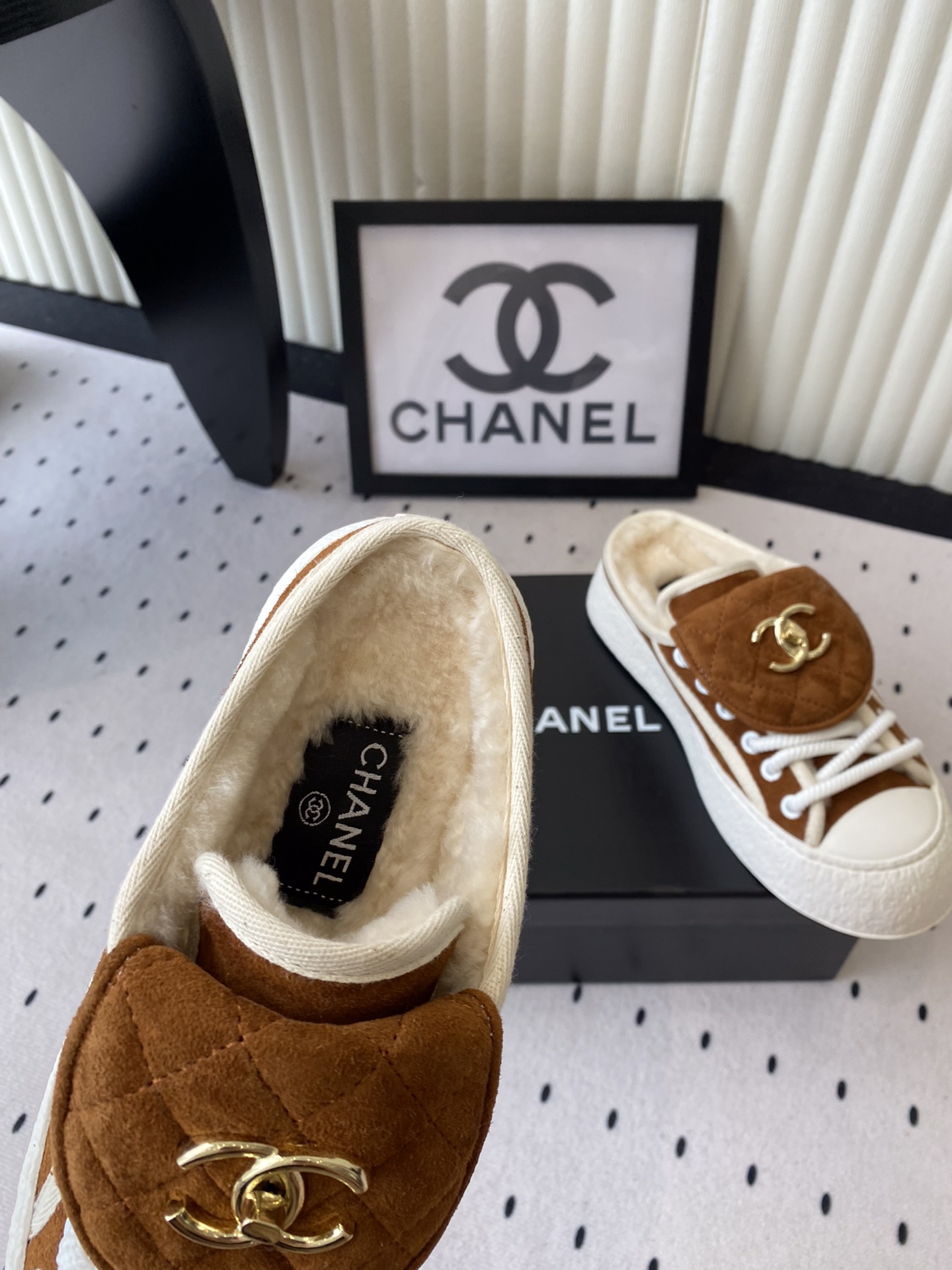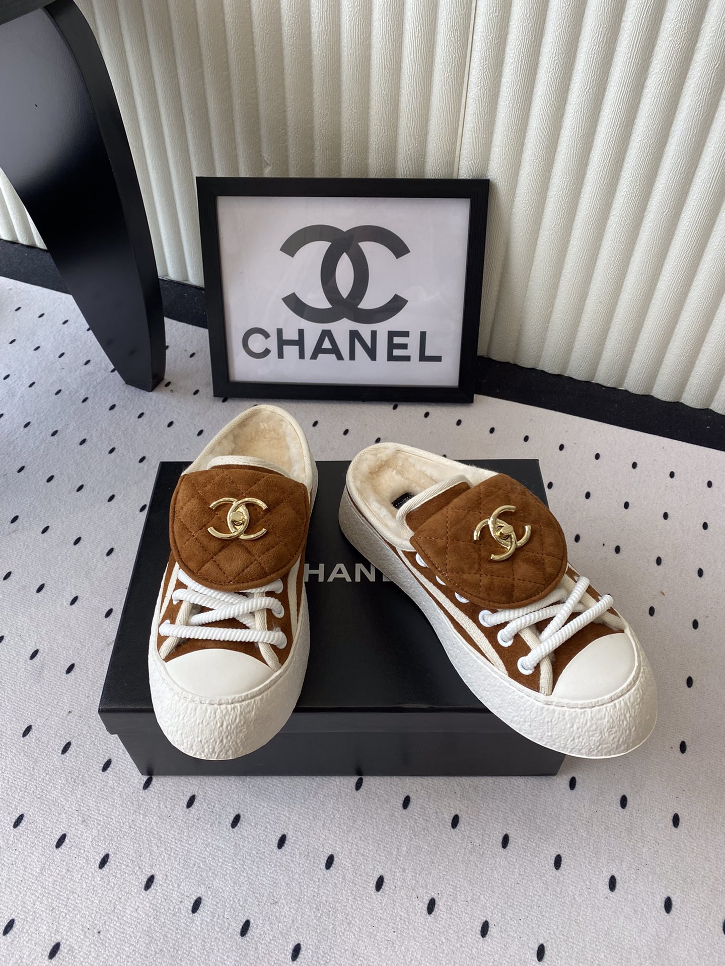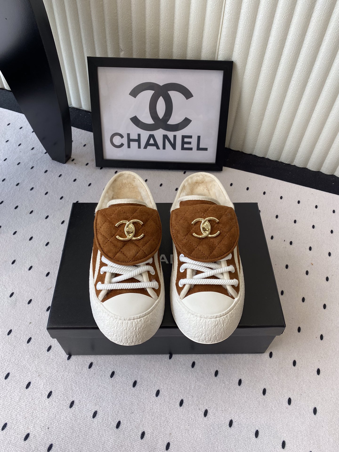 这款鞋子是AAAAA 1:1 质量 (非常棒). 使用了和原版一模一样的材料. 商标部分也保持了和香奈儿/Chanel一样. 图片拍摄是实物鞋子拍摄, 您所收到的实物保证和我们图片一模一样.