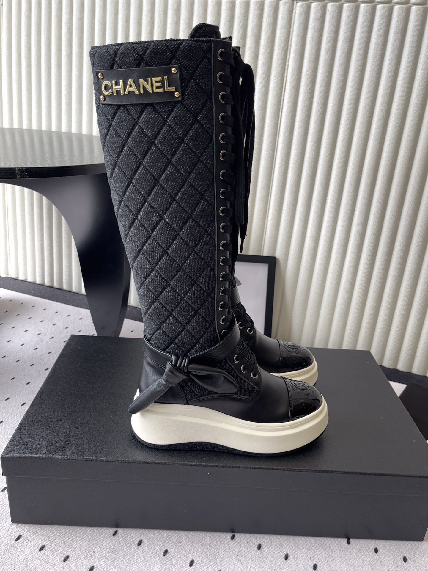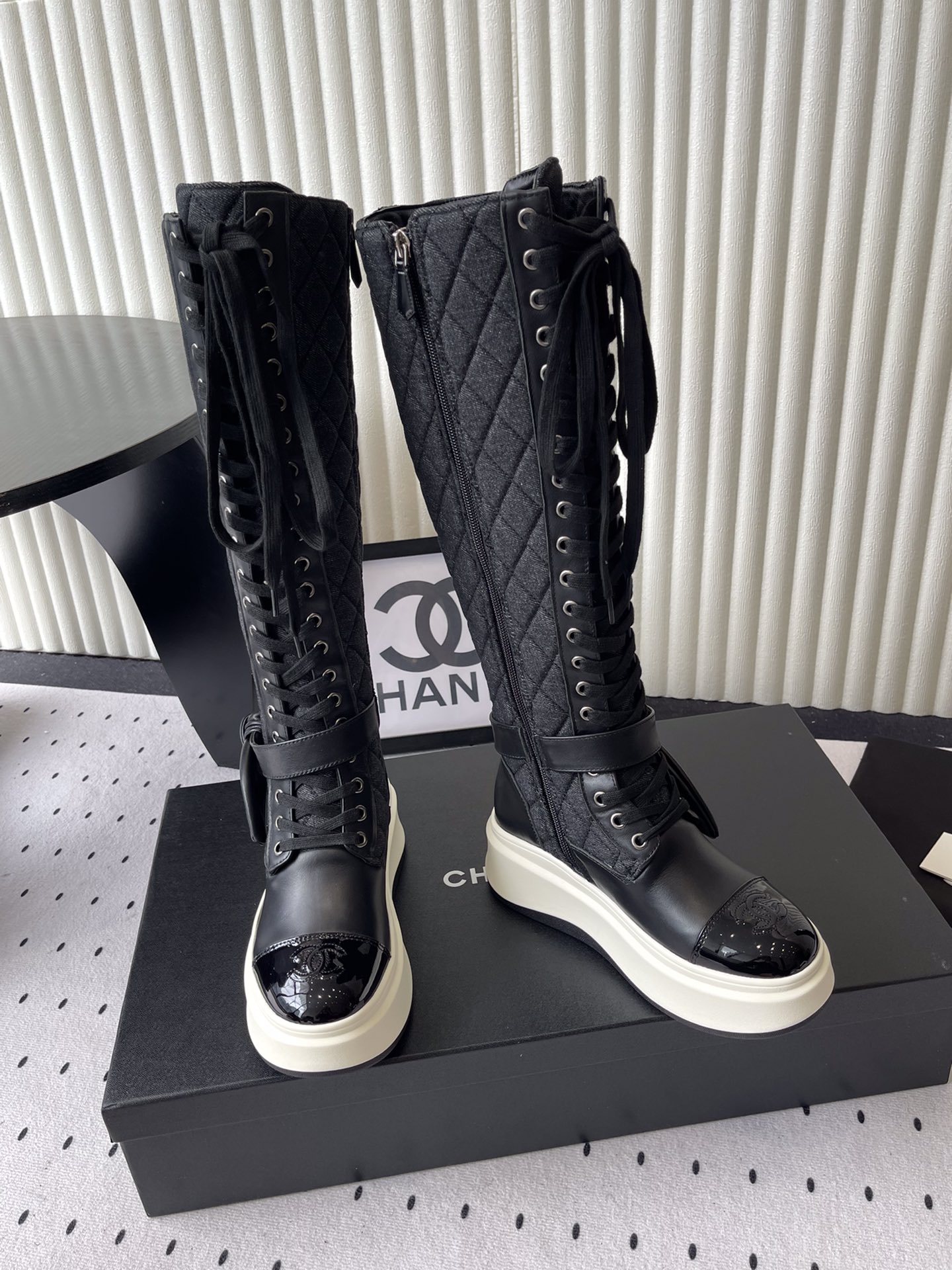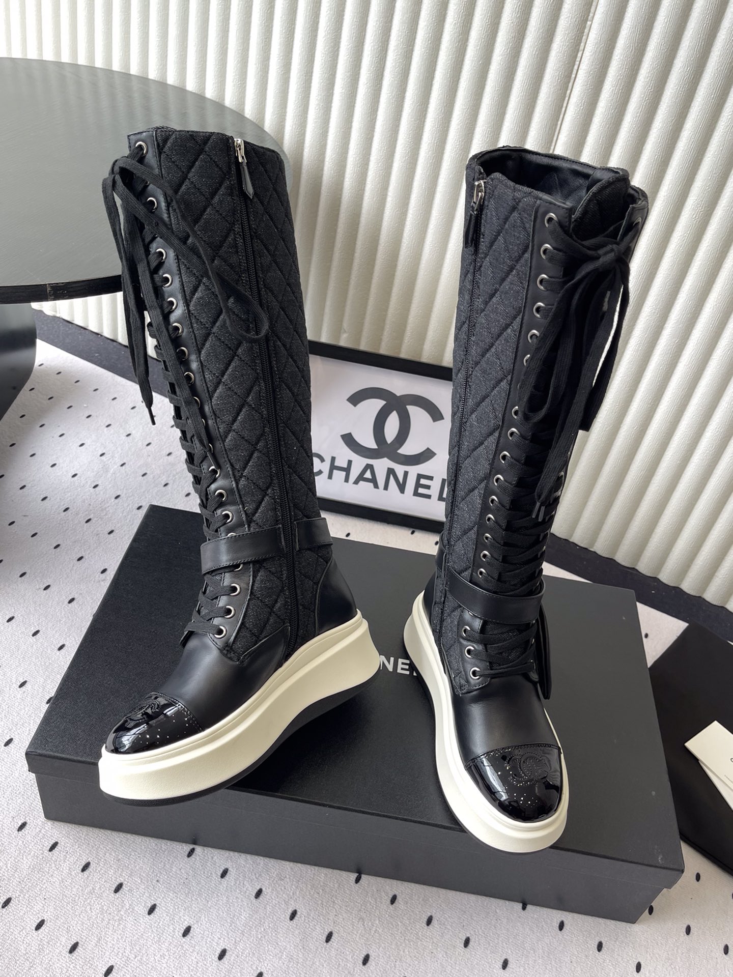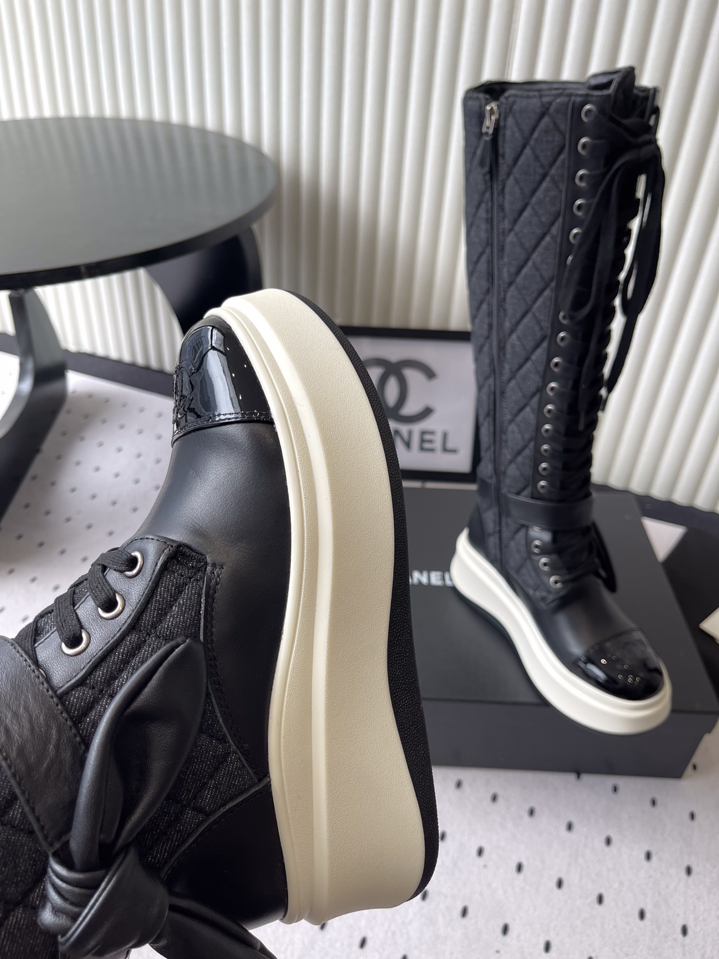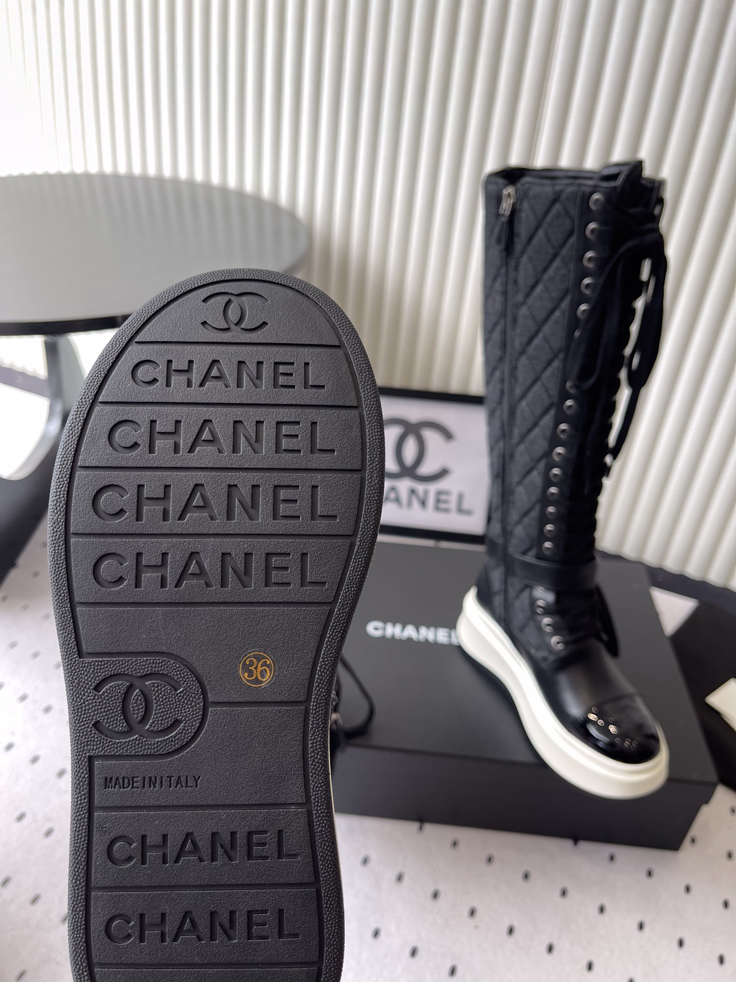这款鞋子是AAAAA 1:1 质量 (非常棒). 使用了和原版一模一样的材料. 商标部分也保持了和香奈儿/Chanel一样. 图片拍摄是实物鞋子拍摄, 您所收到的实物保证和我们图片一模一样.