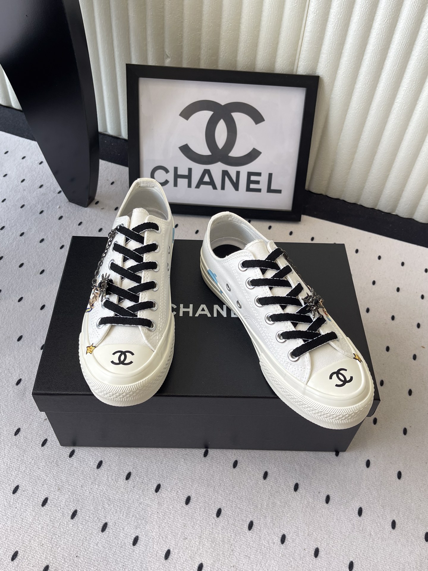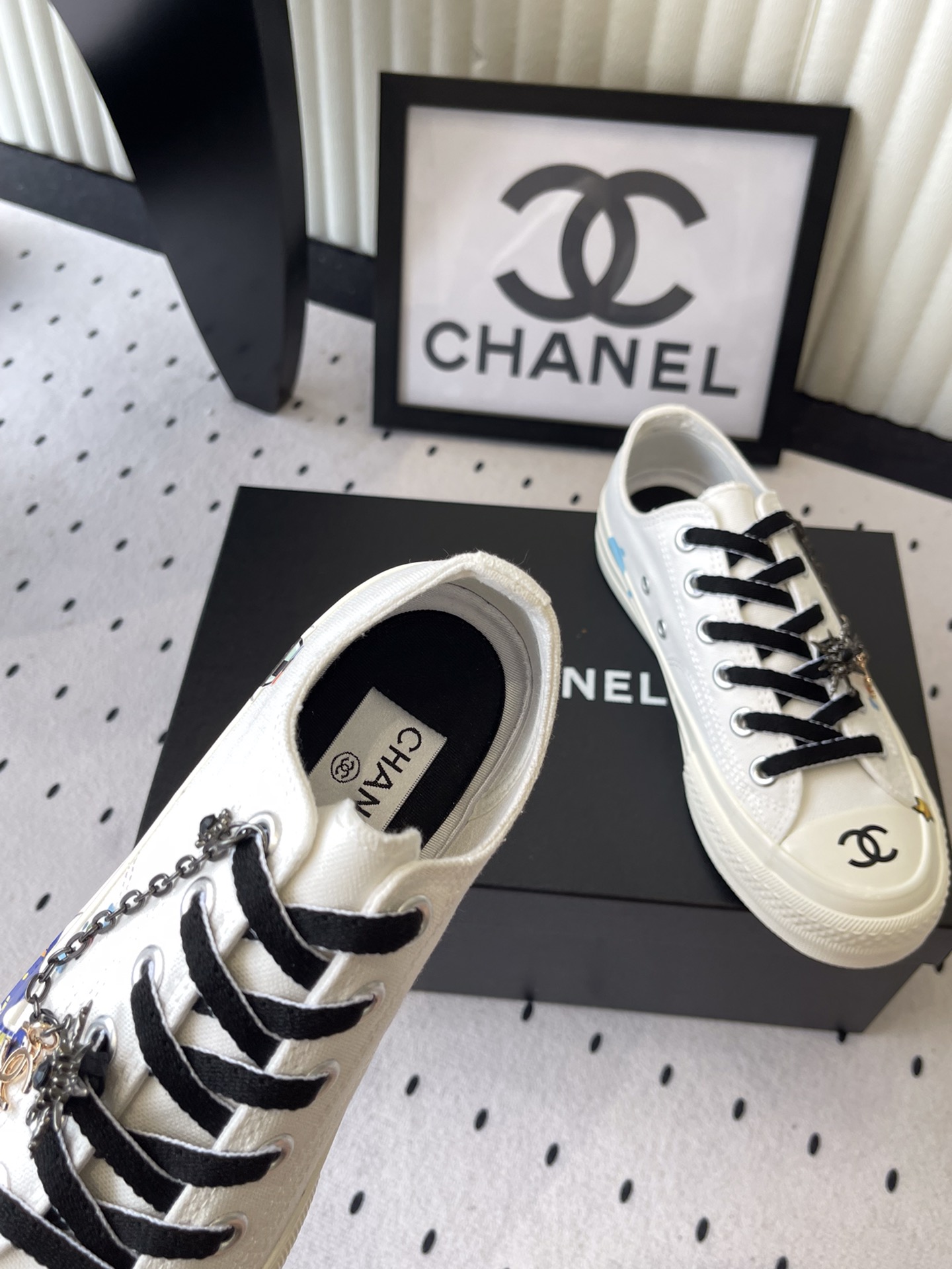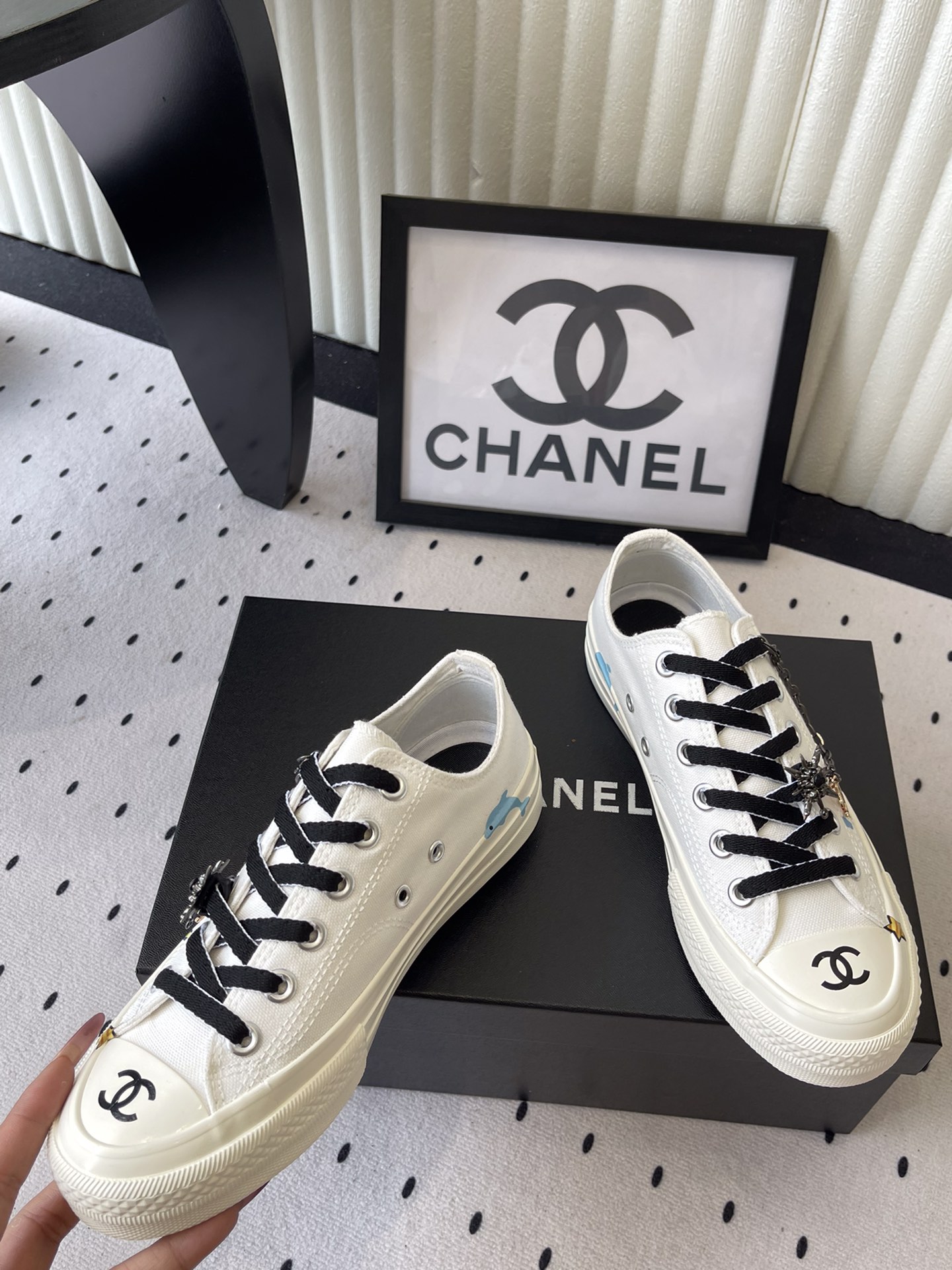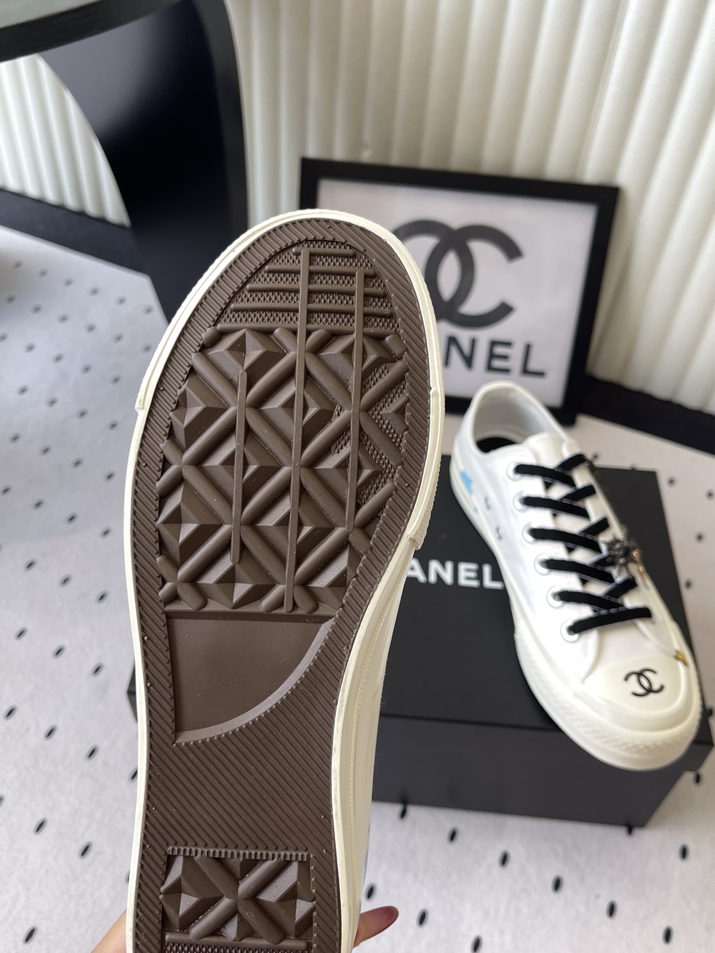这款鞋子是AAAAA 1:1 质量 (非常棒). 使用了和原版一模一样的材料. 商标部分也保持了和香奈儿/Chanel一样. 图片拍摄是实物鞋子拍摄, 您所收到的实物保证和我们图片一模一样.