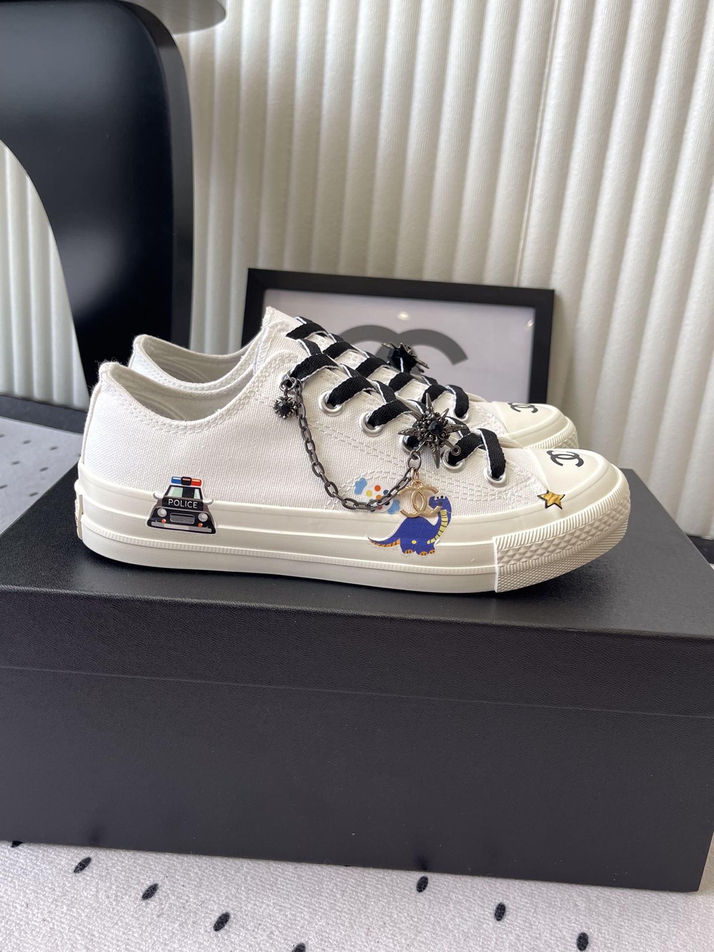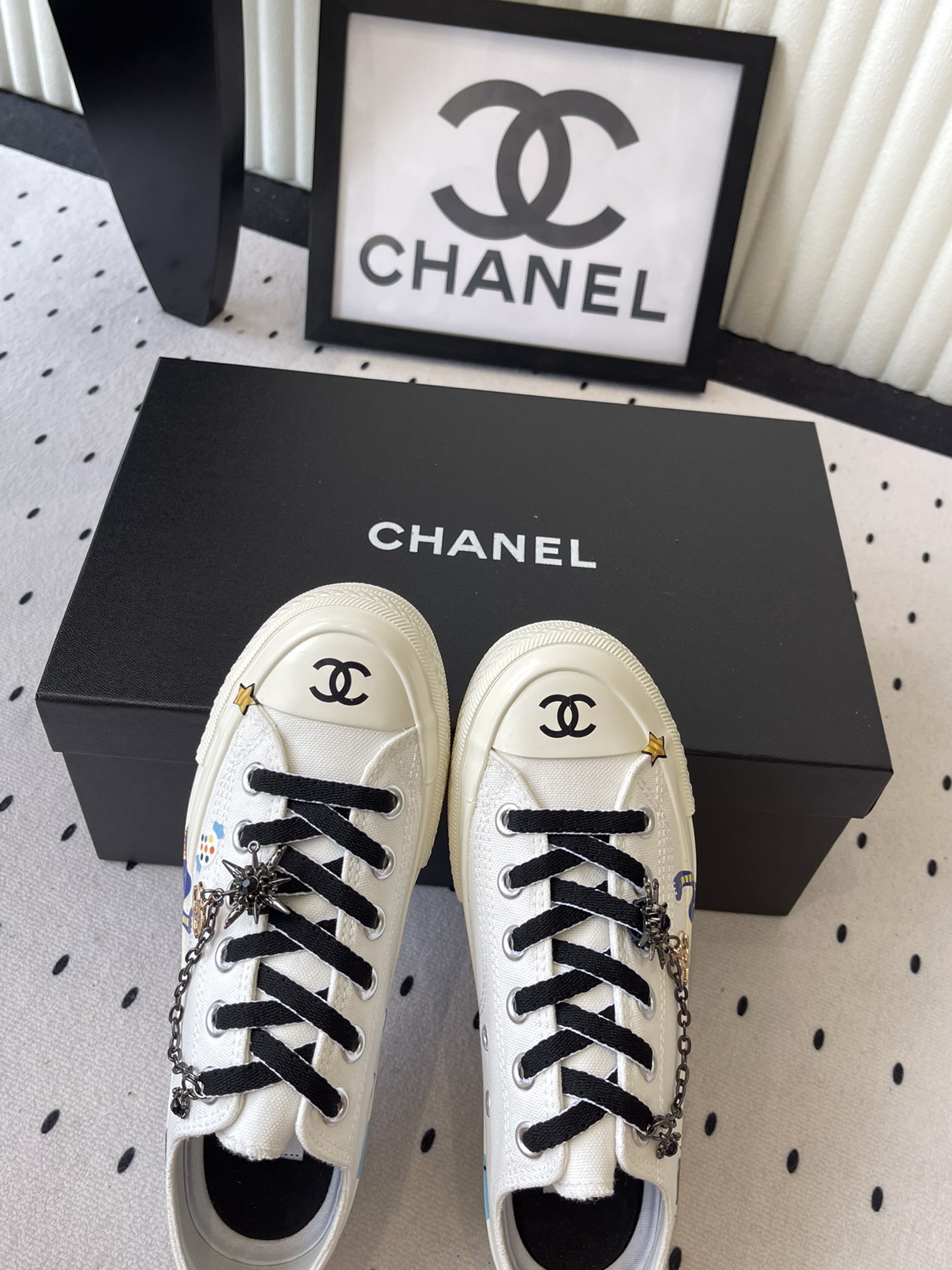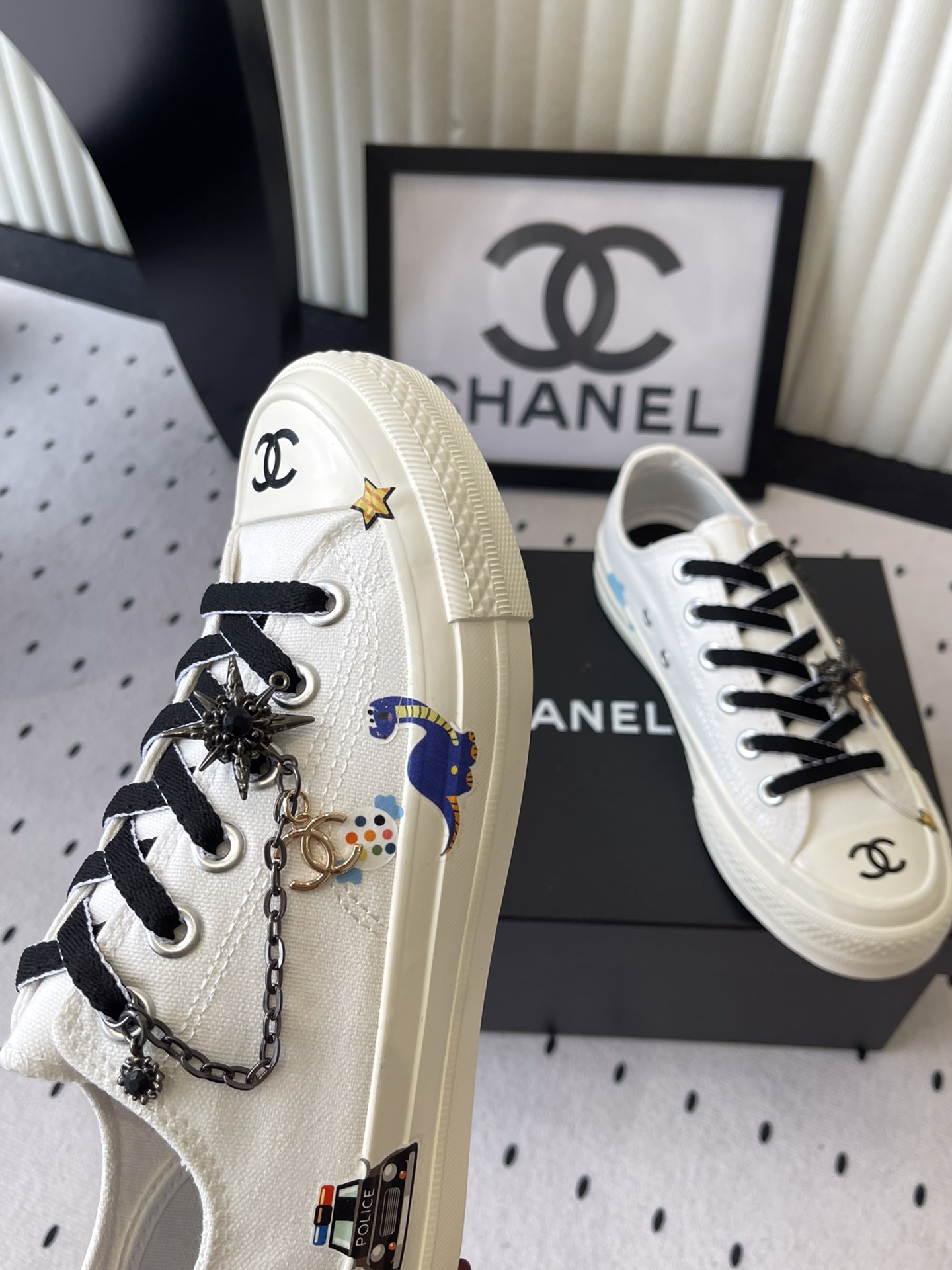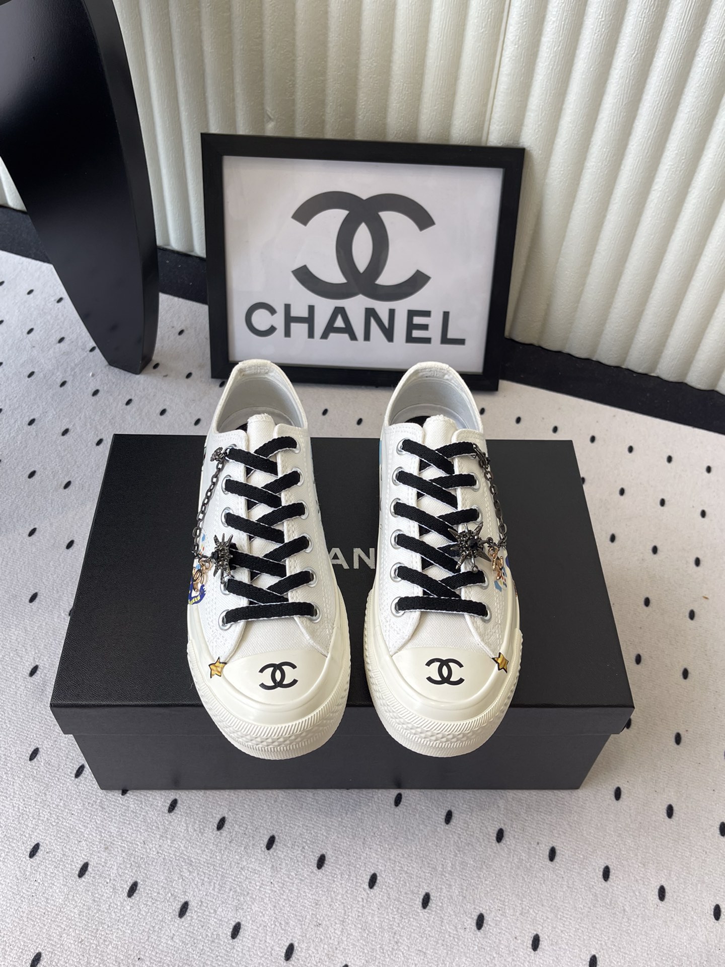 这款鞋子是AAAAA 1:1 质量 (非常棒). 使用了和原版一模一样的材料. 商标部分也保持了和香奈儿/Chanel一样. 图片拍摄是实物鞋子拍摄, 您所收到的实物保证和我们图片一模一样.