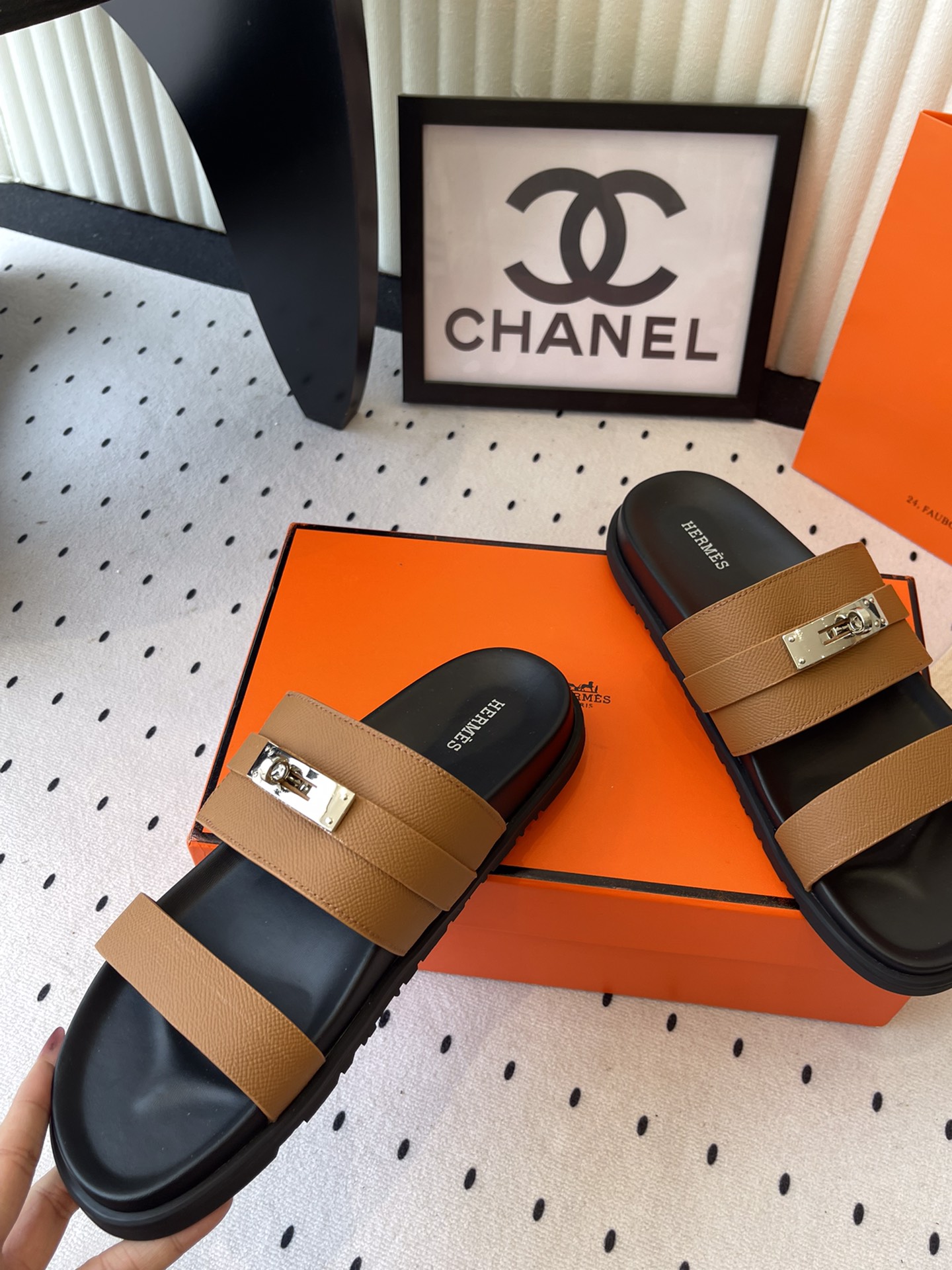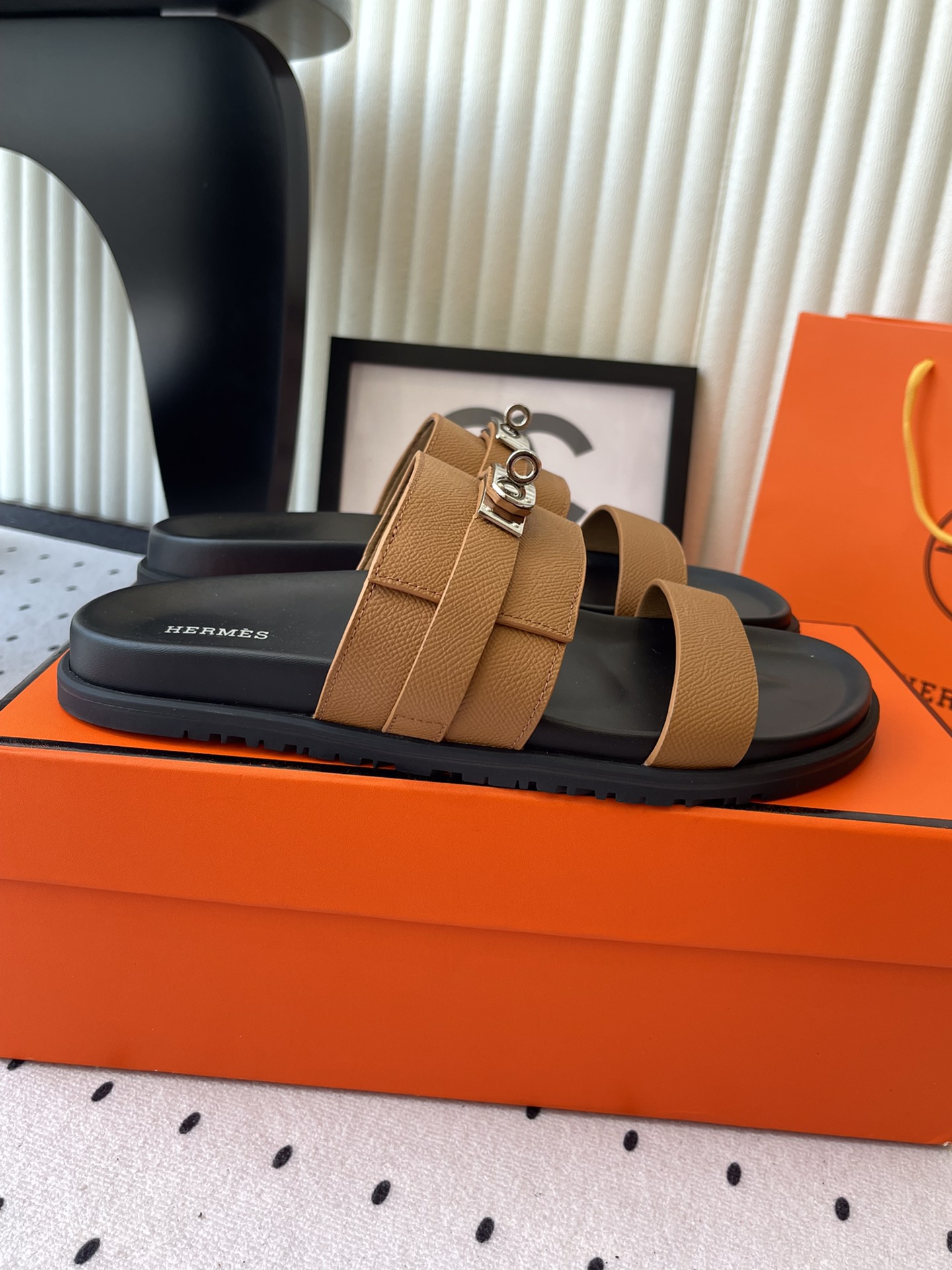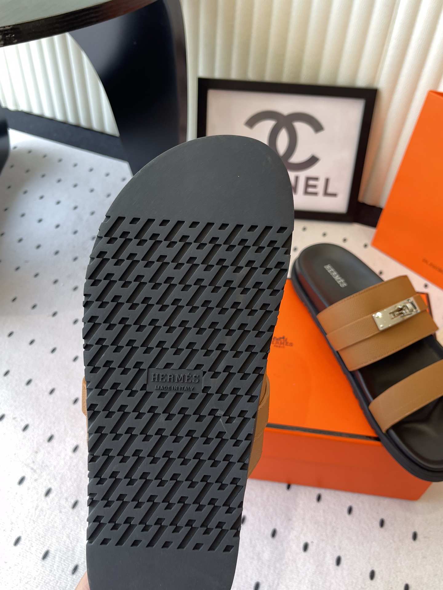 这款鞋子是AAAAA 1:1 质量 (非常棒). 使用了和原版一模一样的材料. 商标部分也保持了和爱马仕/Hermes一样. 图片拍摄是实物鞋子拍摄, 您所收到的实物保证和我们图片一模一样.