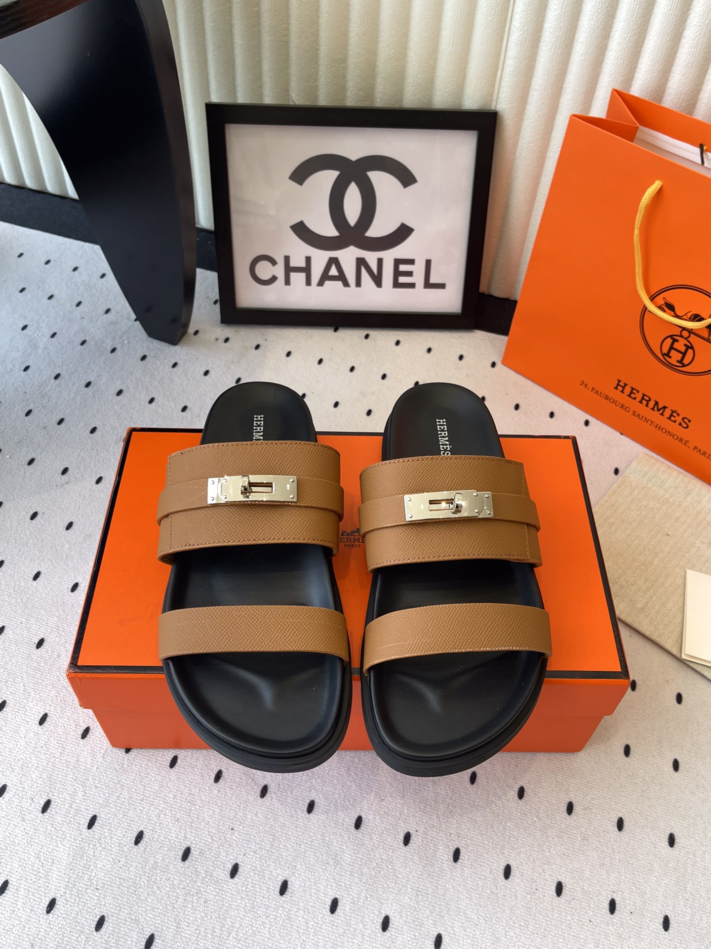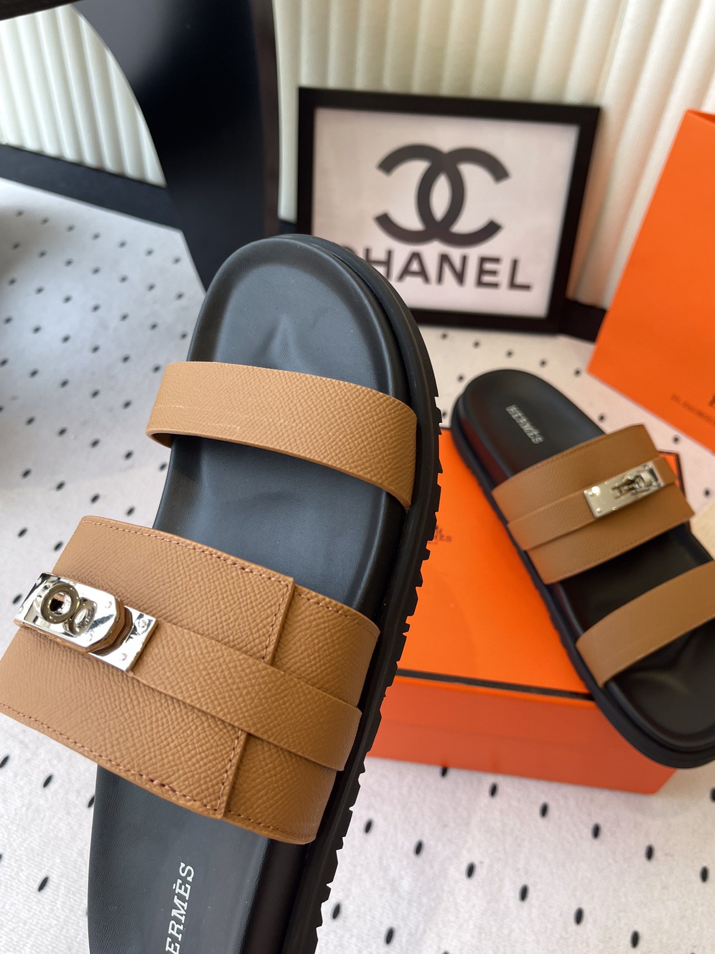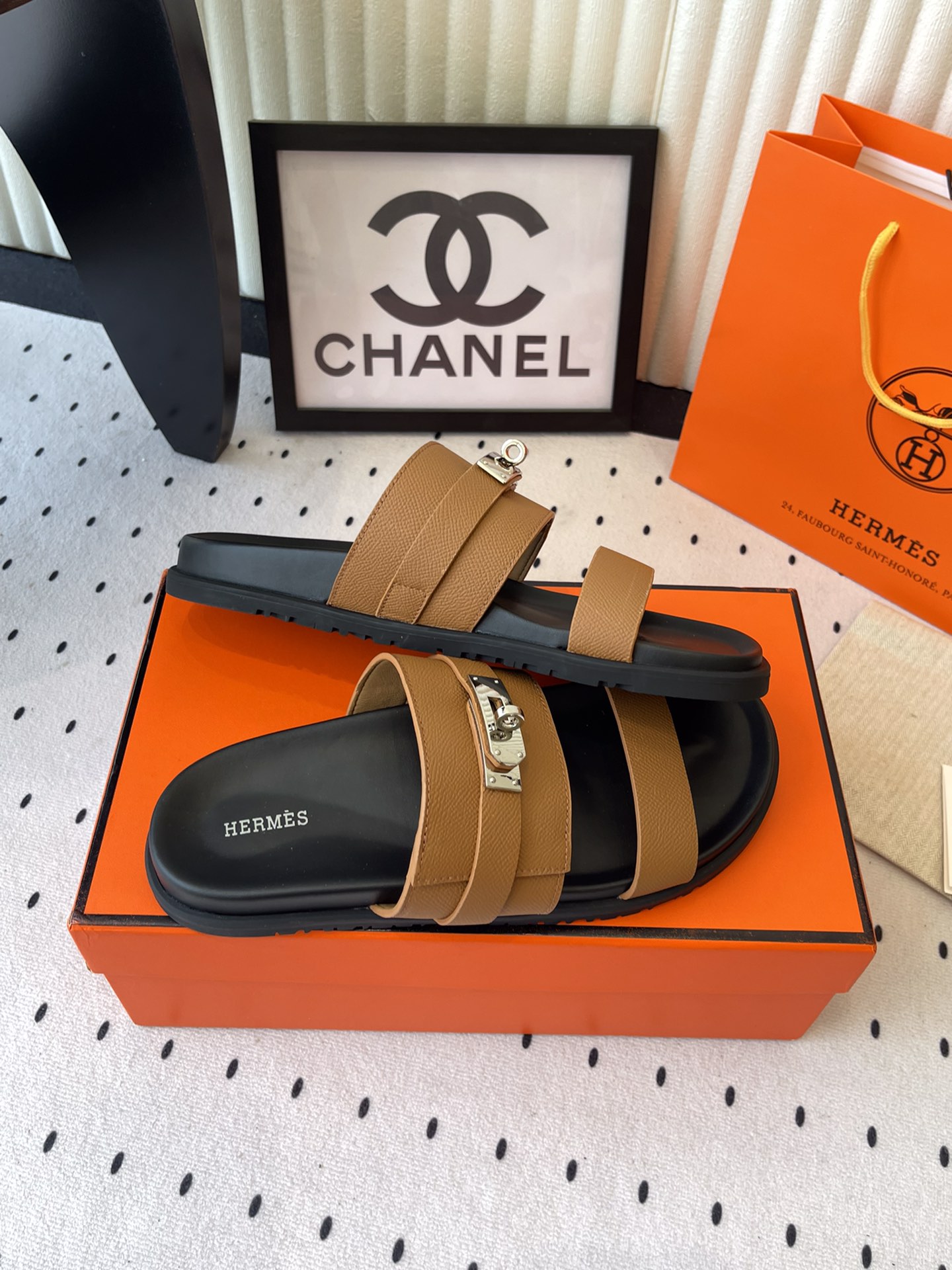 这款鞋子是AAAAA 1:1 质量 (非常棒). 使用了和原版一模一样的材料. 商标部分也保持了和爱马仕/Hermes一样. 图片拍摄是实物鞋子拍摄, 您所收到的实物保证和我们图片一模一样.
