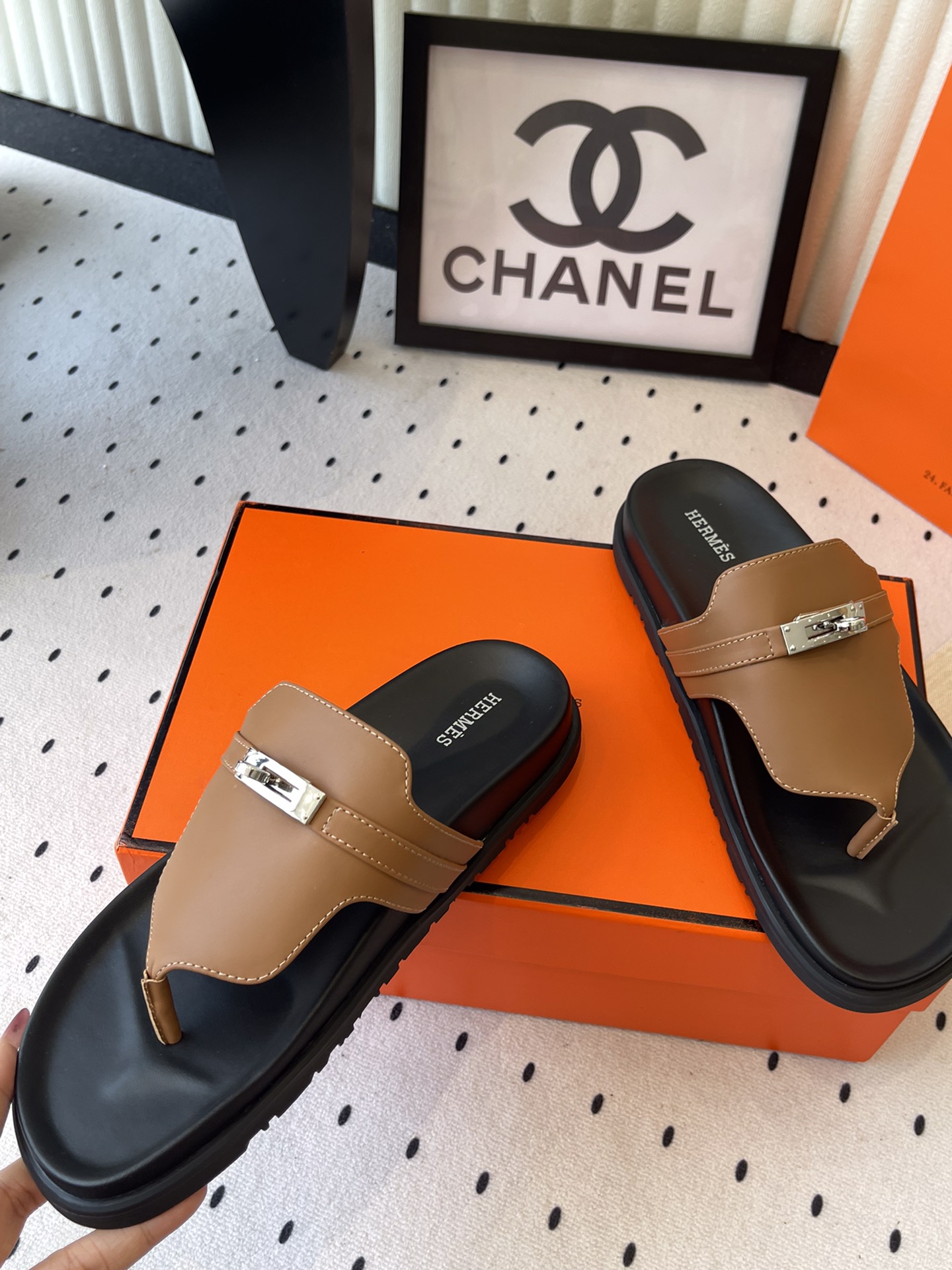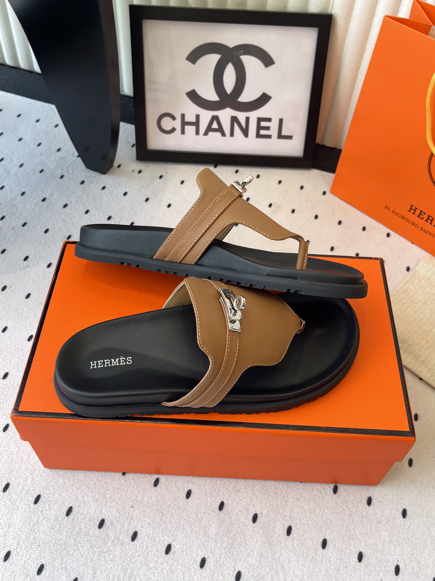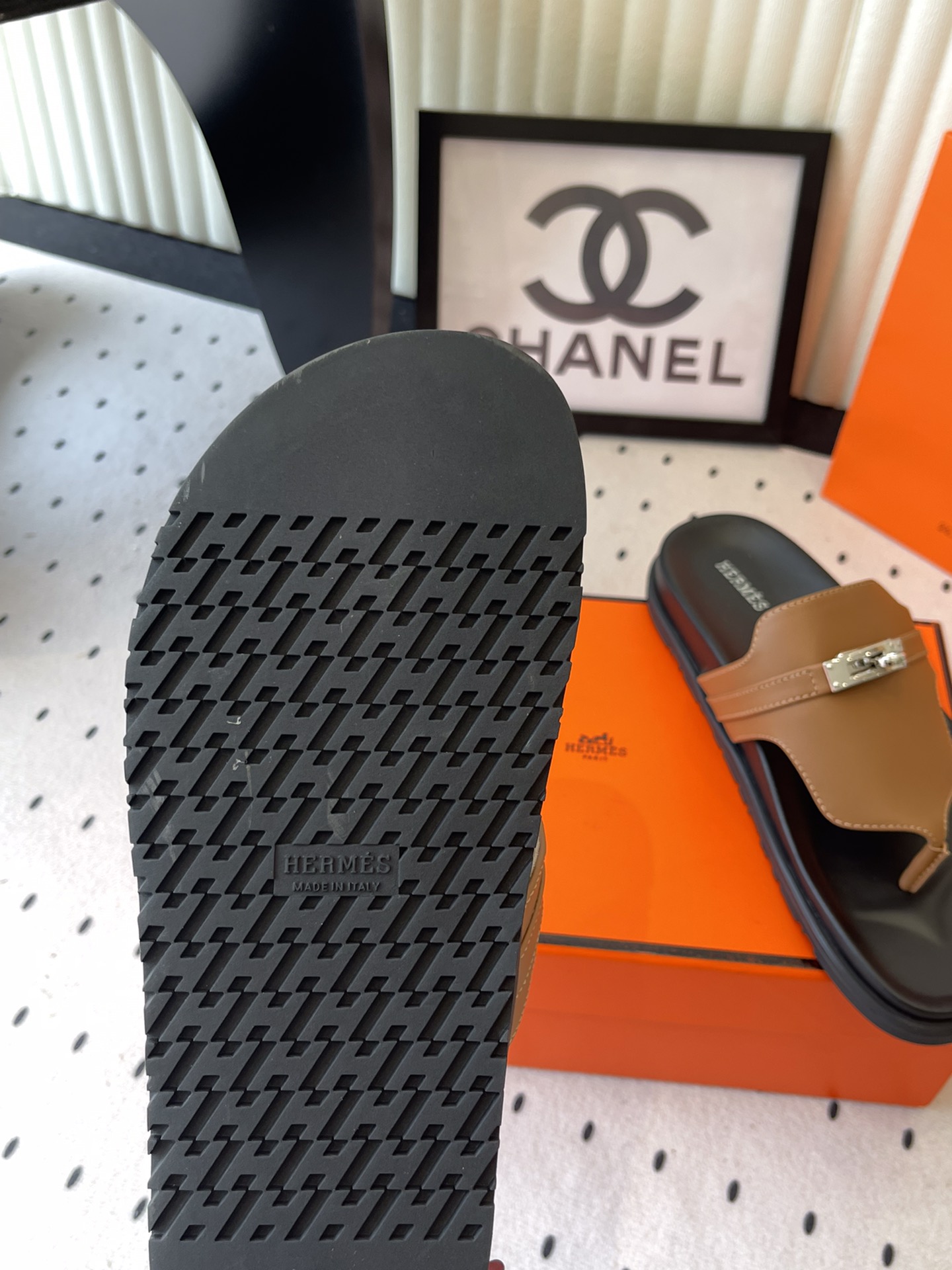 这款鞋子是AAAAA 1:1 质量 (非常棒). 使用了和原版一模一样的材料. 商标部分也保持了和爱马仕/Hermes一样. 图片拍摄是实物鞋子拍摄, 您所收到的实物保证和我们图片一模一样.