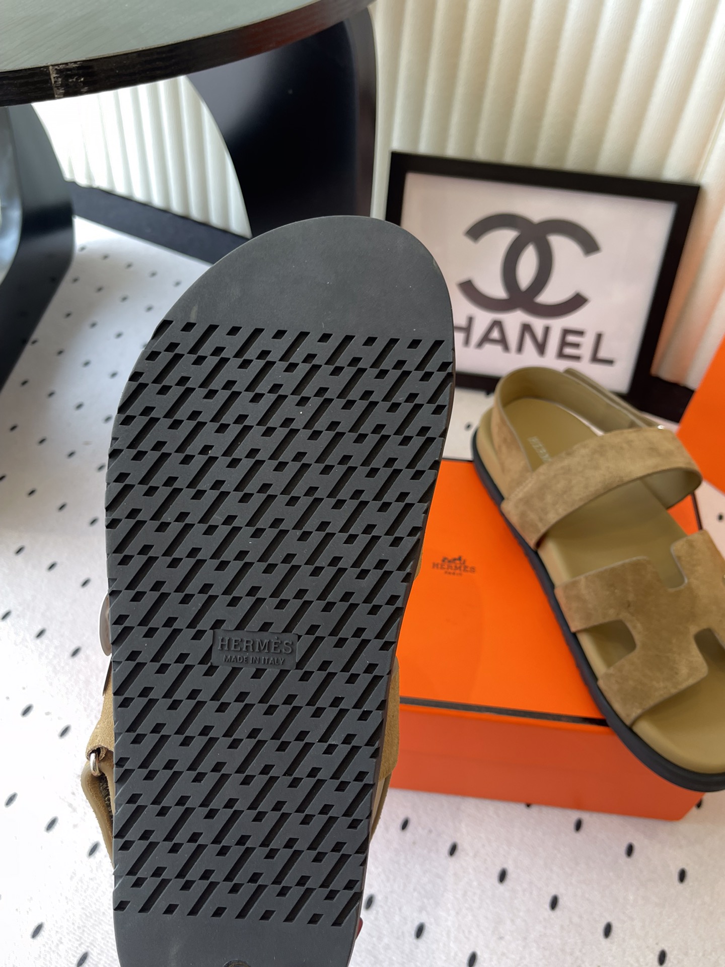 这款鞋子是AAAAA 1:1 质量 (非常棒). 使用了和原版一模一样的材料. 商标部分也保持了和爱马仕/Hermes一样. 图片拍摄是实物鞋子拍摄, 您所收到的实物保证和我们图片一模一样.