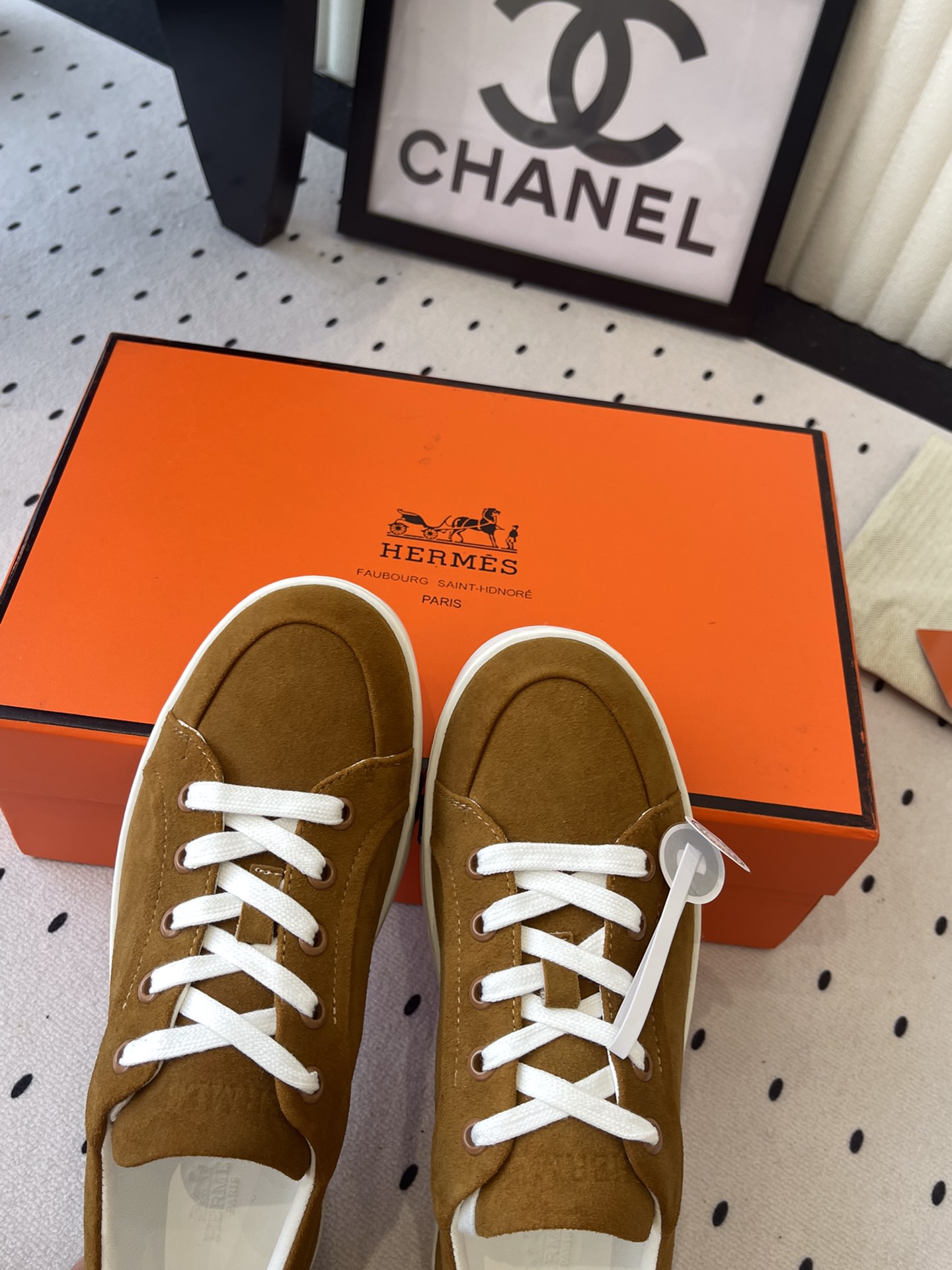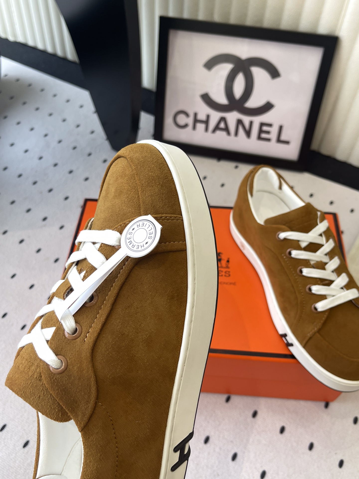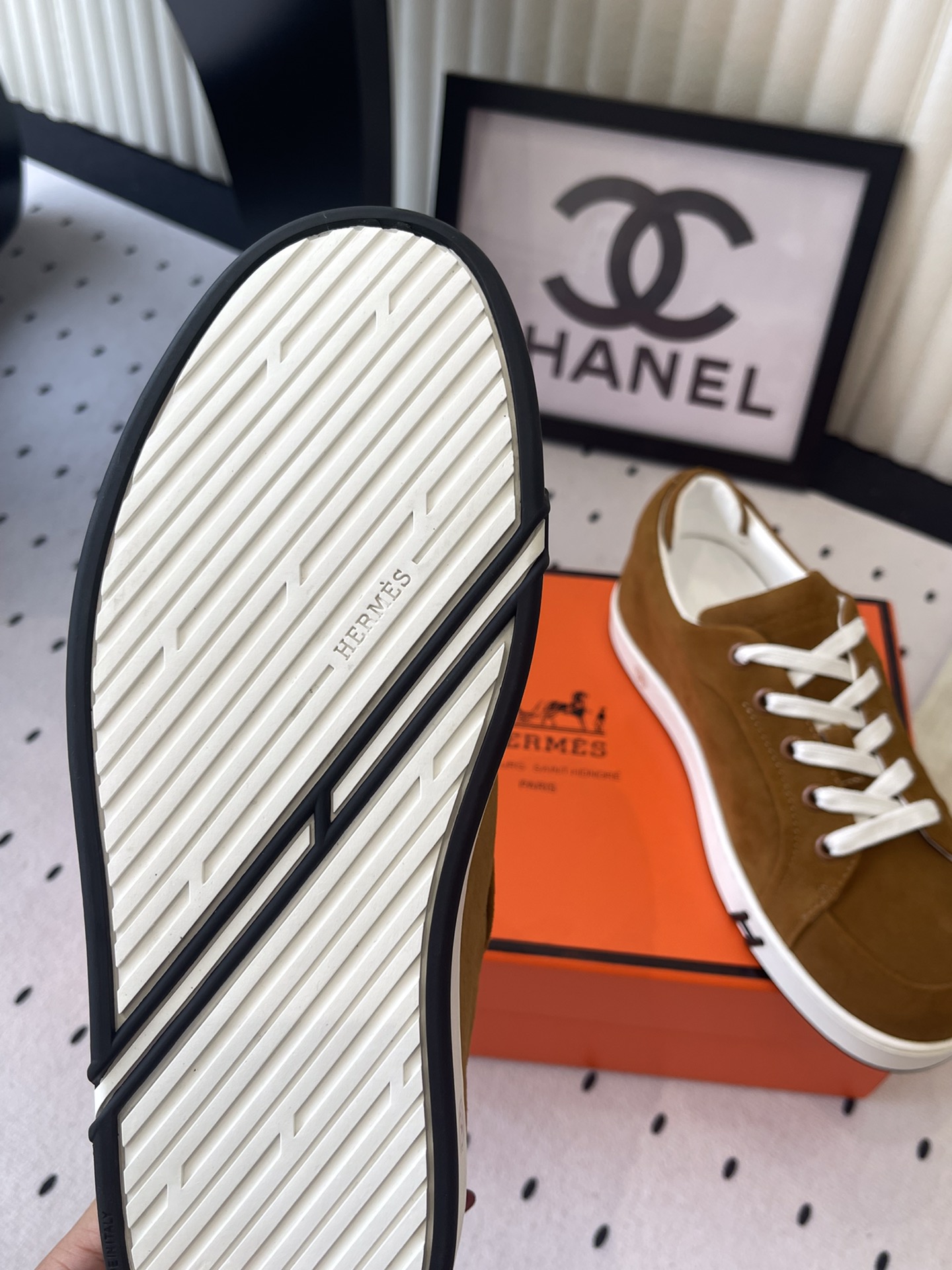 这款鞋子是AAAAA 1:1 质量 (非常棒). 使用了和原版一模一样的材料. 商标部分也保持了和爱马仕/Hermes一样. 图片拍摄是实物鞋子拍摄, 您所收到的实物保证和我们图片一模一样.