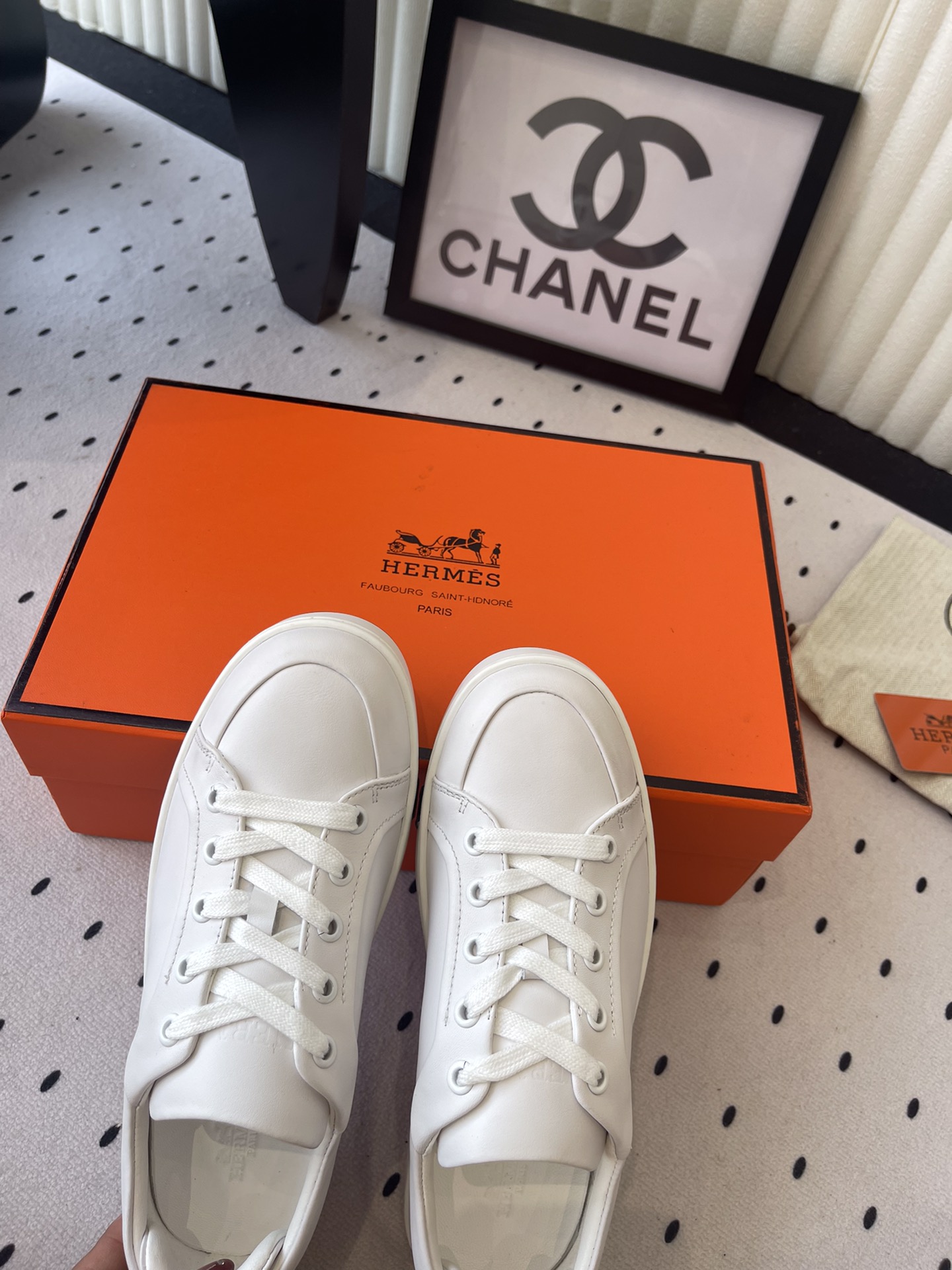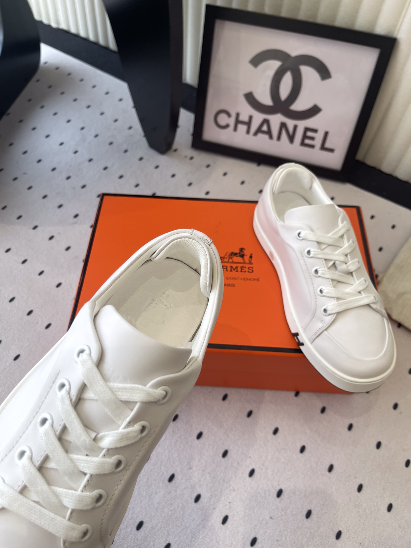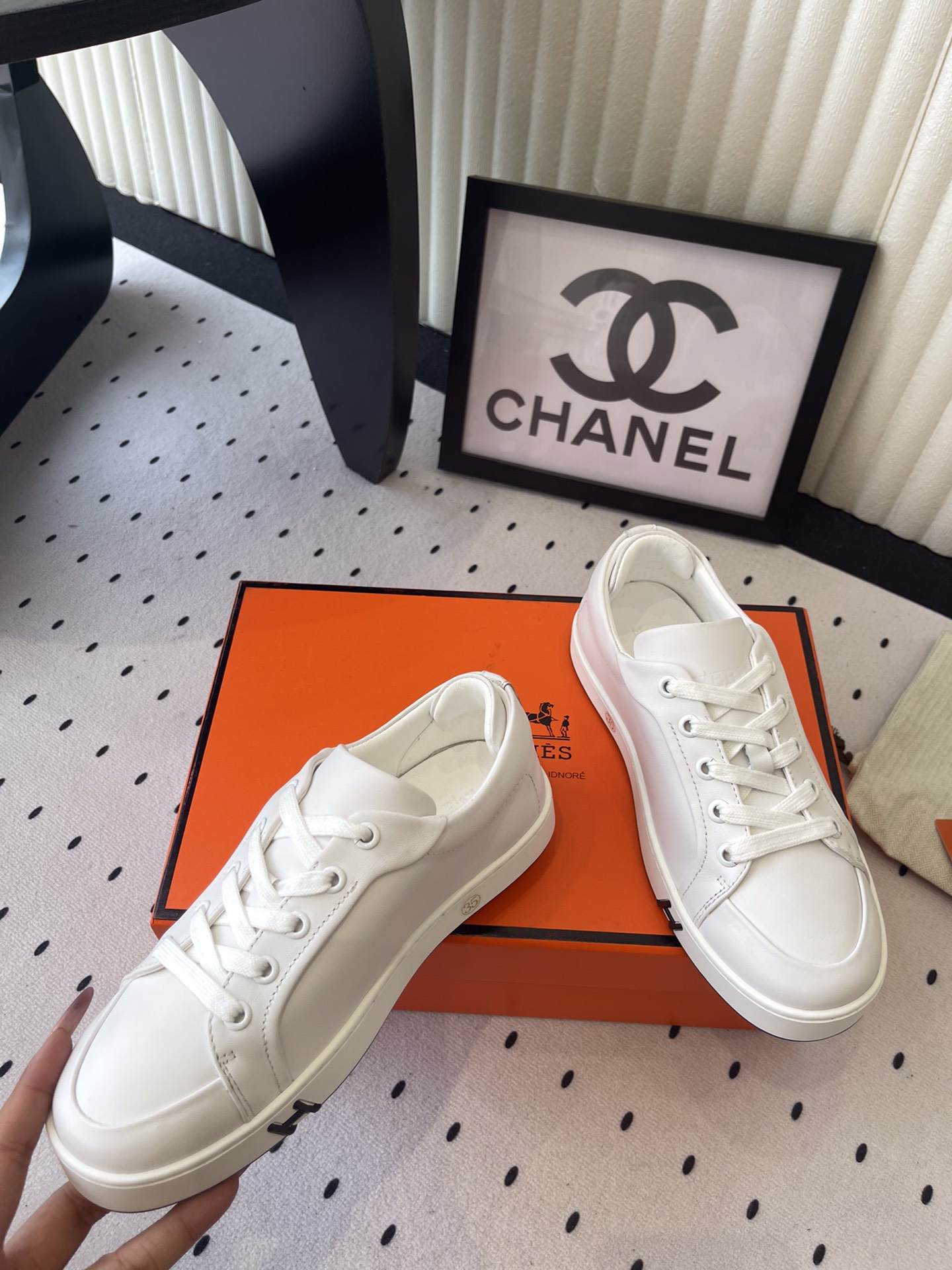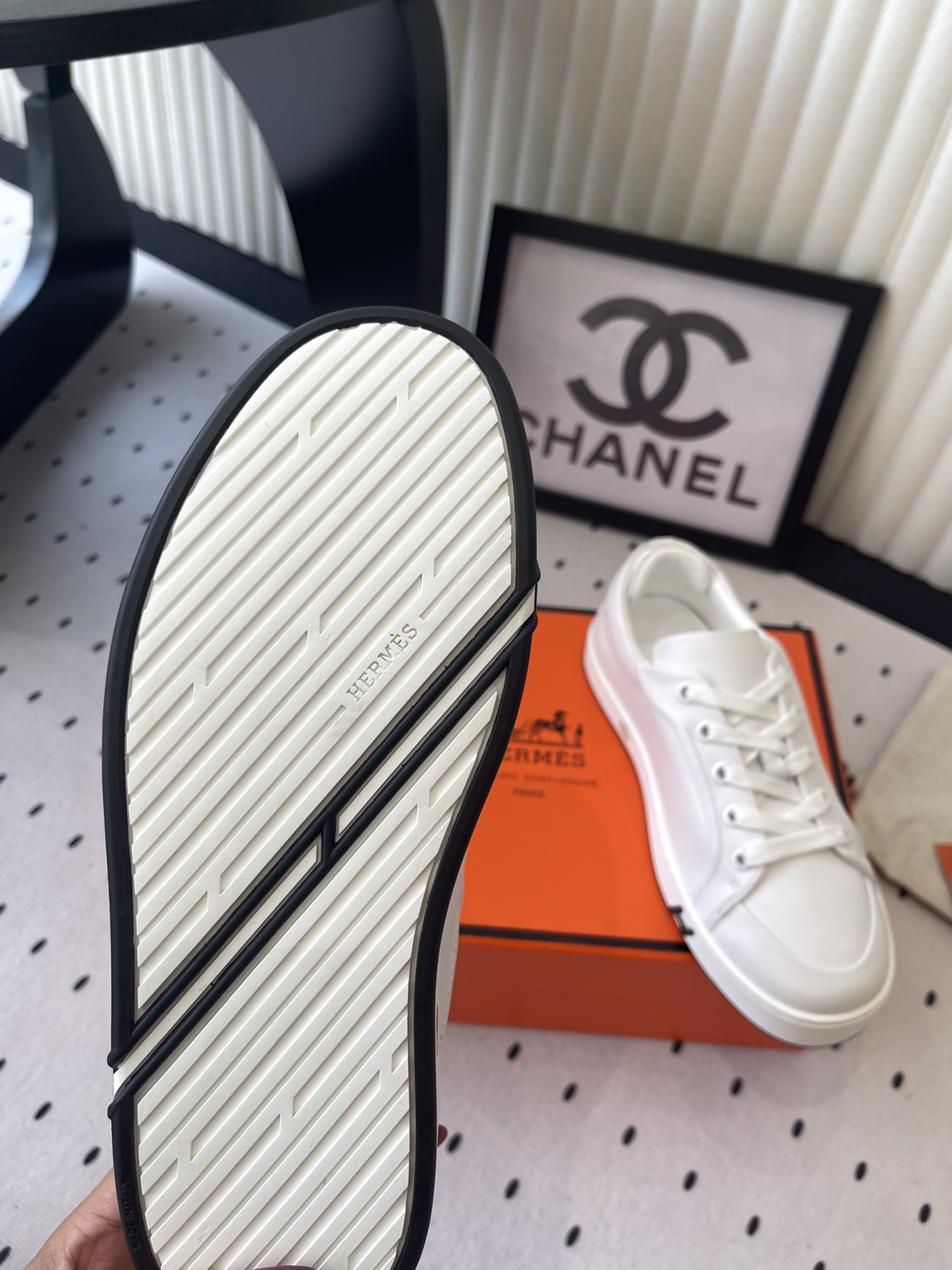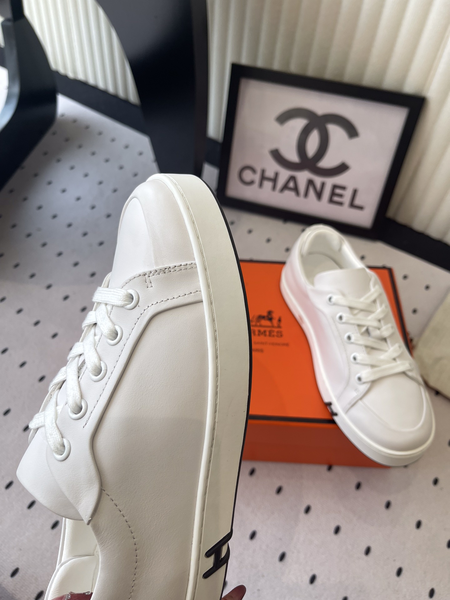 这款鞋子是AAAAA 1:1 质量 (非常棒). 使用了和原版一模一样的材料. 商标部分也保持了和爱马仕/Hermes一样. 图片拍摄是实物鞋子拍摄, 您所收到的实物保证和我们图片一模一样.