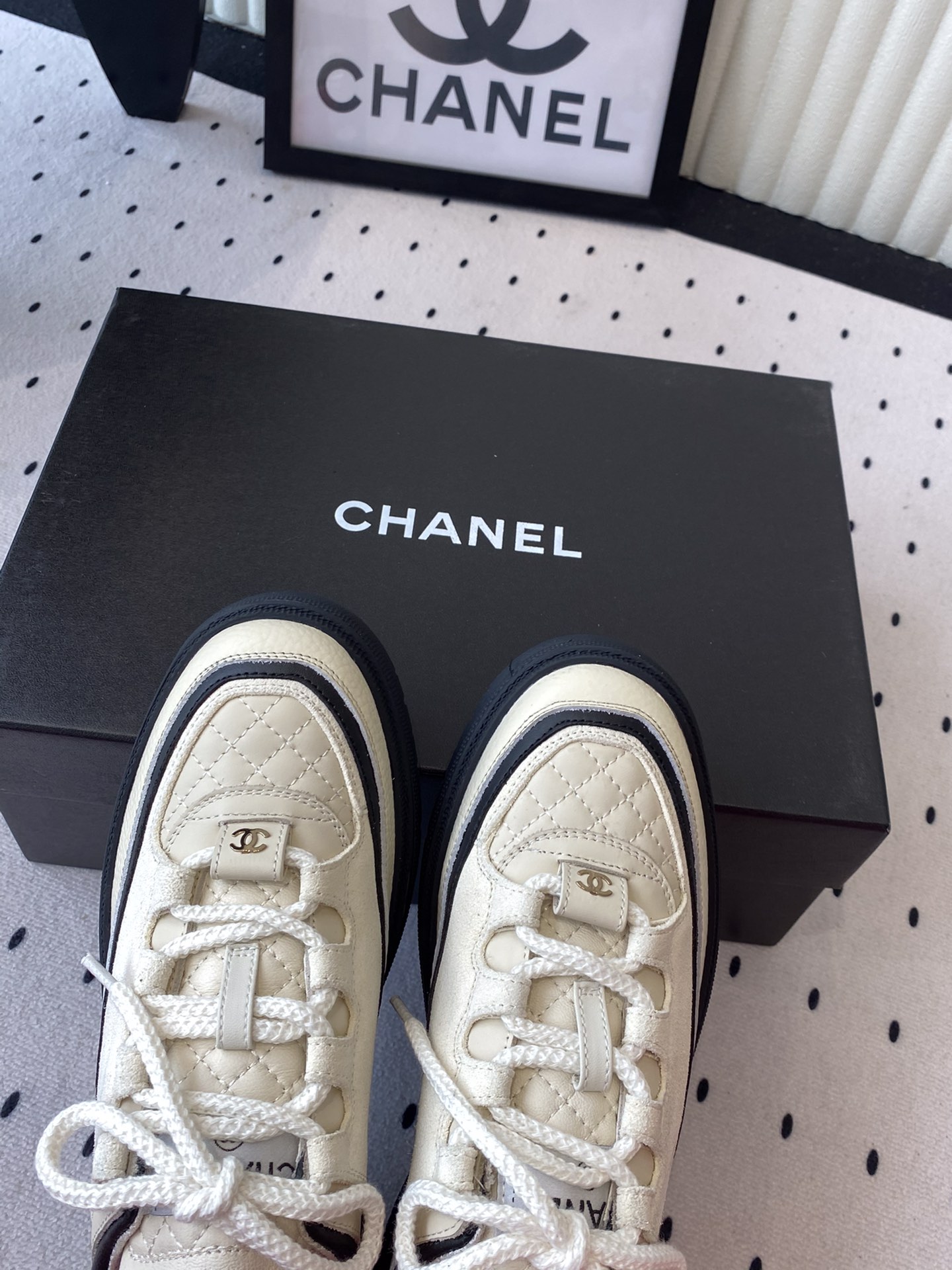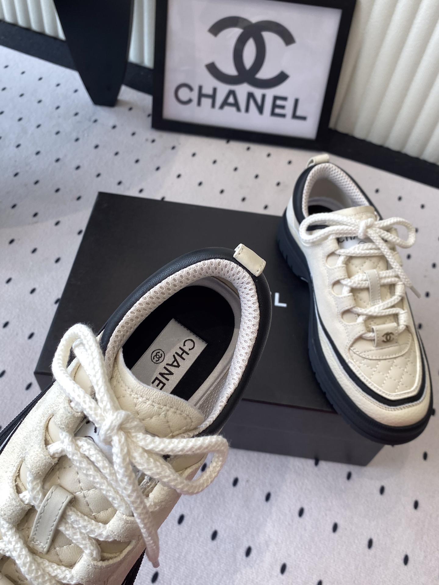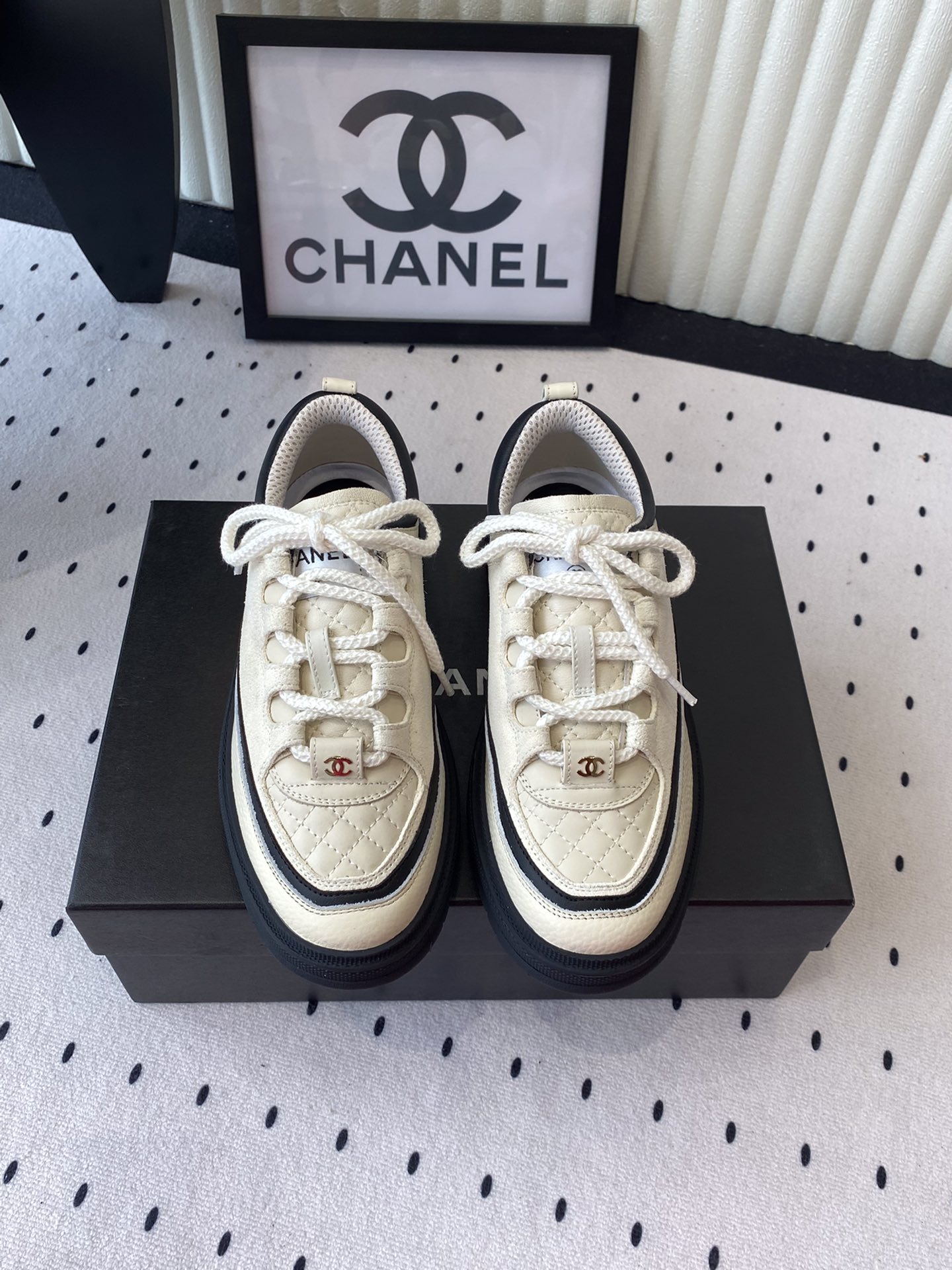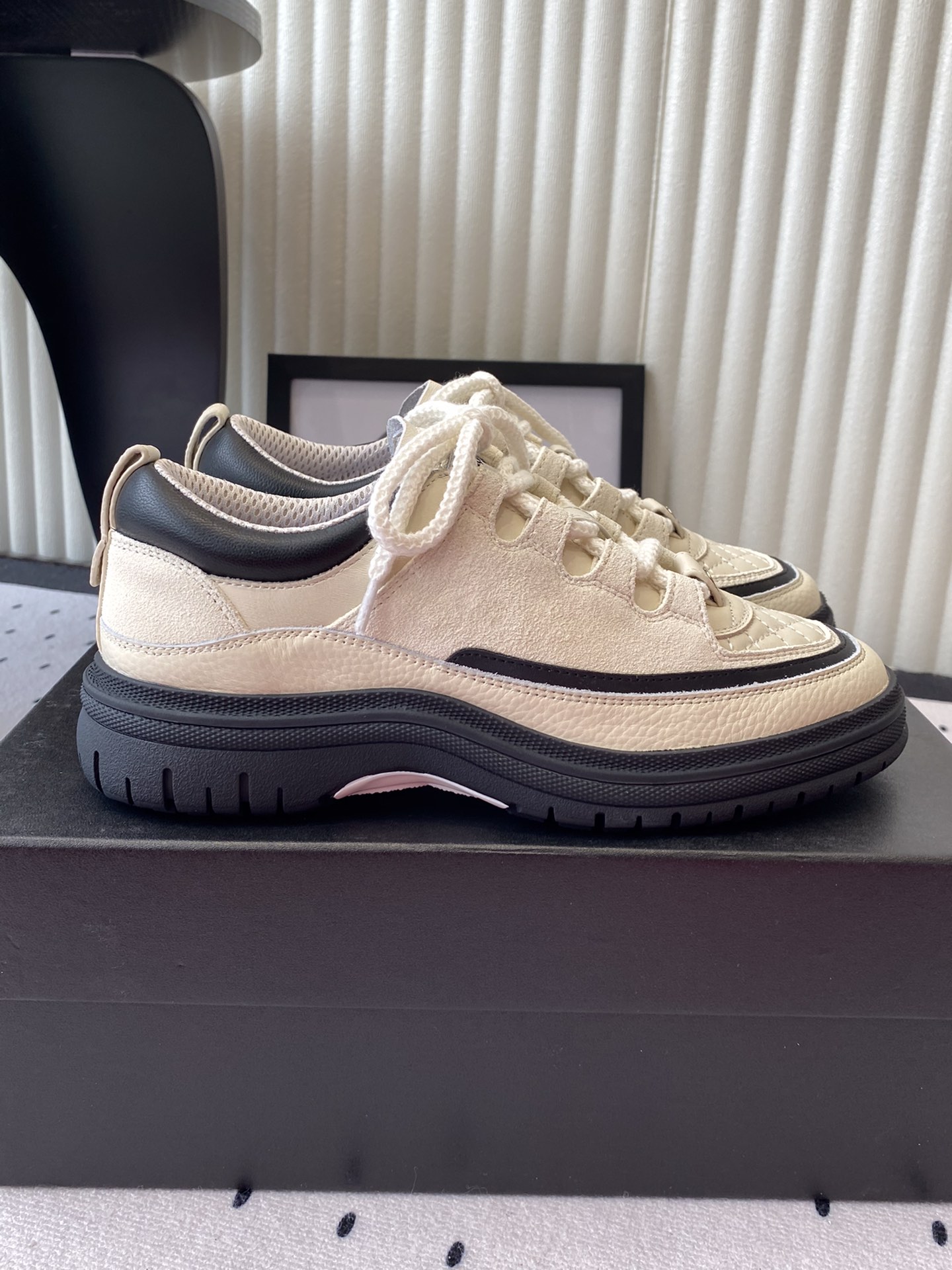 这款鞋子是AAAAA 1:1 质量 (非常棒). 使用了和原版一模一样的材料. 商标部分也保持了和香奈儿/Chanel一样. 图片拍摄是实物鞋子拍摄, 您所收到的实物保证和我们图片一模一样.
