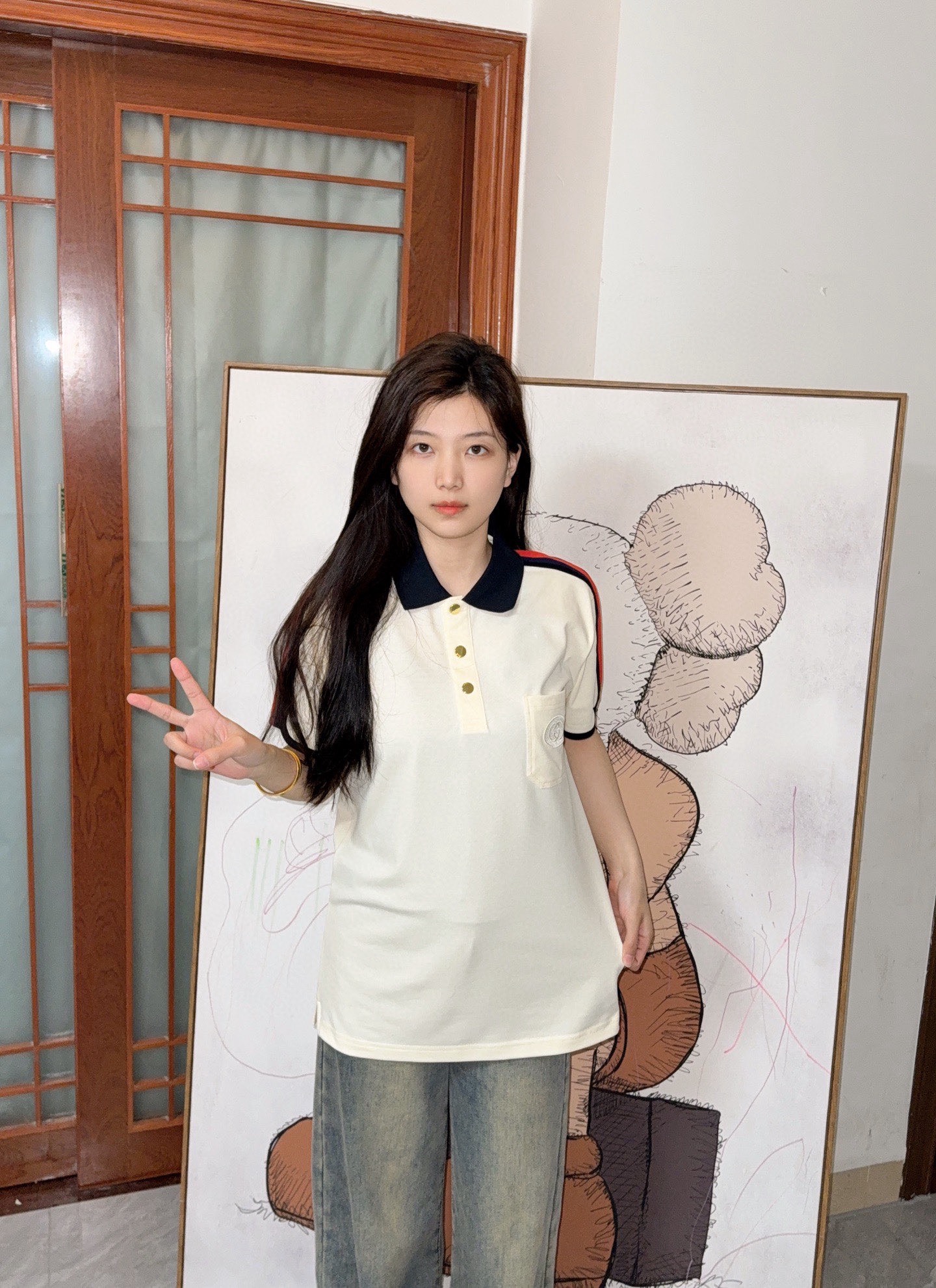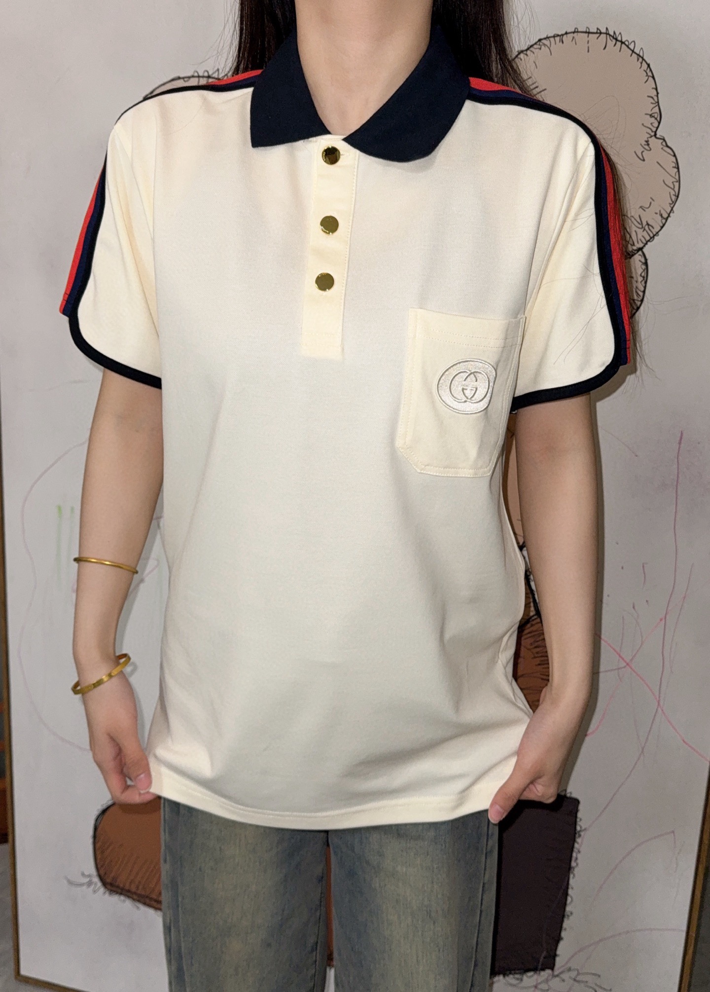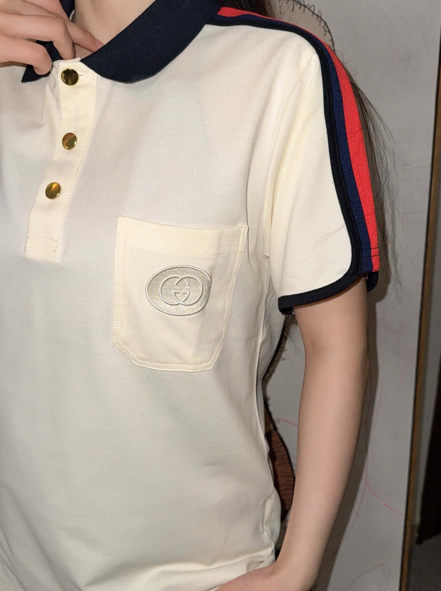 这款衣服是AAAAA 1:1 质量 (非常棒). 使用了和原版一模一样的材料. 商标部分也保持了和古奇/Gucci一样. 图片拍摄是实物衣服拍摄, 您所收到的实物保证和我们图片一模一样.