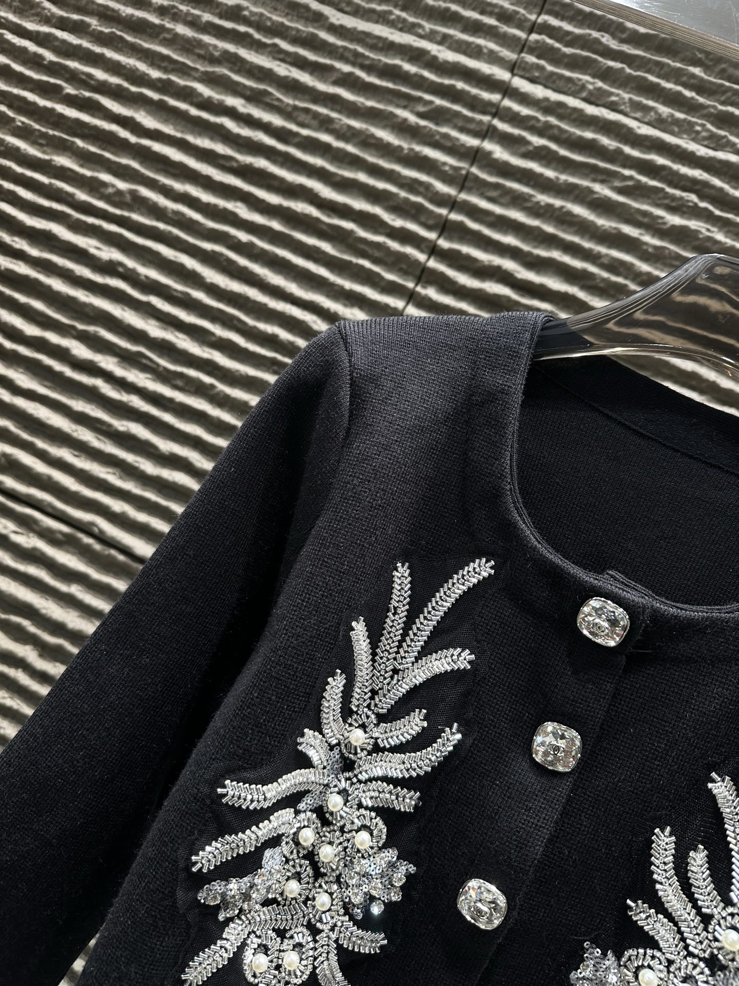 这款衣服是AAAAA 1:1 质量 (非常棒). 使用了和原版一模一样的材料. 商标部分也保持了和香奈儿/Chanel一样. 图片拍摄是实物衣服拍摄, 您所收到的实物保证和我们图片一模一样.