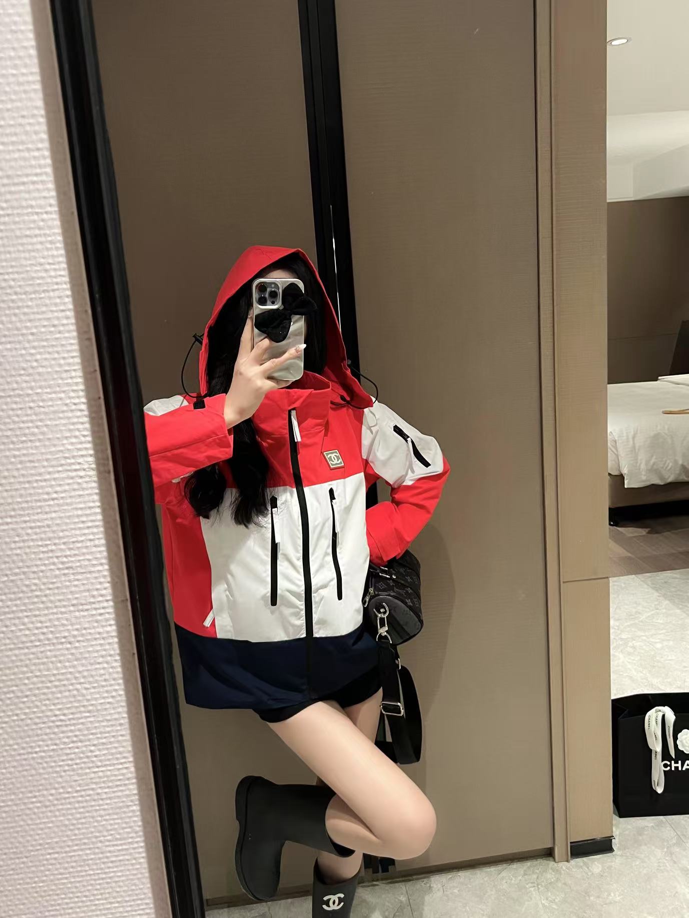 这款衣服是AAAAA 1:1 质量 (非常棒). 使用了和原版一模一样的材料. 商标部分也保持了和香奈儿/Chanel一样. 图片拍摄是实物衣服拍摄, 您所收到的实物保证和我们图片一模一样.
