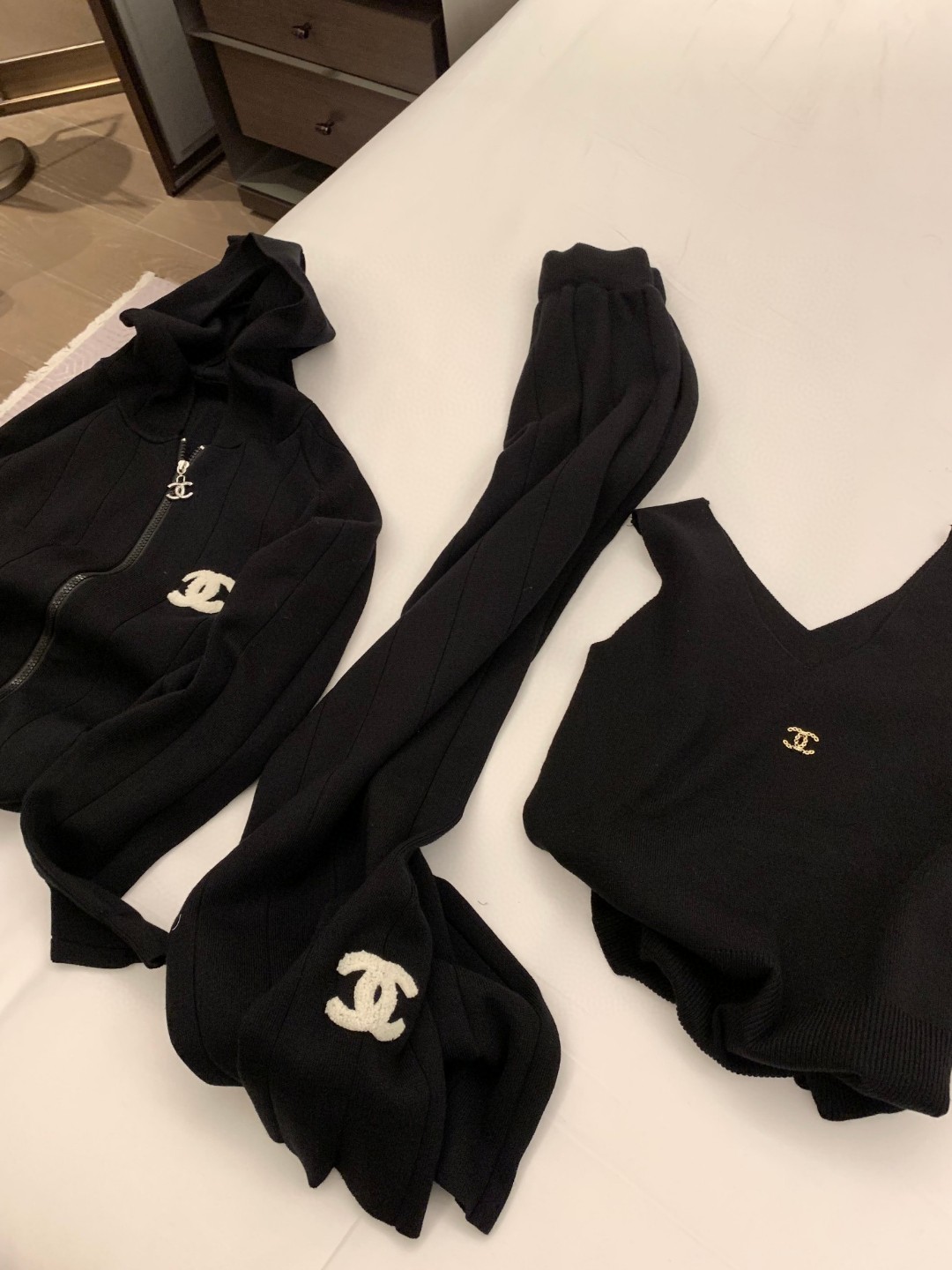 这款衣服是AAAAA 1:1 质量 (非常棒). 使用了和原版一模一样的材料. 商标部分也保持了和香奈儿/Chanel一样. 图片拍摄是实物衣服拍摄, 您所收到的实物保证和我们图片一模一样.