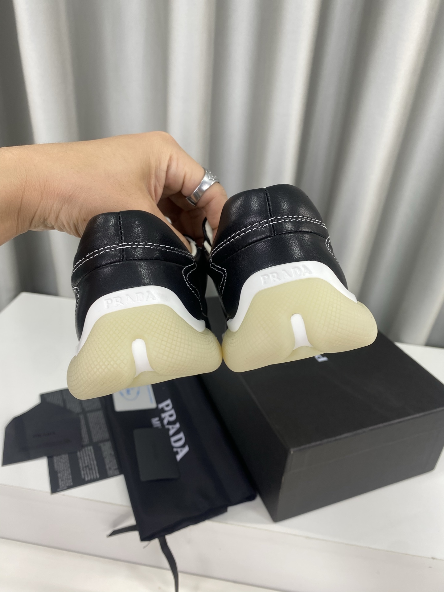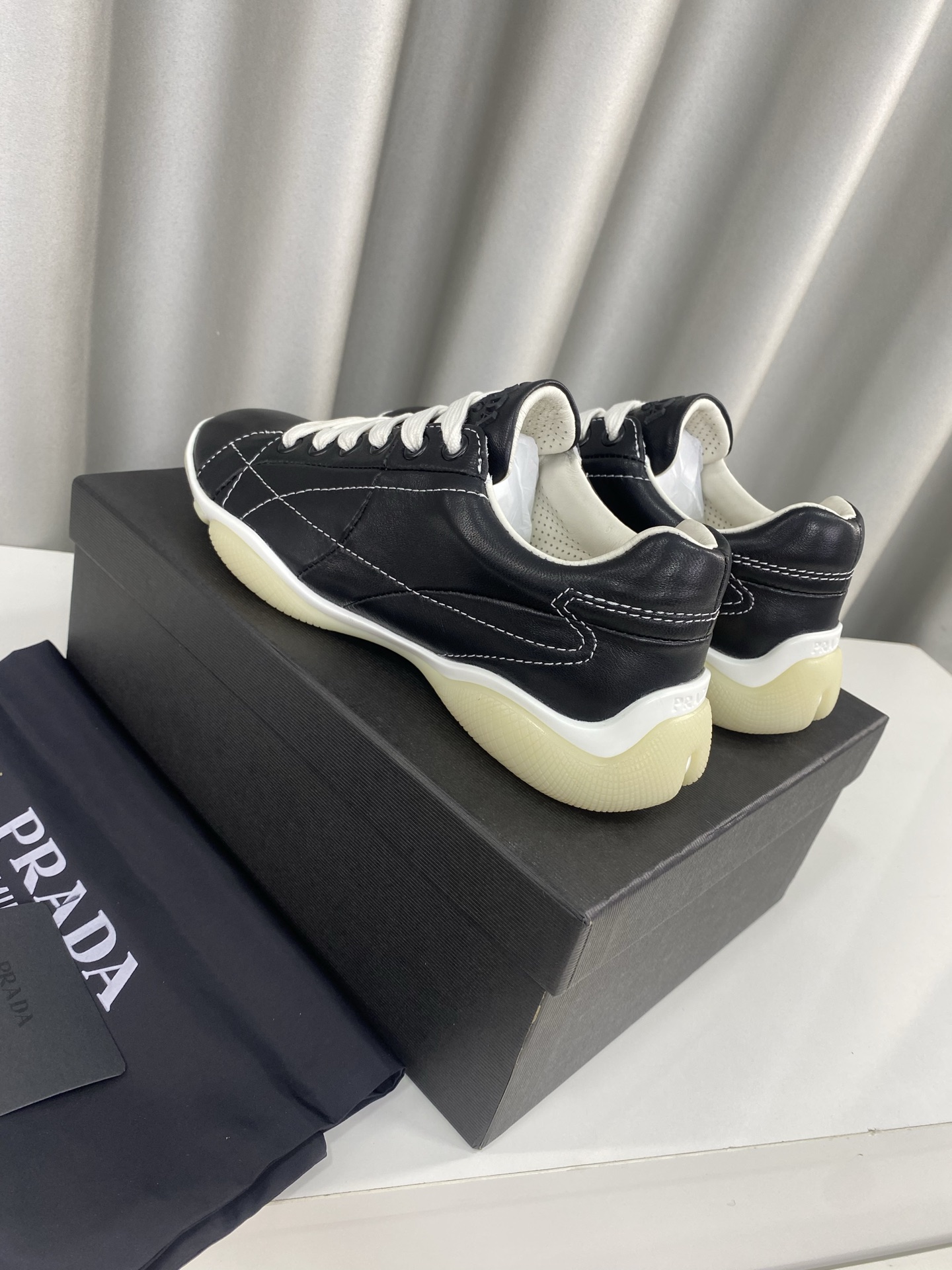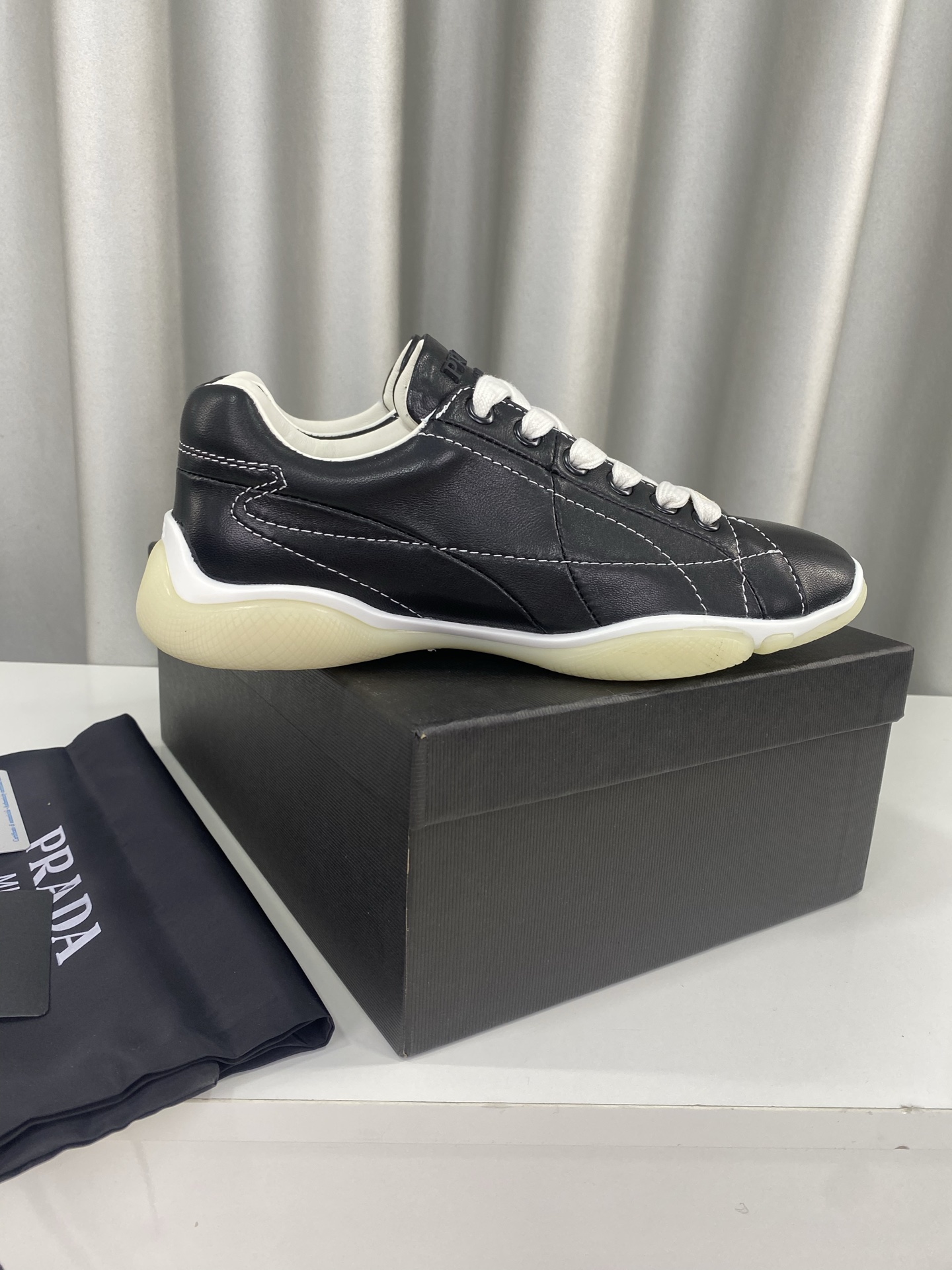 这款鞋子是AAAAA 1:1 质量 (非常棒). 使用了和原版一模一样的材料. 商标部分也保持了和普拉达/Prada一样. 图片拍摄是实物鞋子拍摄, 您所收到的实物保证和我们图片一模一样.