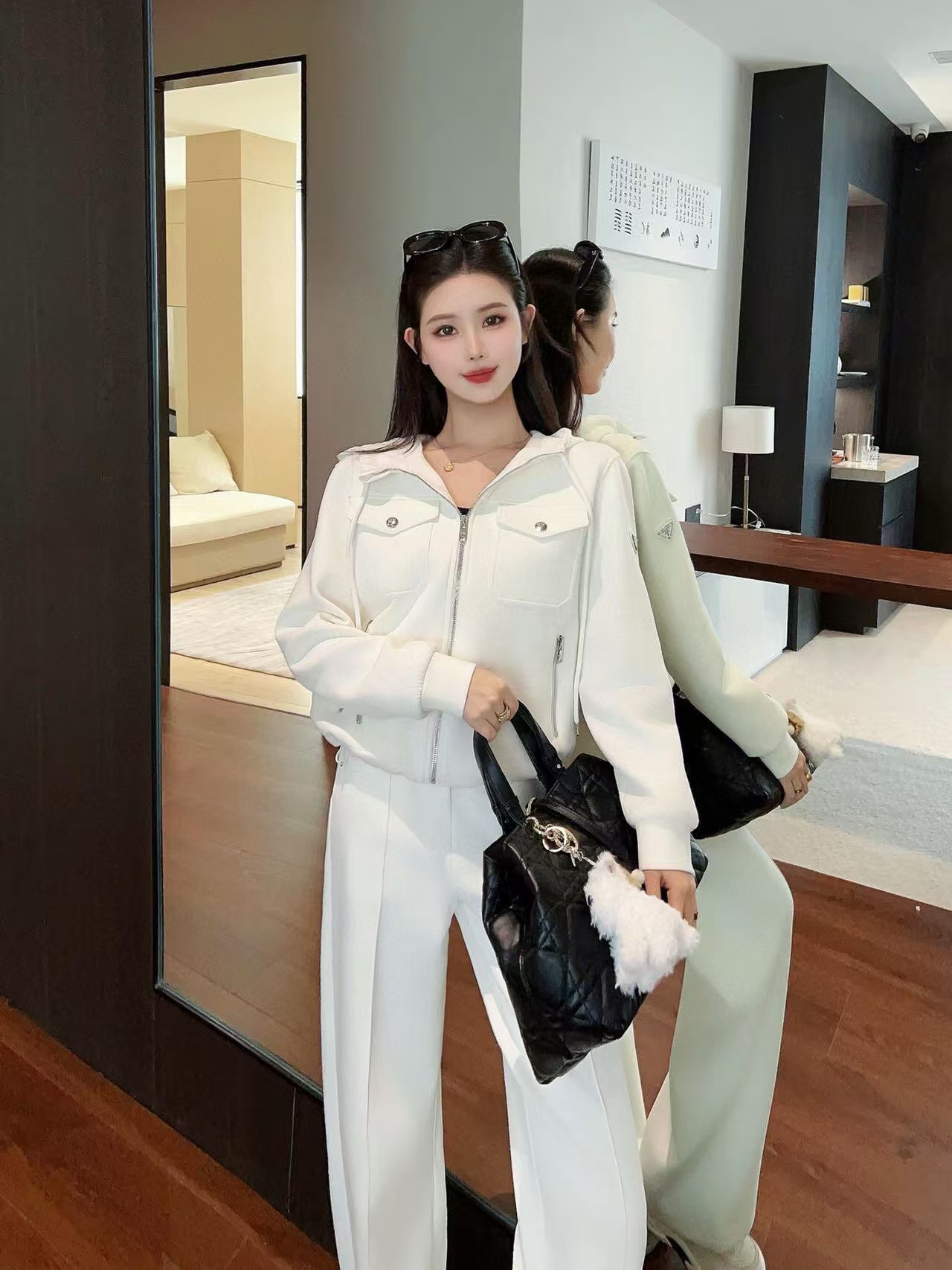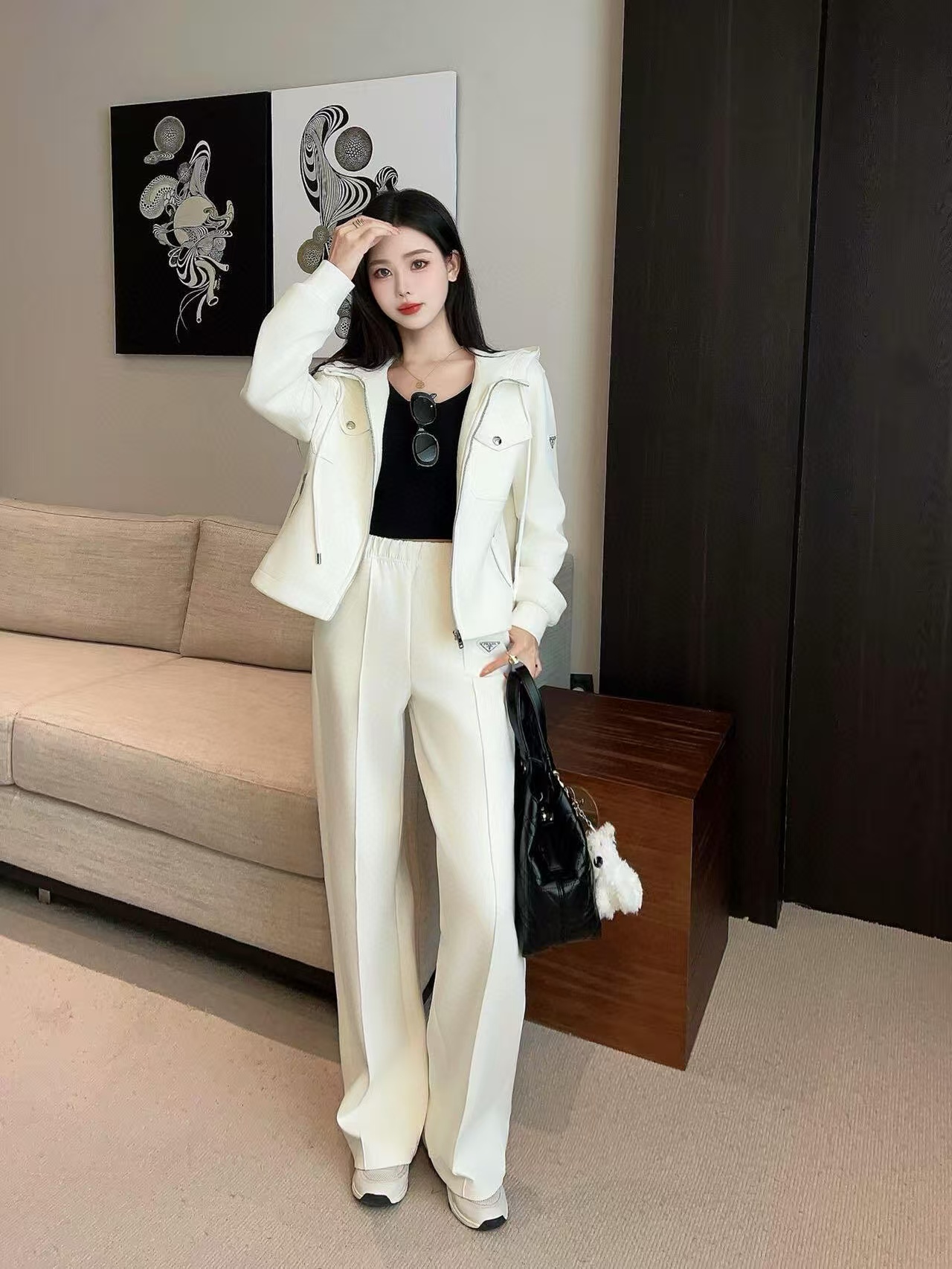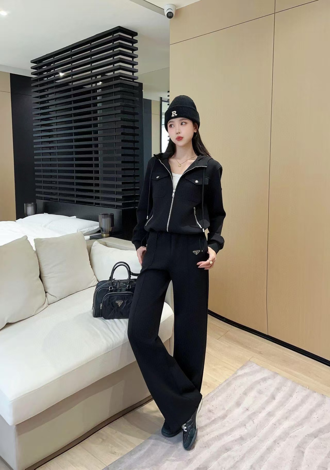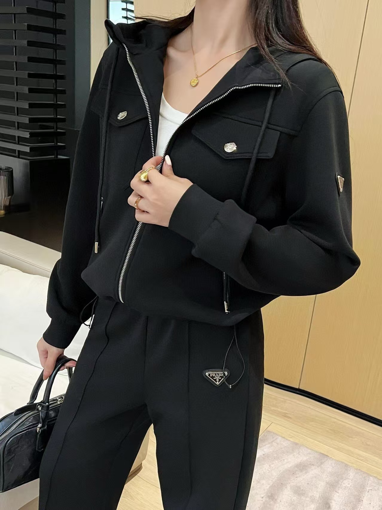 这款衣服是AAAAA 1:1 质量 (非常棒). 使用了和原版一模一样的材料. 商标部分也保持了和普拉达/Prada一样. 图片拍摄是实物衣服拍摄, 您所收到的实物保证和我们图片一模一样.