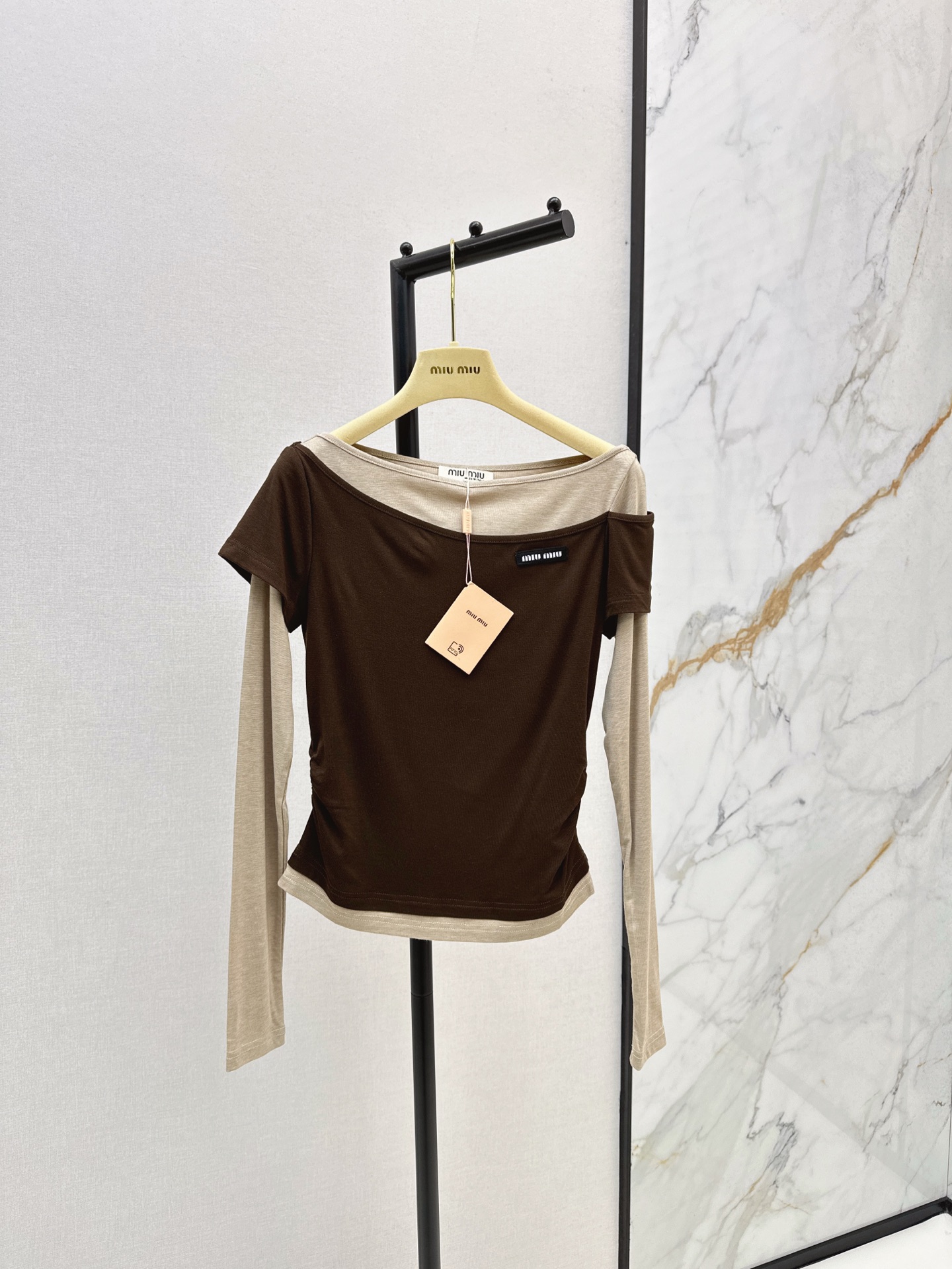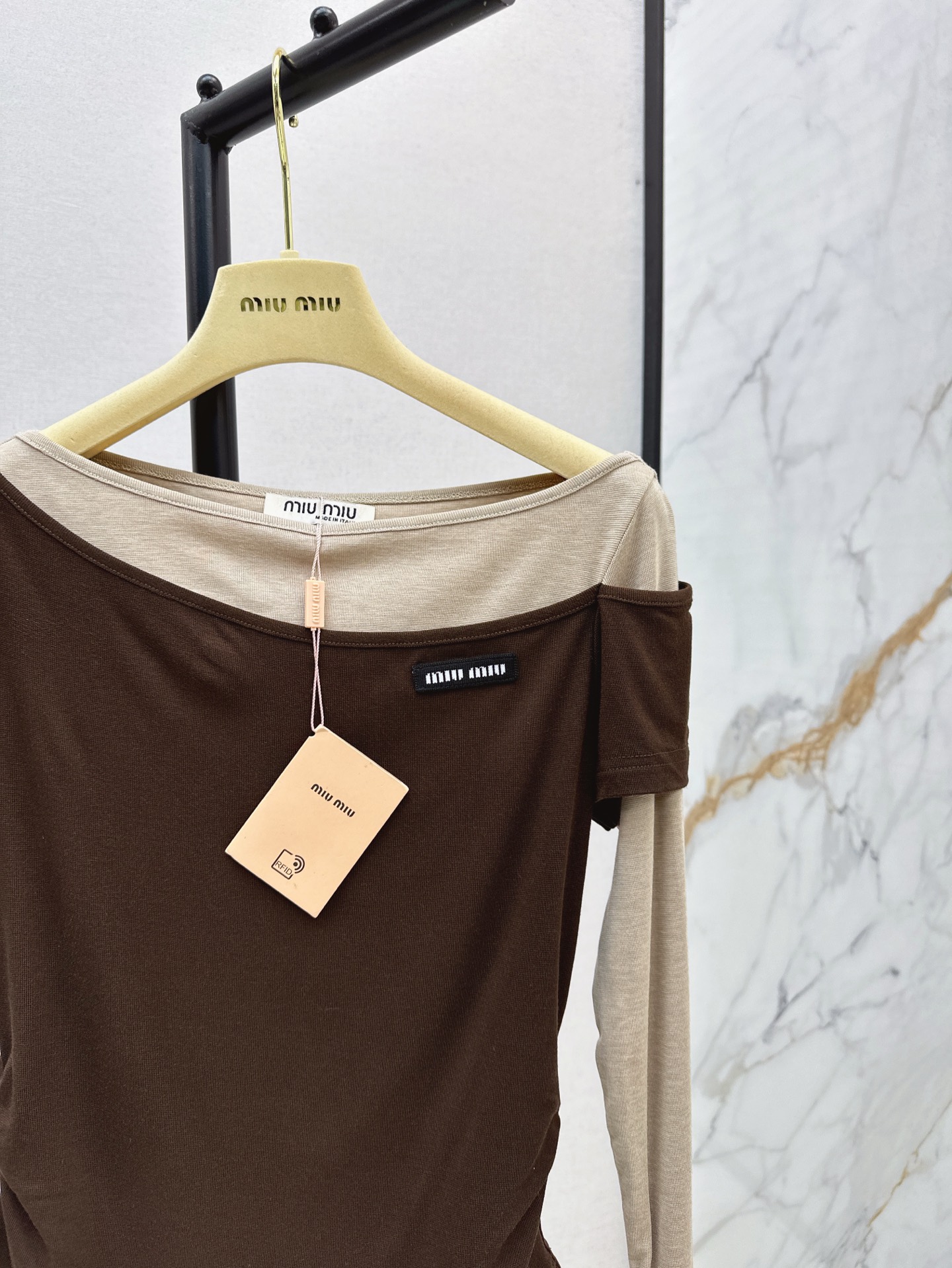 这款衣服是AAAAA 1:1 质量 (非常棒). 使用了和原版一模一样的材料. 商标部分也保持了和缪缪/Miu Miu一样. 图片拍摄是实物衣服拍摄, 您所收到的实物保证和我们图片一模一样.