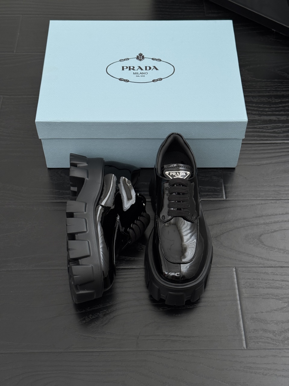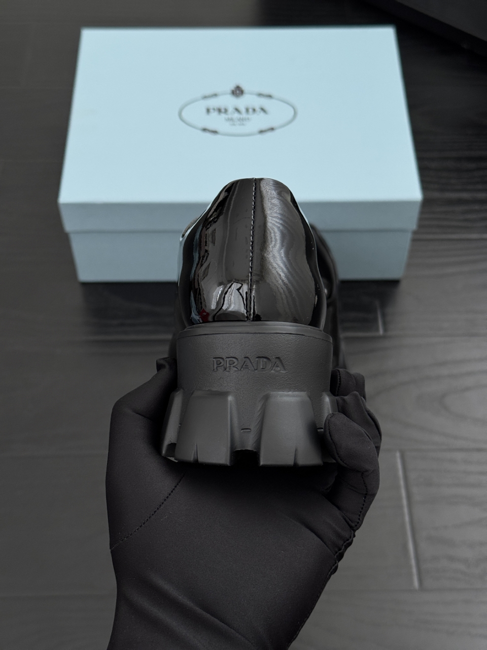 这款鞋子是AAAAA 1:1 质量 (非常棒). 使用了和原版一模一样的材料. 商标部分也保持了和普拉达/Prada一样. 图片拍摄是实物鞋子拍摄, 您所收到的实物保证和我们图片一模一样.