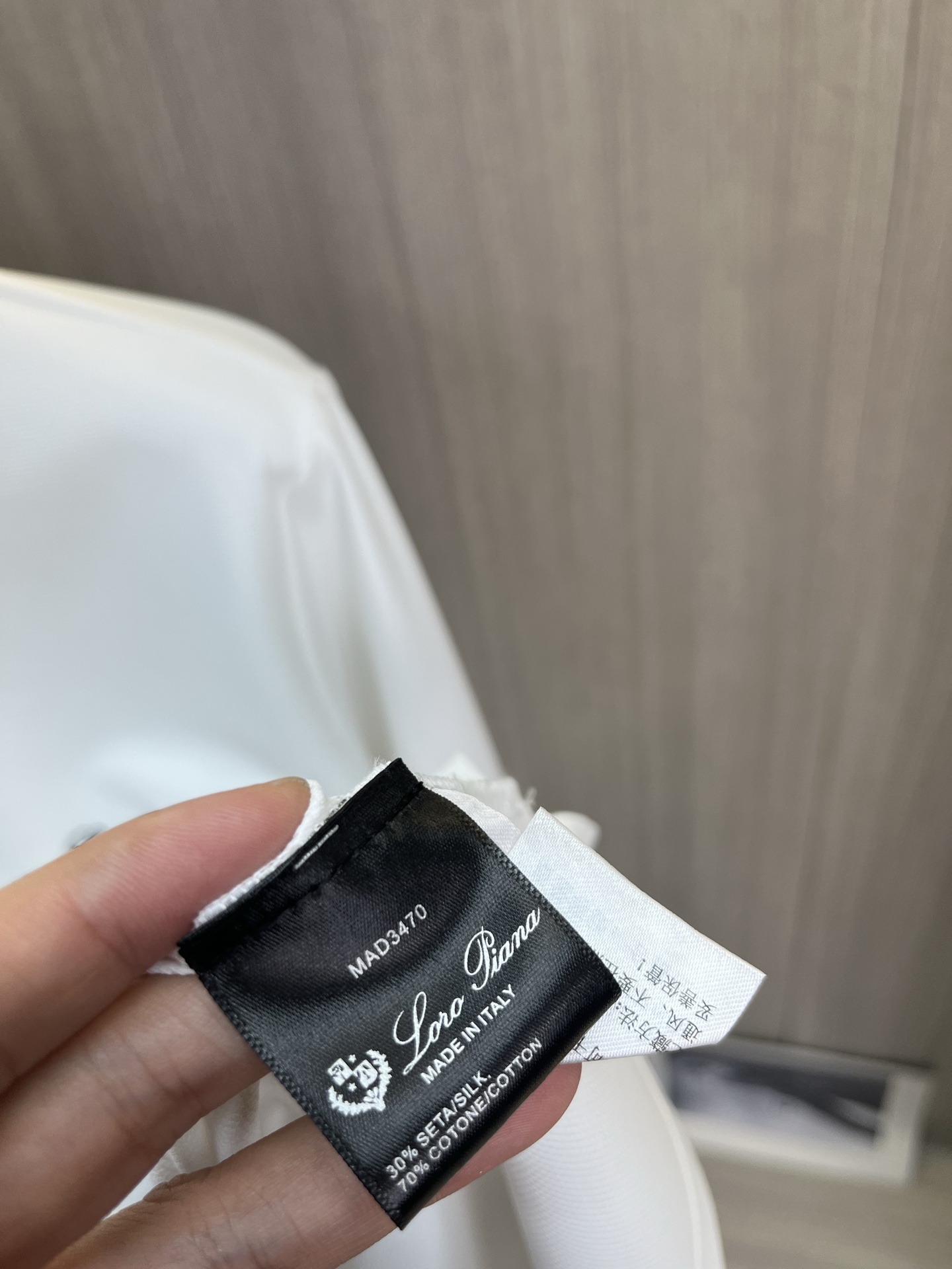 这款衣服是AAAAA 1:1 质量 (非常棒). 使用了和原版一模一样的材料. 商标部分也保持了和洛罗皮亚纳/Loro Piana一样. 图片拍摄是实物衣服拍摄, 您所收到的实物保证和我们图片一模一样.