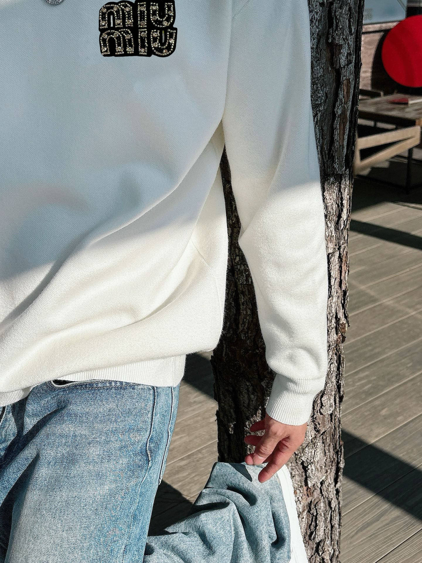 这款衣服是AAAAA 1:1 质量 (非常棒). 使用了和原版一模一样的材料. 商标部分也保持了和缪缪/Miu Miu一样. 图片拍摄是实物衣服拍摄, 您所收到的实物保证和我们图片一模一样.