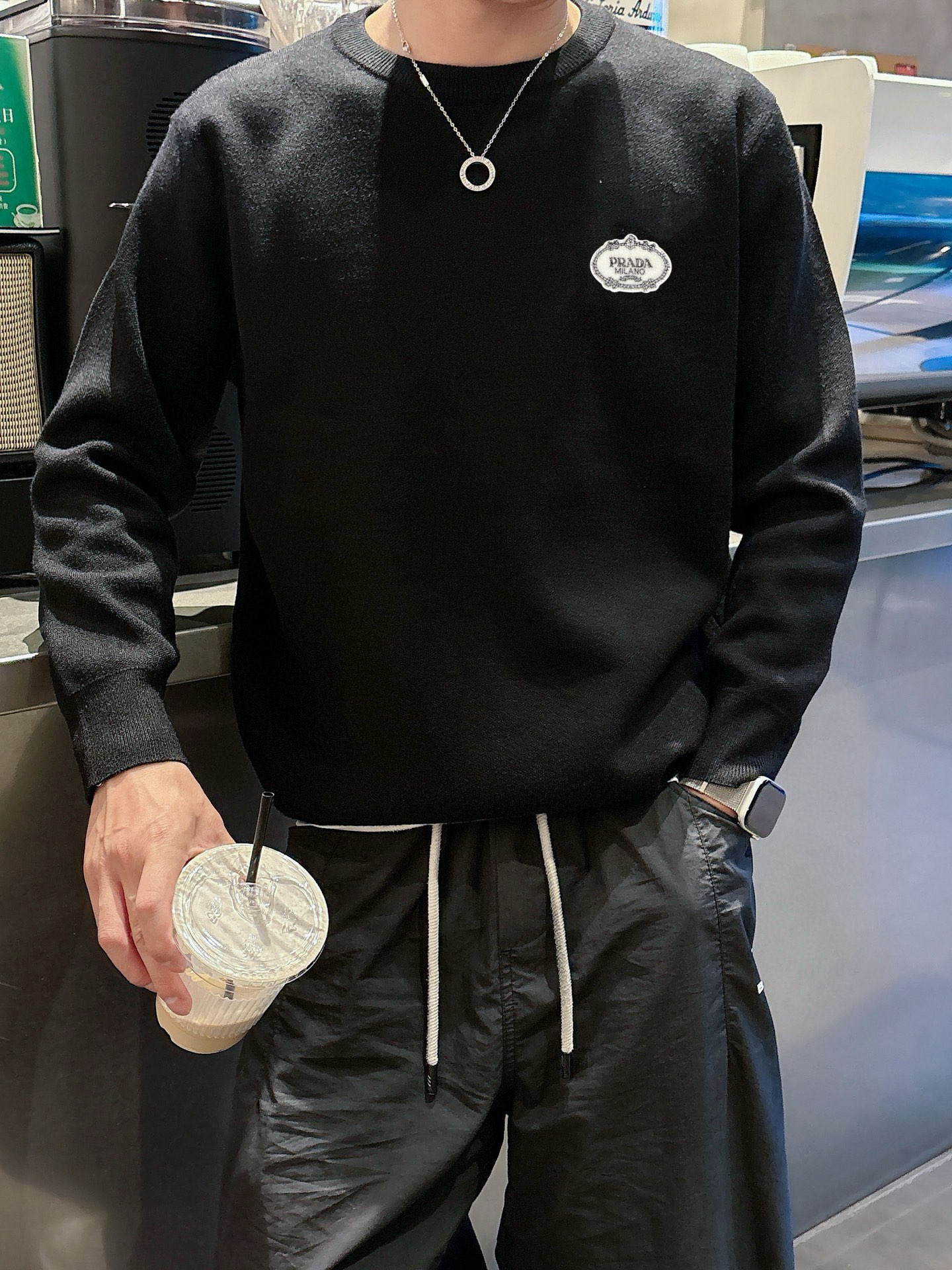 这款衣服是AAAAA 1:1 质量 (非常棒). 使用了和原版一模一样的材料. 商标部分也保持了和普拉达/Prada一样. 图片拍摄是实物衣服拍摄, 您所收到的实物保证和我们图片一模一样.