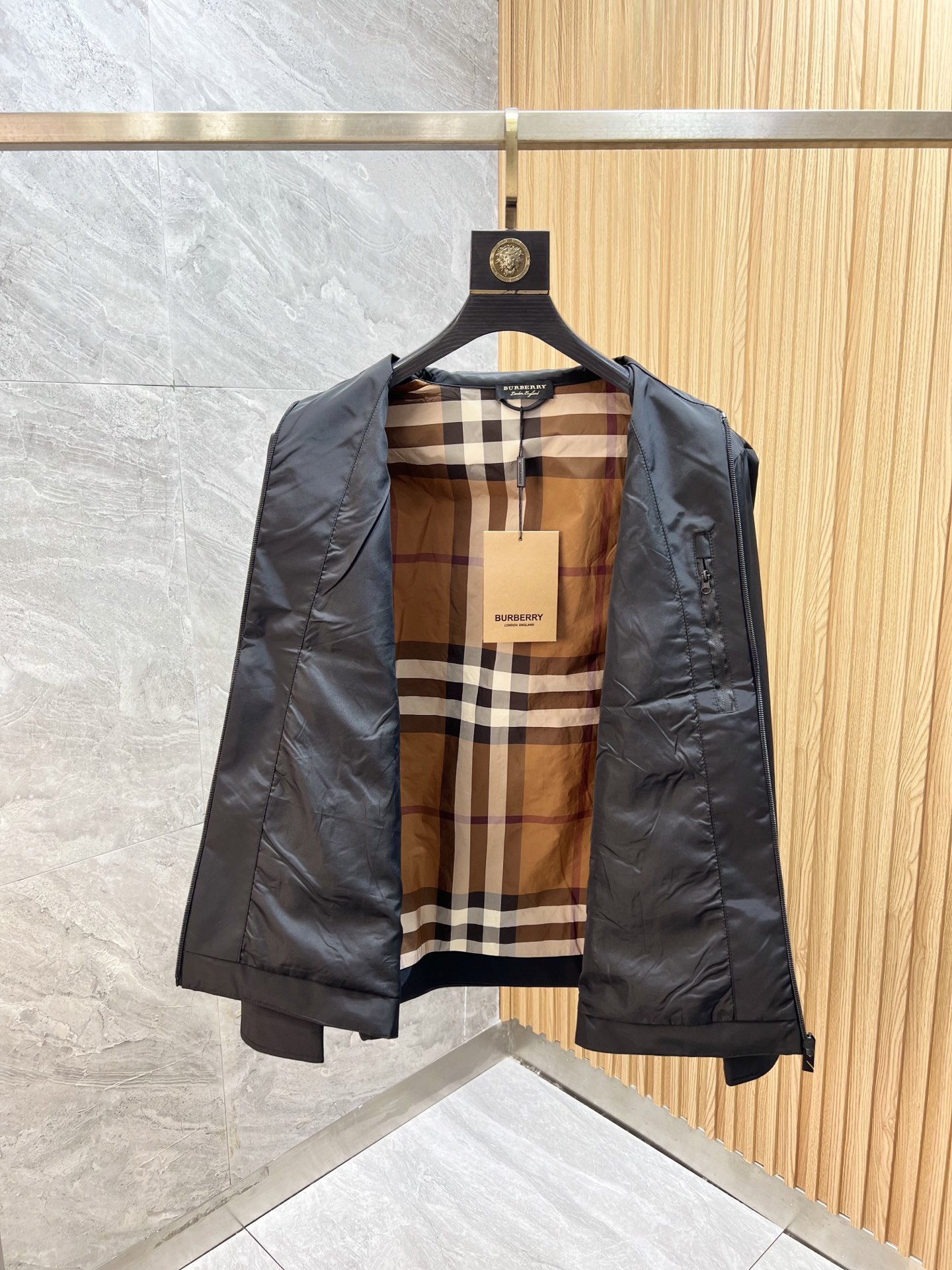 这款衣服是AAAAA 1:1 质量 (非常棒). 使用了和原版一模一样的材料. 商标部分也保持了和巴宝莉/Burberry一样. 图片拍摄是实物衣服拍摄, 您所收到的实物保证和我们图片一模一样.