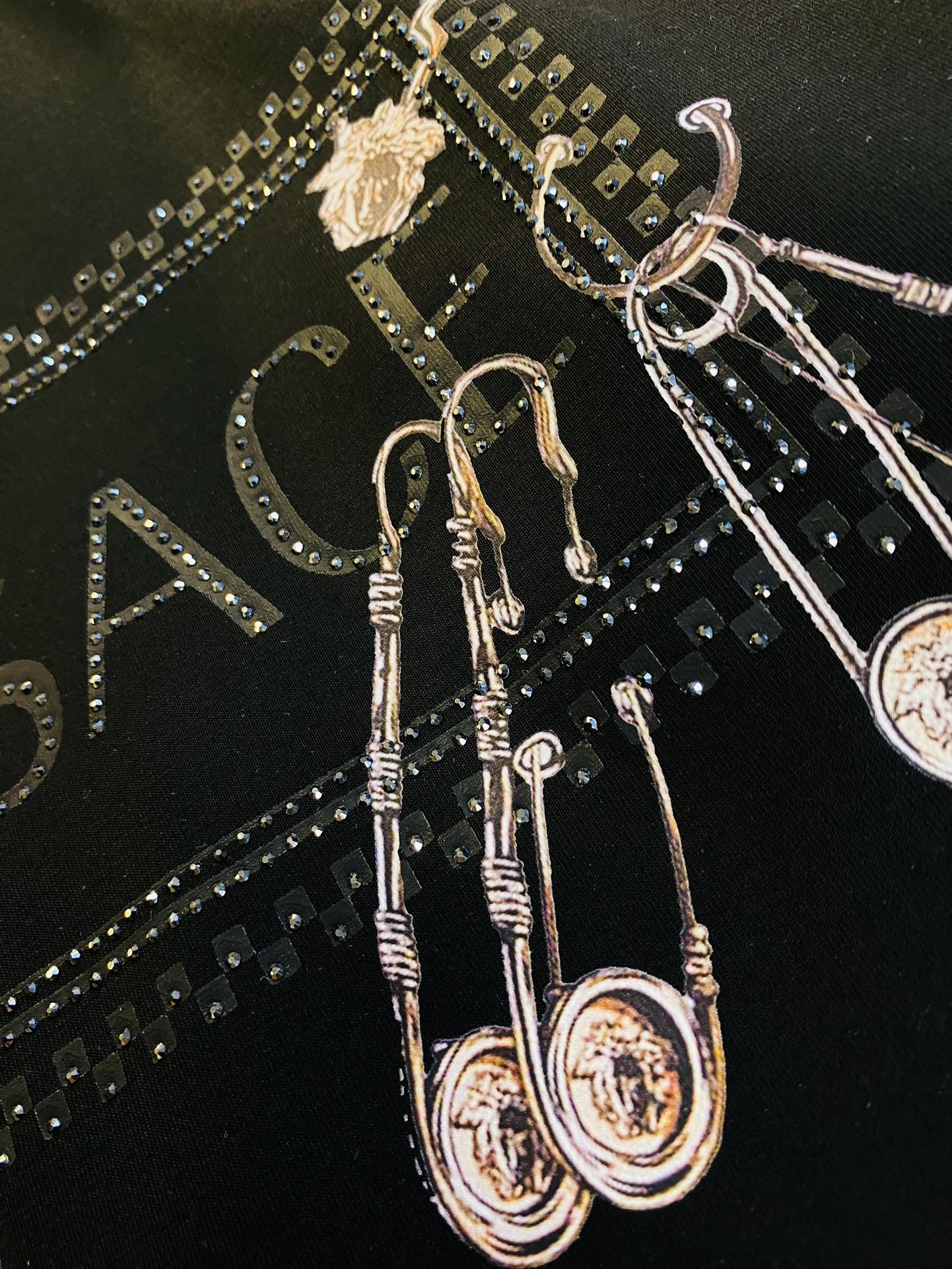 这款衣服是AAAAA 1:1 质量 (非常棒). 使用了和原版一模一样的材料. 商标部分也保持了和范思哲/Versace一样. 图片拍摄是实物衣服拍摄, 您所收到的实物保证和我们图片一模一样.