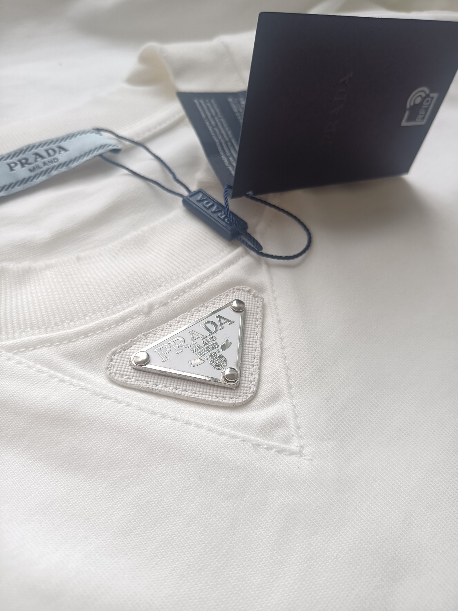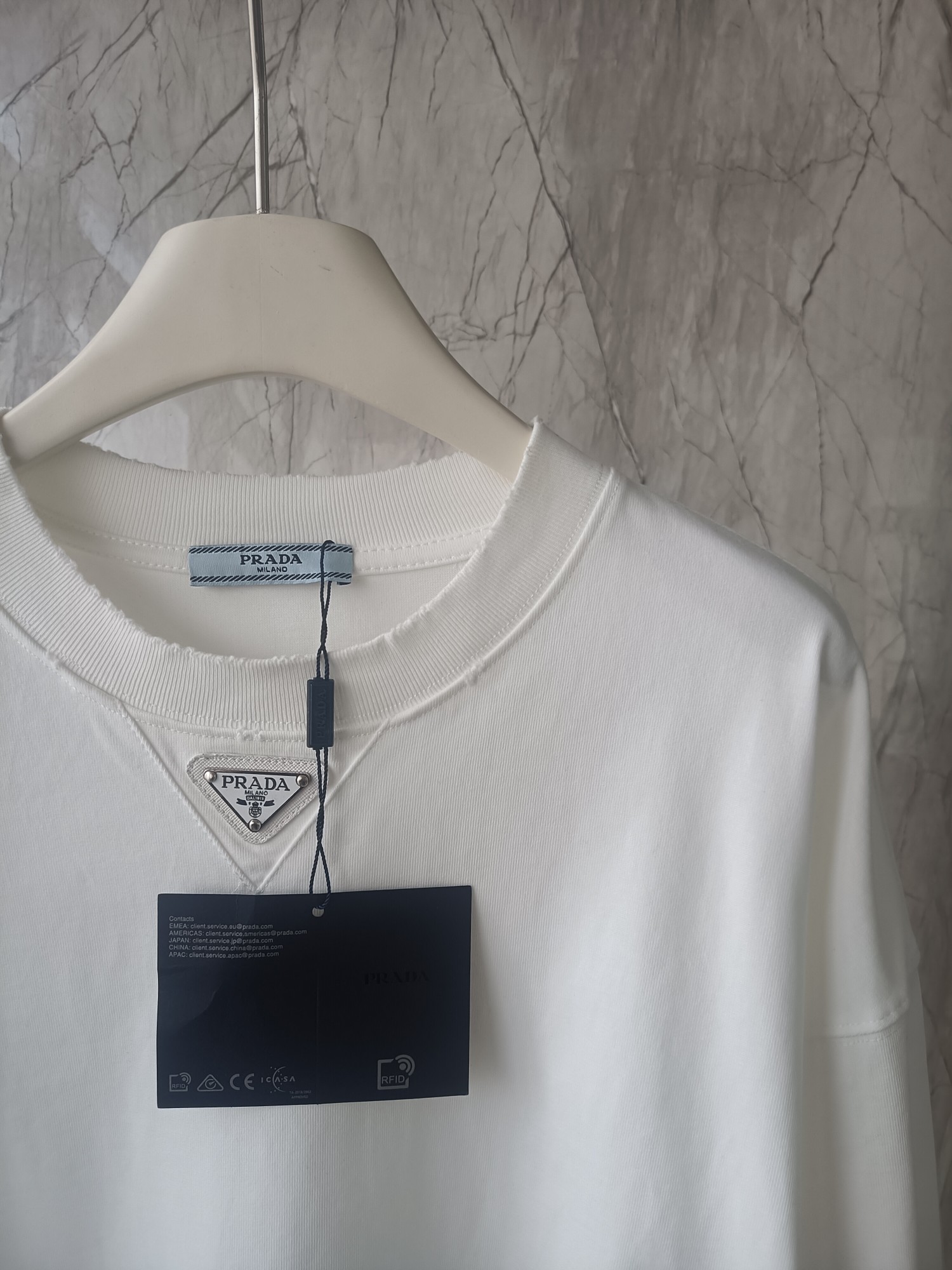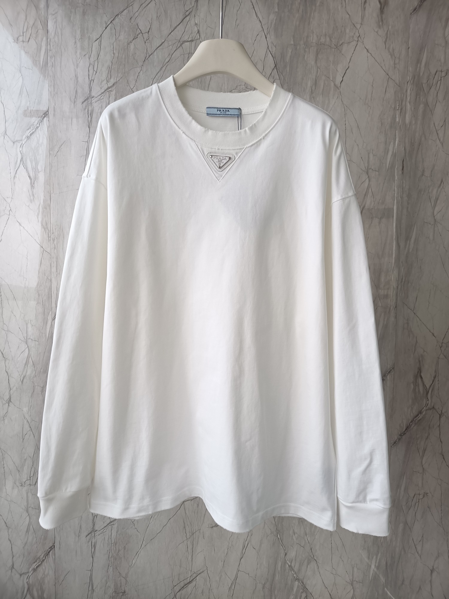 这款衣服是AAAAA 1:1 质量 (非常棒). 使用了和原版一模一样的材料. 商标部分也保持了和普拉达/Prada一样. 图片拍摄是实物衣服拍摄, 您所收到的实物保证和我们图片一模一样.