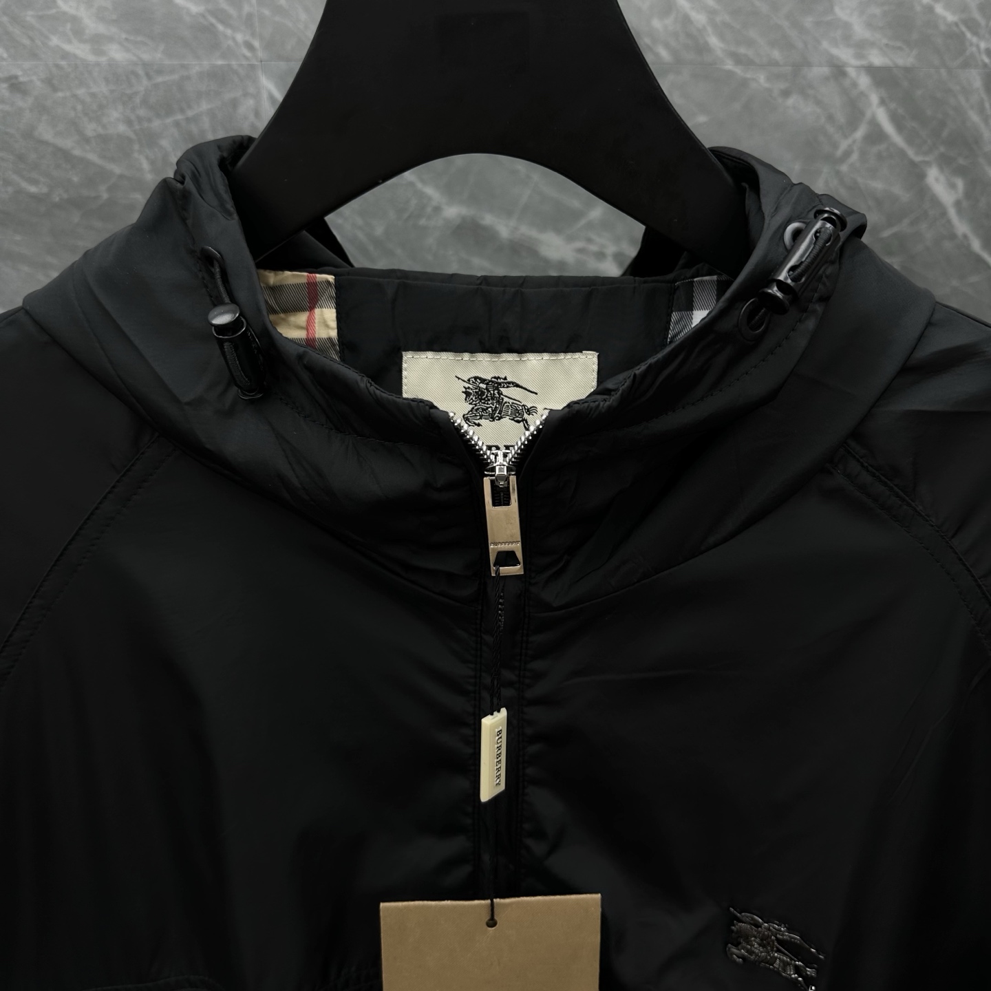 这款衣服是AAAAA 1:1 质量 (非常棒). 使用了和原版一模一样的材料. 商标部分也保持了和巴宝莉/Burberry一样. 图片拍摄是实物衣服拍摄, 您所收到的实物保证和我们图片一模一样.
