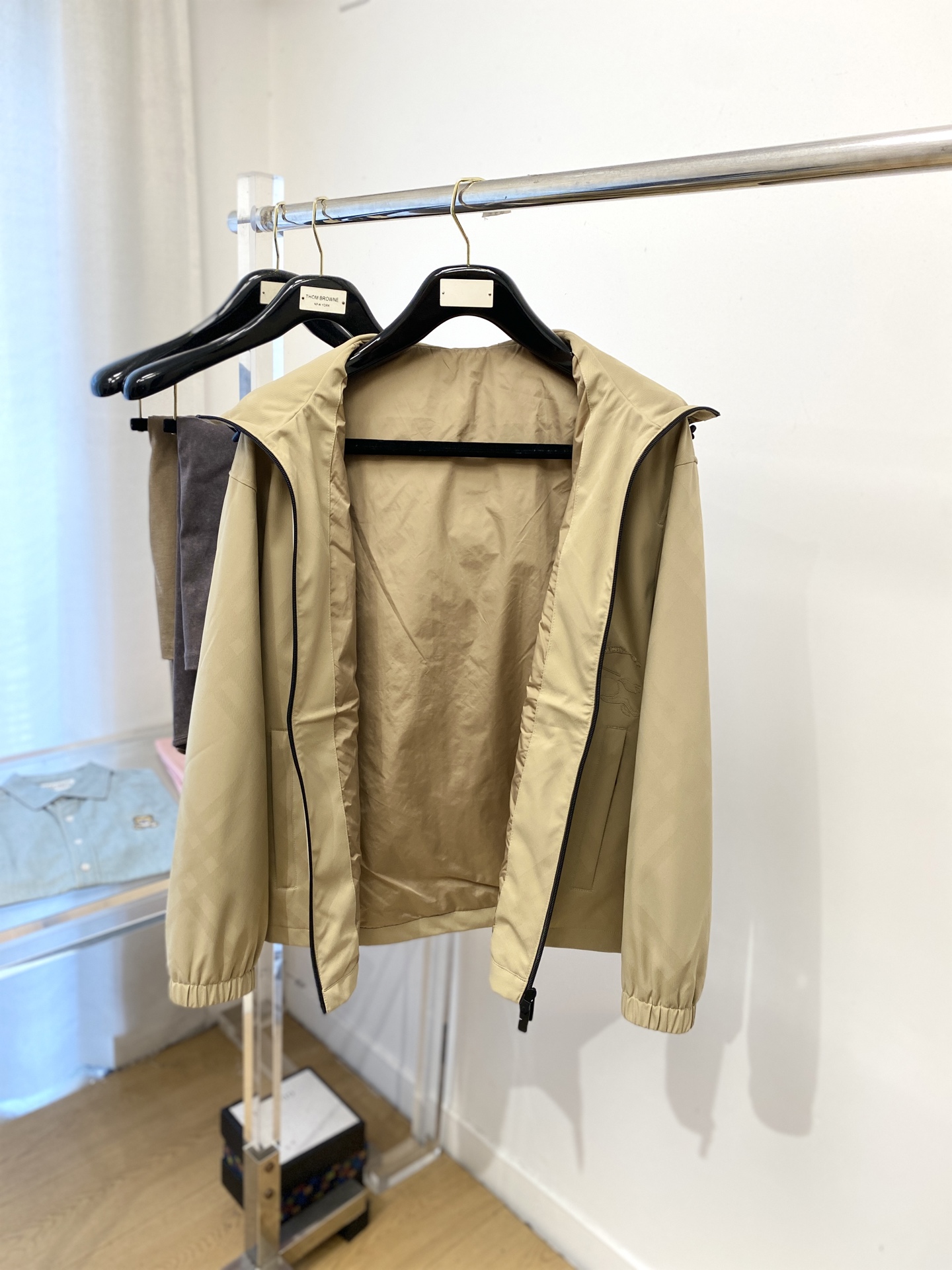 这款衣服是AAAAA 1:1 质量 (非常棒). 使用了和原版一模一样的材料. 商标部分也保持了和巴宝莉/Burberry一样. 图片拍摄是实物衣服拍摄, 您所收到的实物保证和我们图片一模一样.