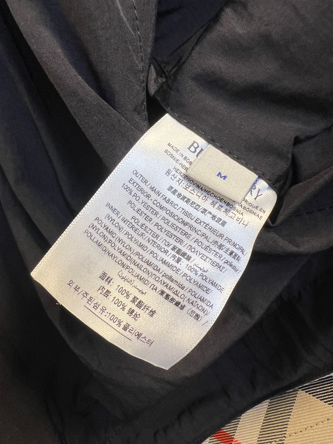 这款衣服是AAAAA 1:1 质量 (非常棒). 使用了和原版一模一样的材料. 商标部分也保持了和巴宝莉/Burberry一样. 图片拍摄是实物衣服拍摄, 您所收到的实物保证和我们图片一模一样.