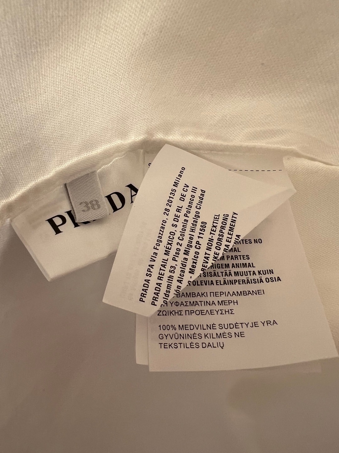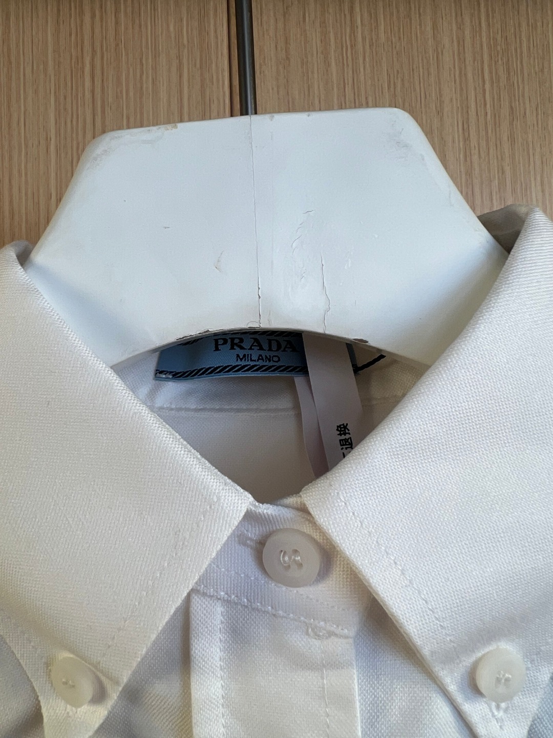 这款衣服是AAAAA 1:1 质量 (非常棒). 使用了和原版一模一样的材料. 商标部分也保持了和普拉达/Prada一样. 图片拍摄是实物衣服拍摄, 您所收到的实物保证和我们图片一模一样.