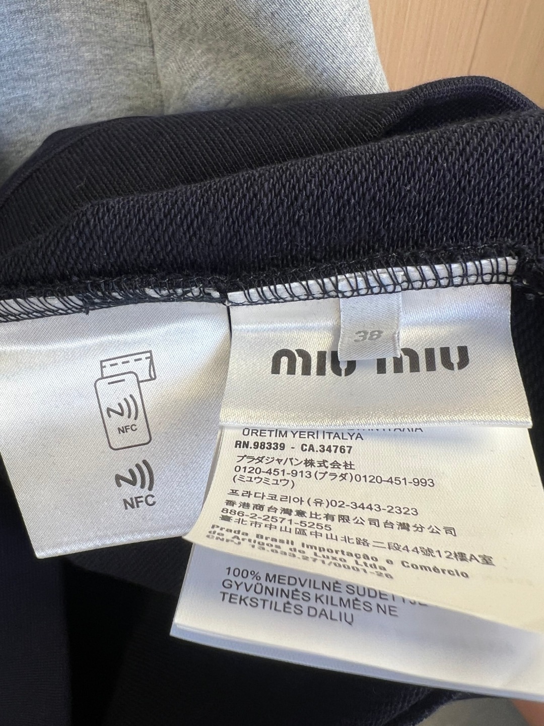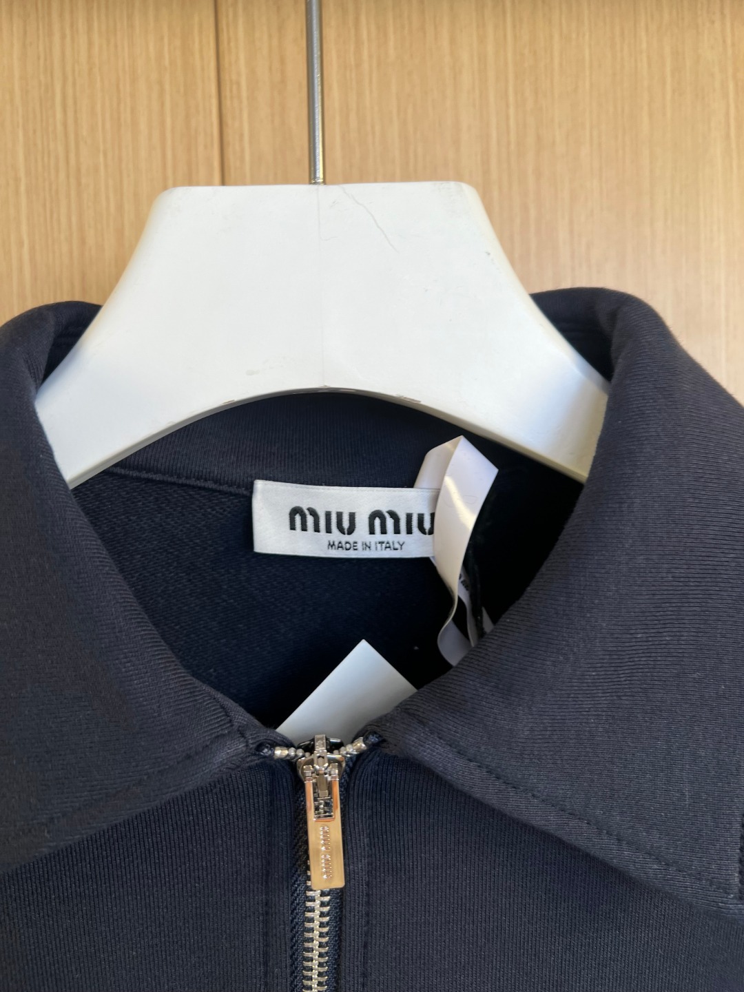 这款衣服是AAAAA 1:1 质量 (非常棒). 使用了和原版一模一样的材料. 商标部分也保持了和缪缪/Miu Miu一样. 图片拍摄是实物衣服拍摄, 您所收到的实物保证和我们图片一模一样.